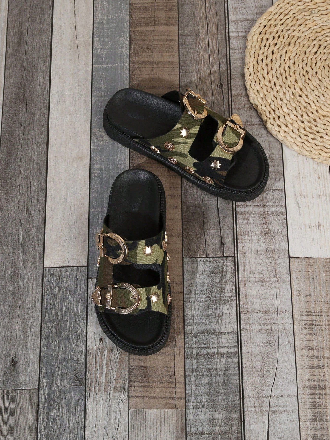 Introducing our stylish and comfortable round toe sandals, featuring a gold buckle detail and platform wedge heels for added height and style. Made with quality materials and designed for all-day wear, these sandals are perfect for any occasion. Look and feel your best with these chic and versatile sandals.