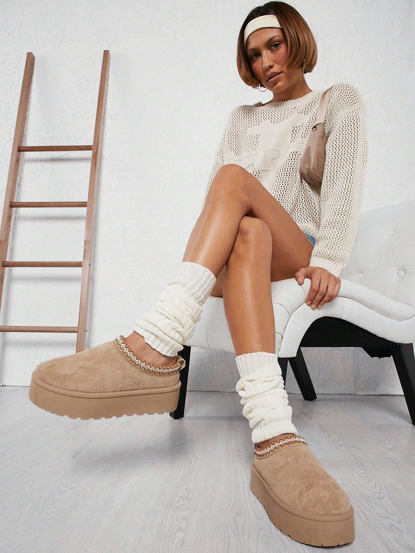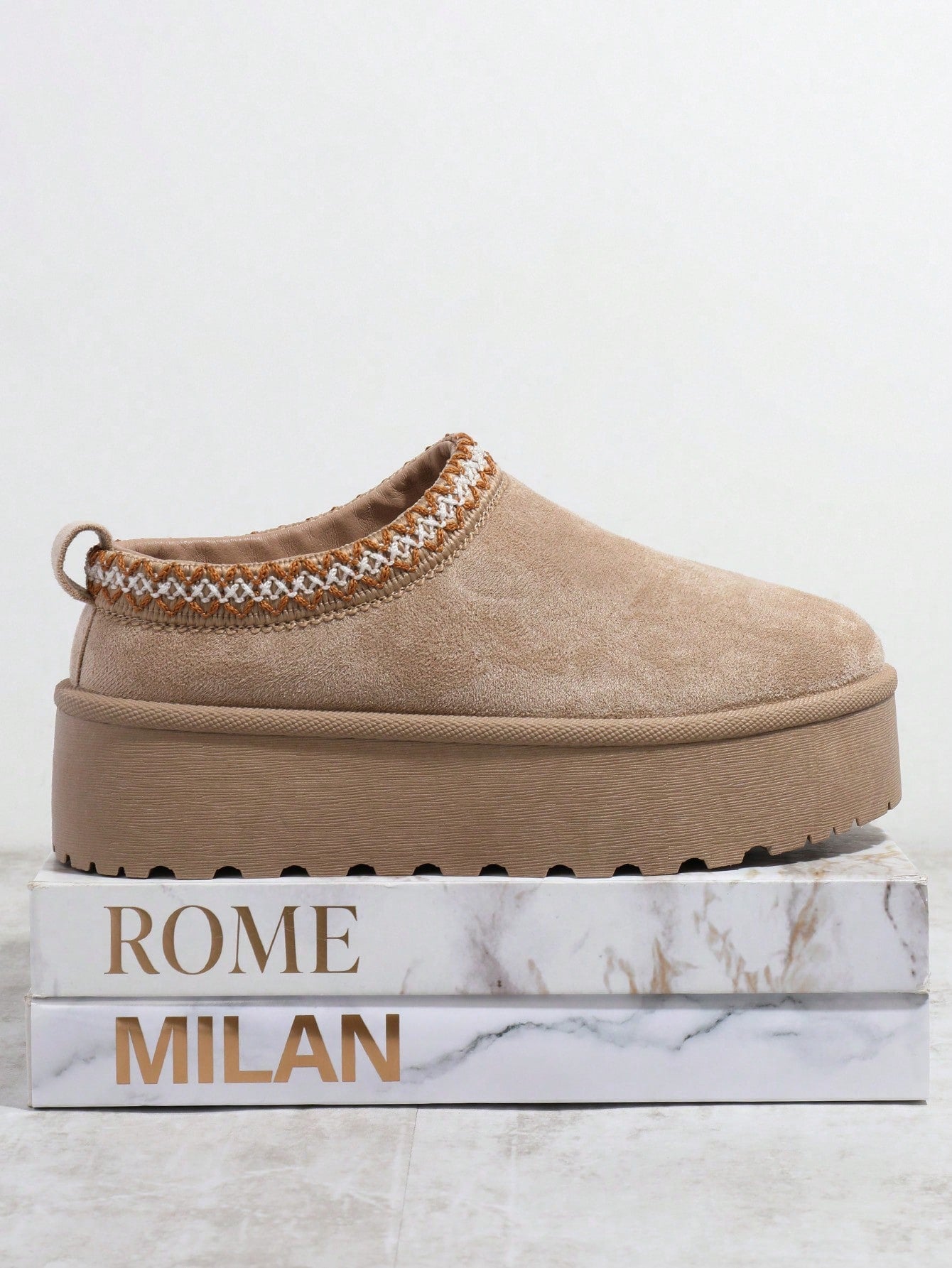 Stylish and Cozy: Plain Flatform Warm Shoes