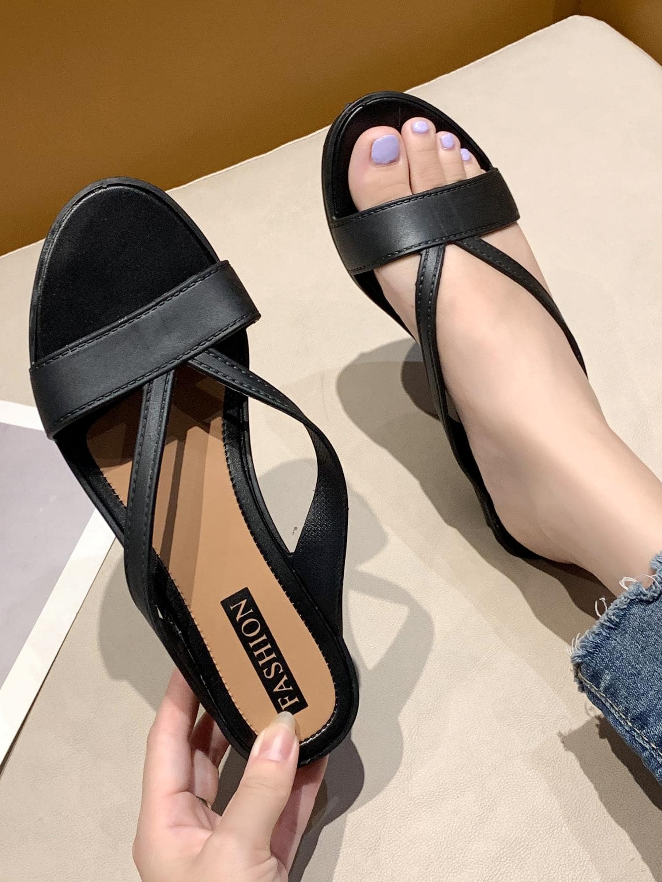 Sandals. These versatile sandals are perfect for both work and casual wear. Crafted with durable plastic and designed for all-day wear, you'll love the elevated look and comfortable feel. Step into fashion with confidence."