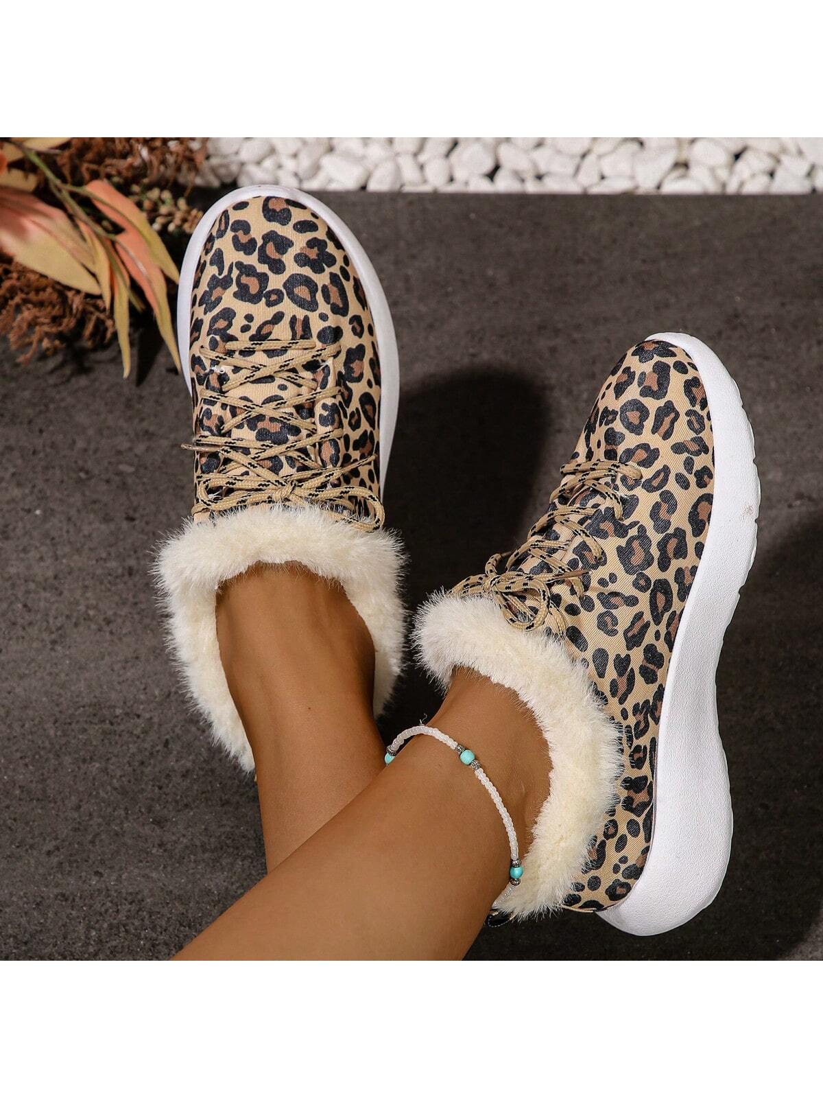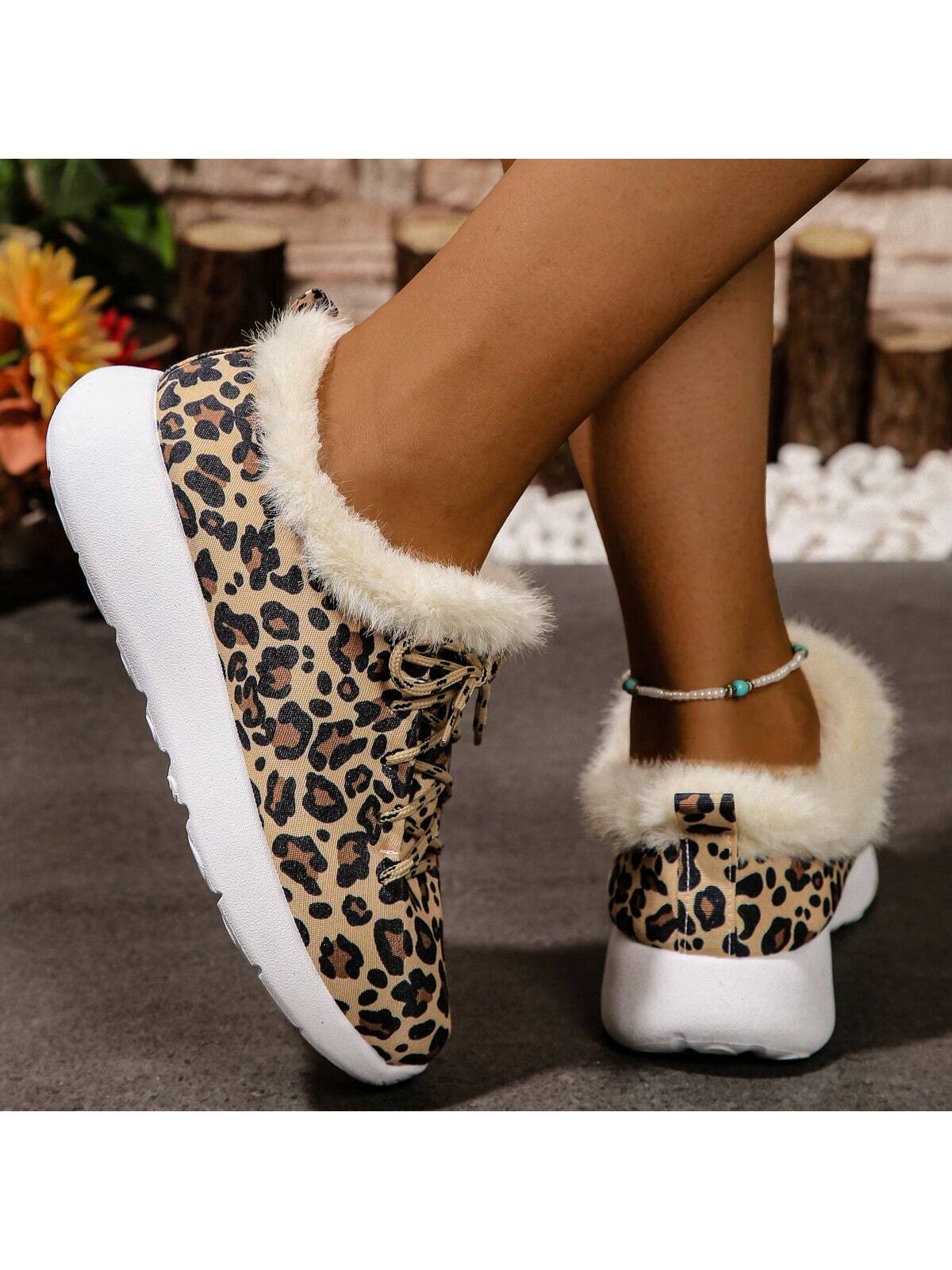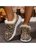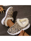 Stylish Leopard Print High-Top Plush Loafers for Women's Casual Wear
