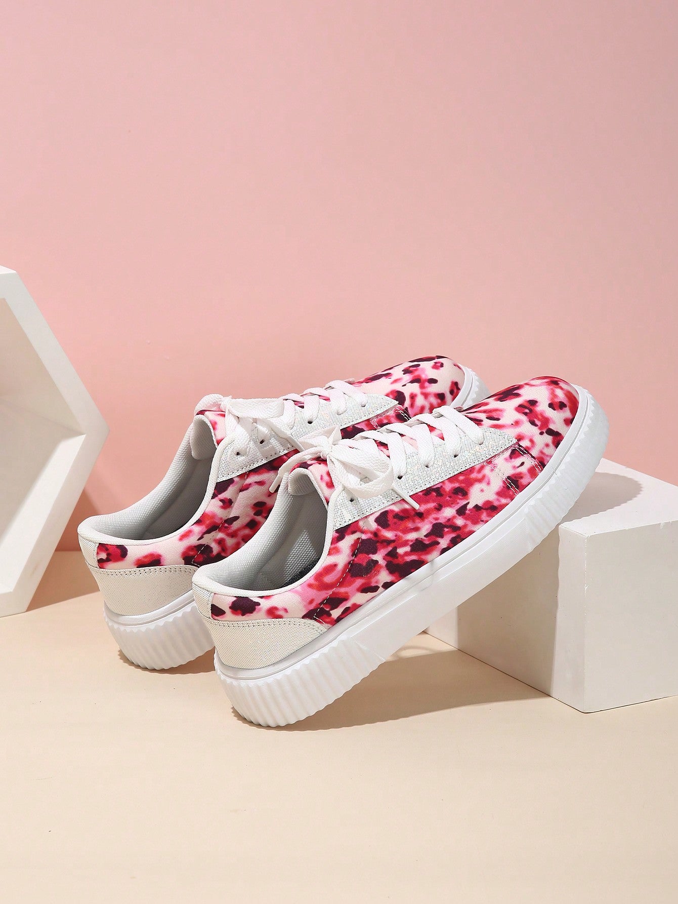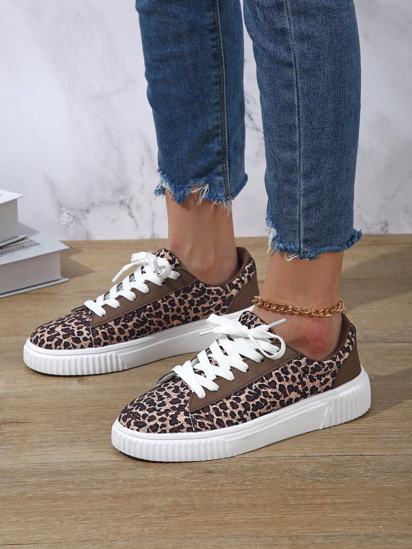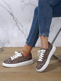 Stylish Leopard Print Women’s Casual Sneakers - Comfortable Lace-Up Athletic Shoes for Everyday Wear