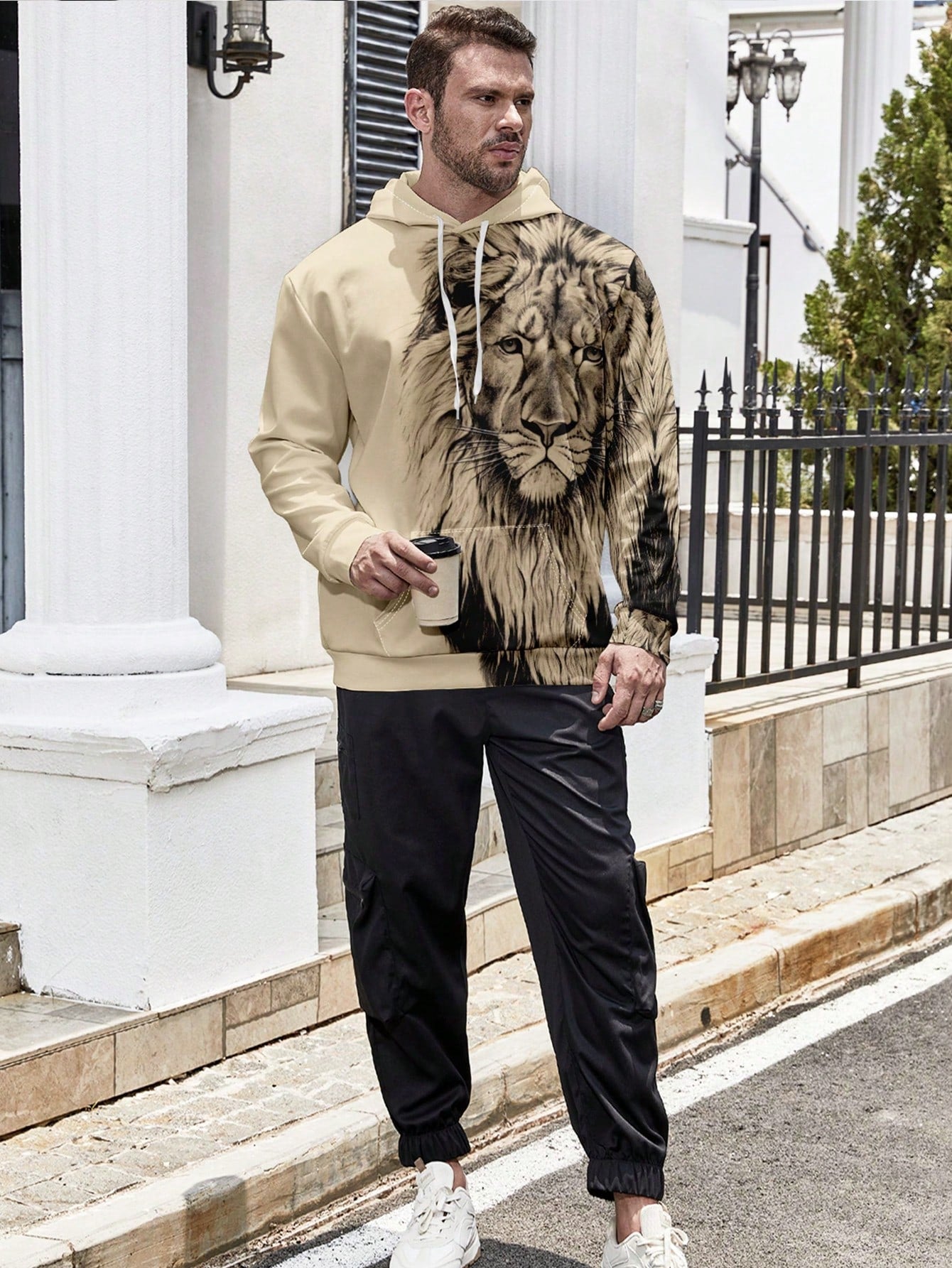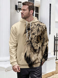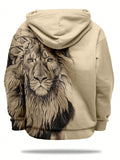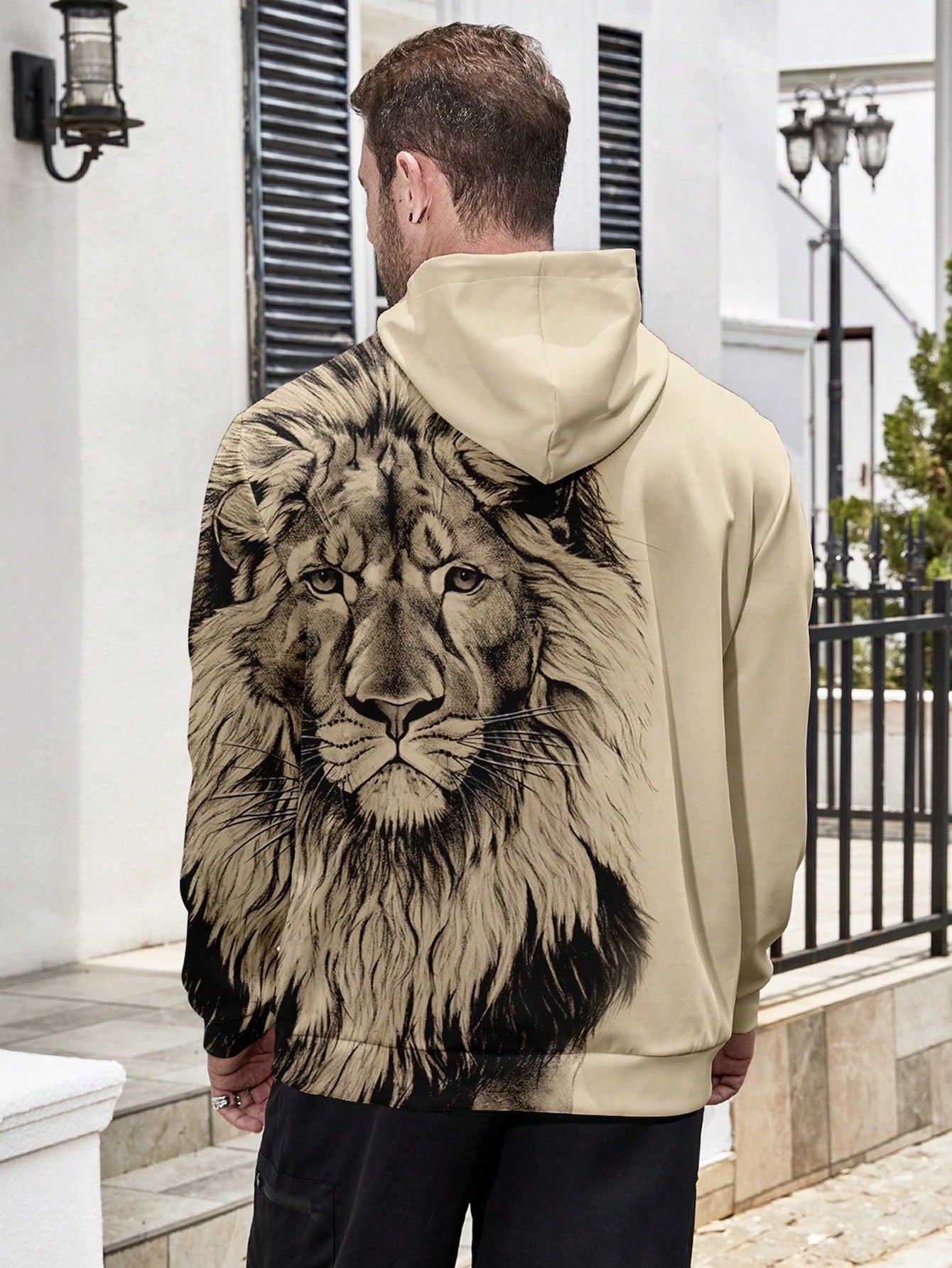 Stylish Men's Plus Size Lion Pattern Print Kangaroo Pocket Drawstring Hoodie