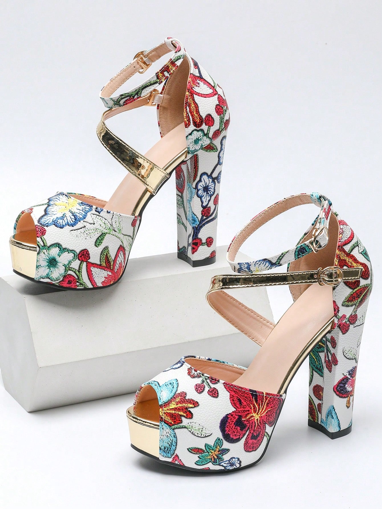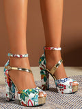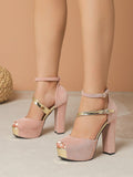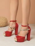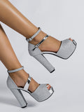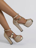 Stylish Metallic Buckle High Heel Platform Sandals – Waterproof Peep Toe Design for Glamorous Spring & Autumn Parties