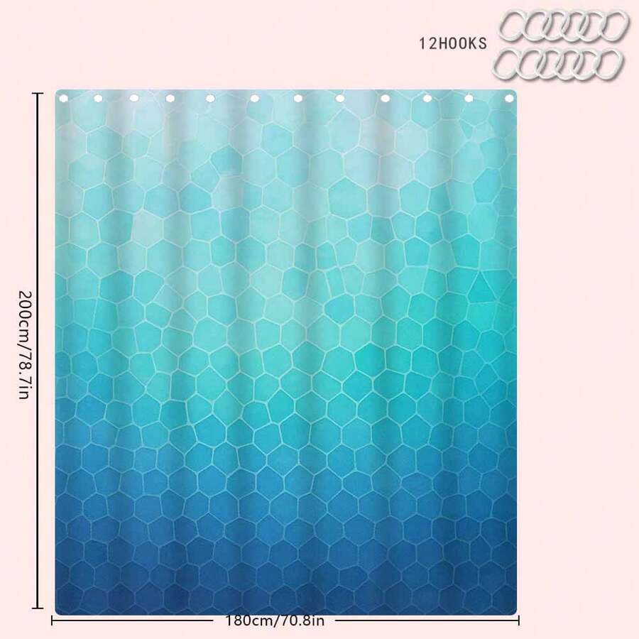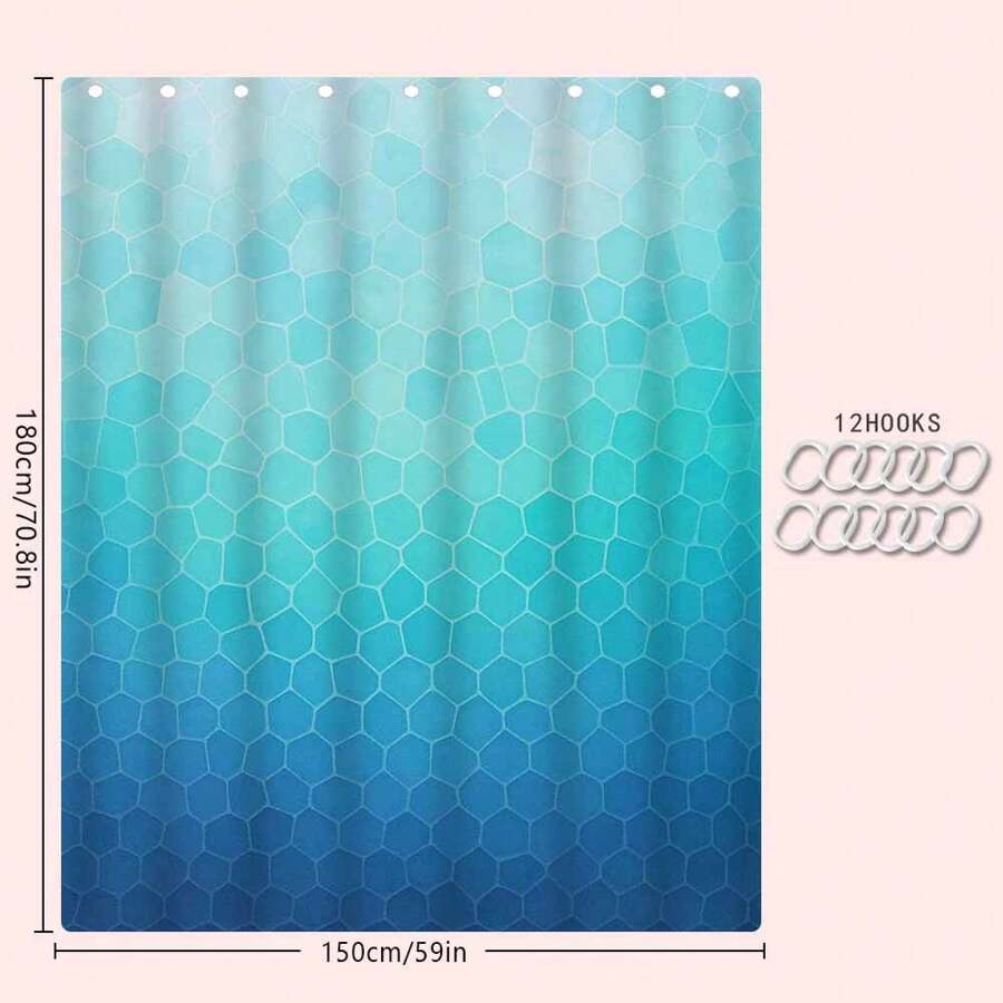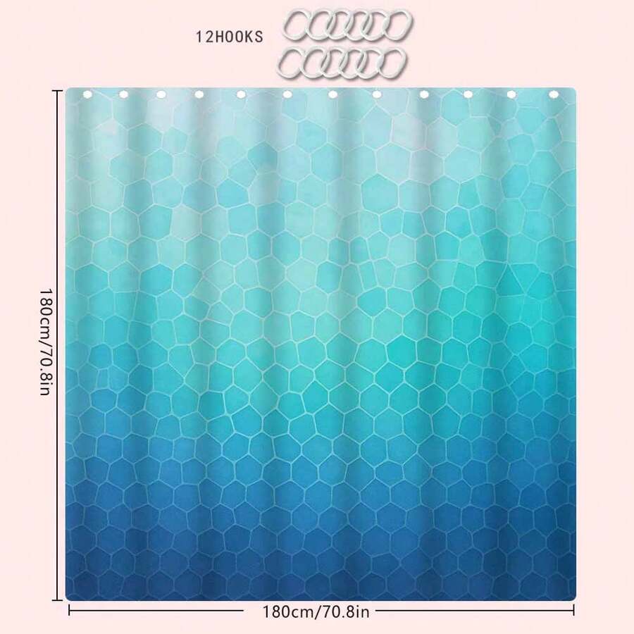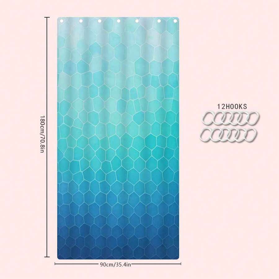 Stylish Modern Geometric Blue Shower Curtain - Waterproof, Odorless, and Hookless for Your Bathroom Decor