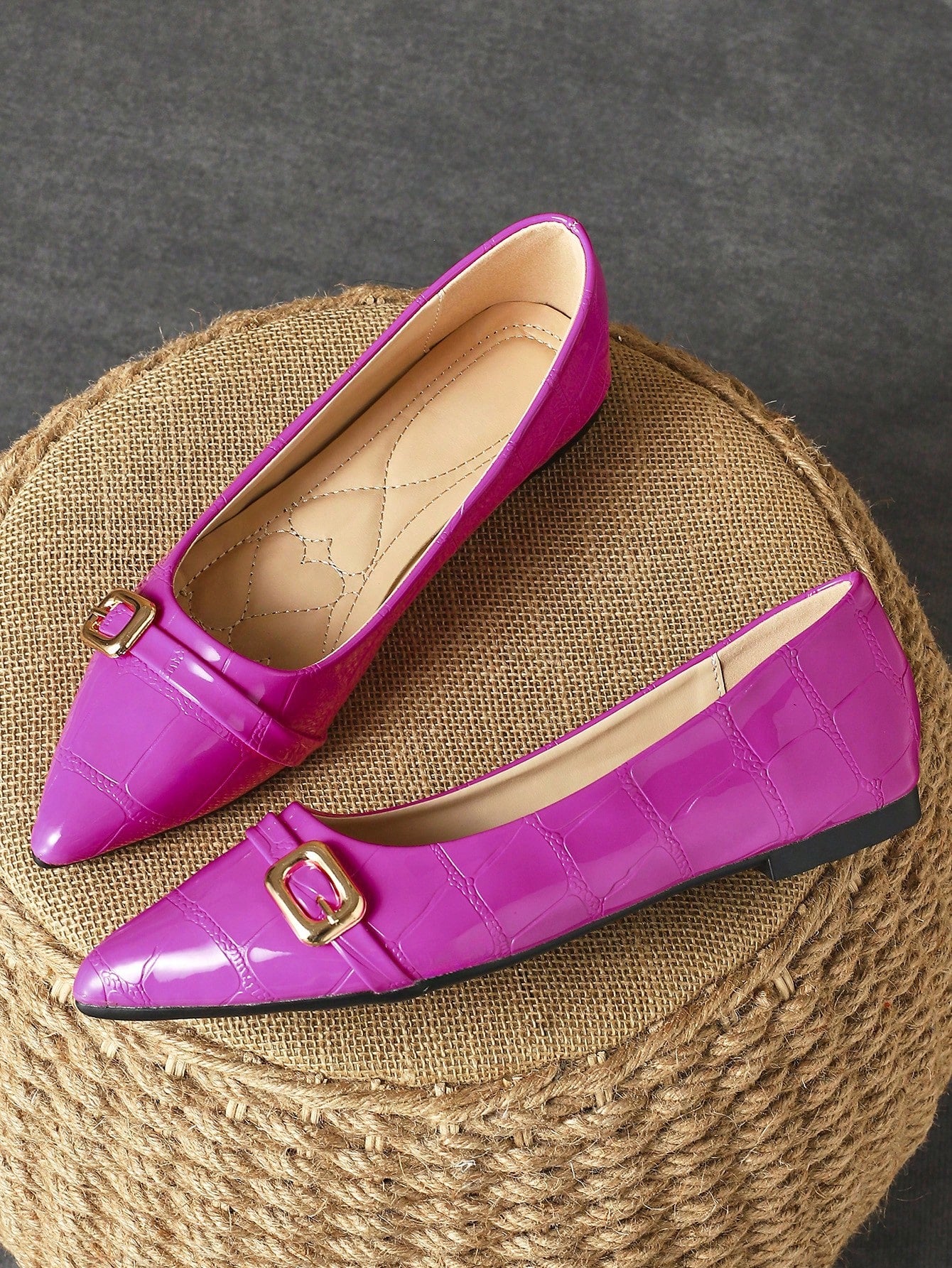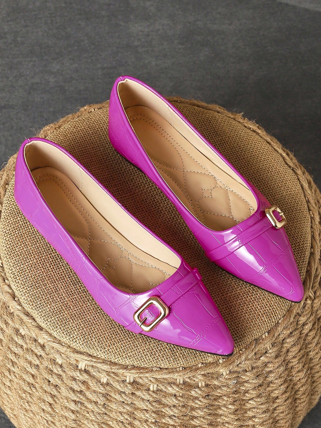 These stylish purple pointed toe flat shoes are perfect for dancing, parties, and outdoor activities. Featuring a buckle strap, these shoes offer both style and security. Made with high-quality materials, these shoes are durable and comfortable for long wear.