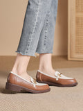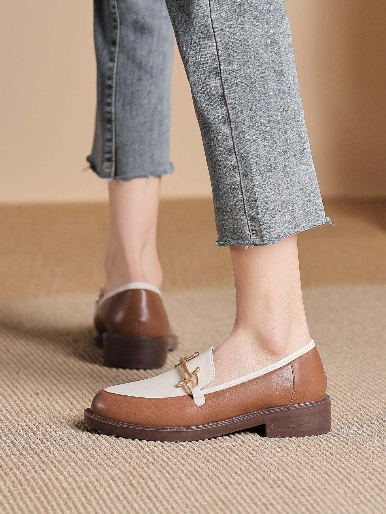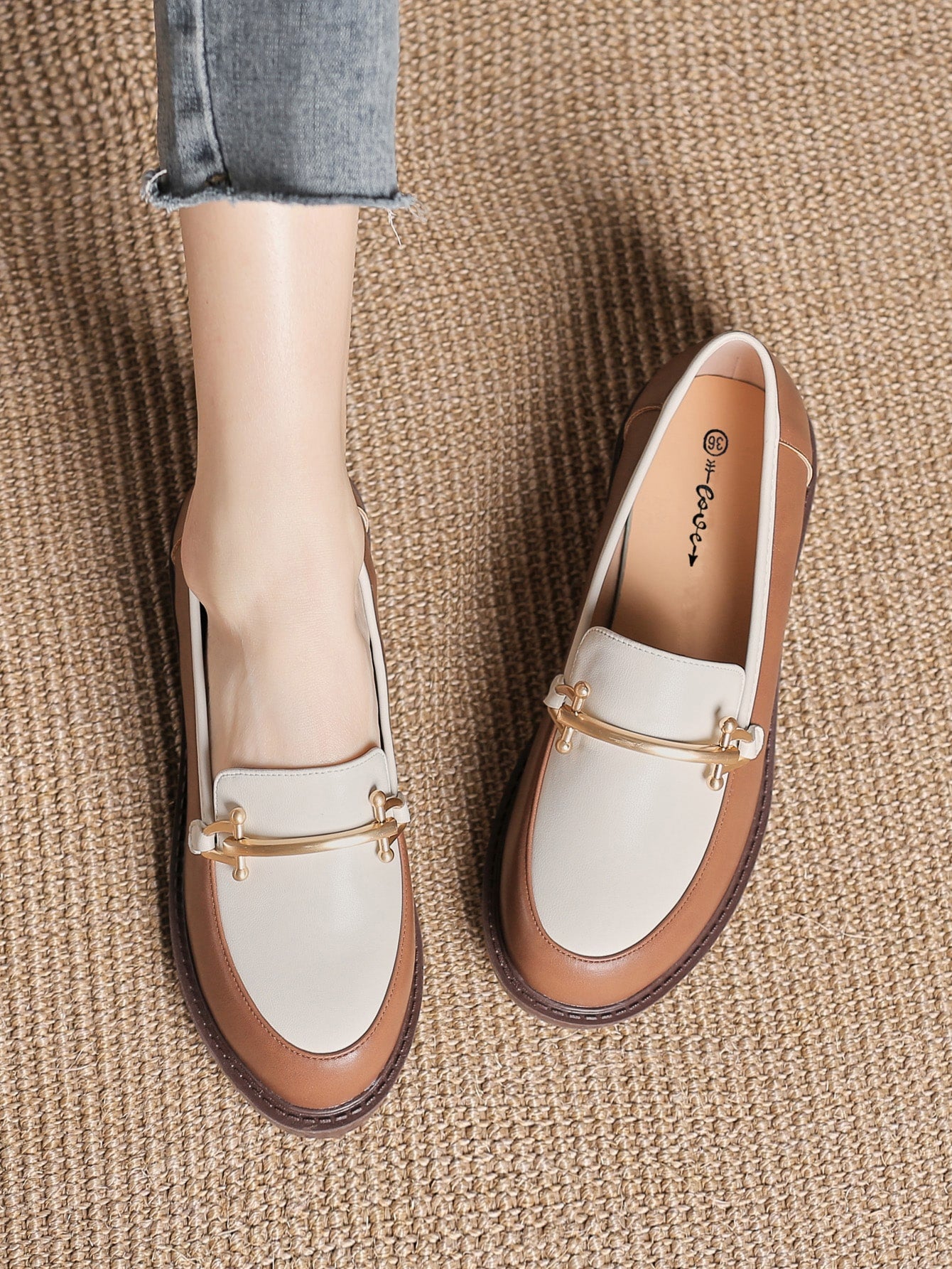 Stylish Round Toe White and Brown Flat Loafers: The Perfect Blend of Fashion and Function