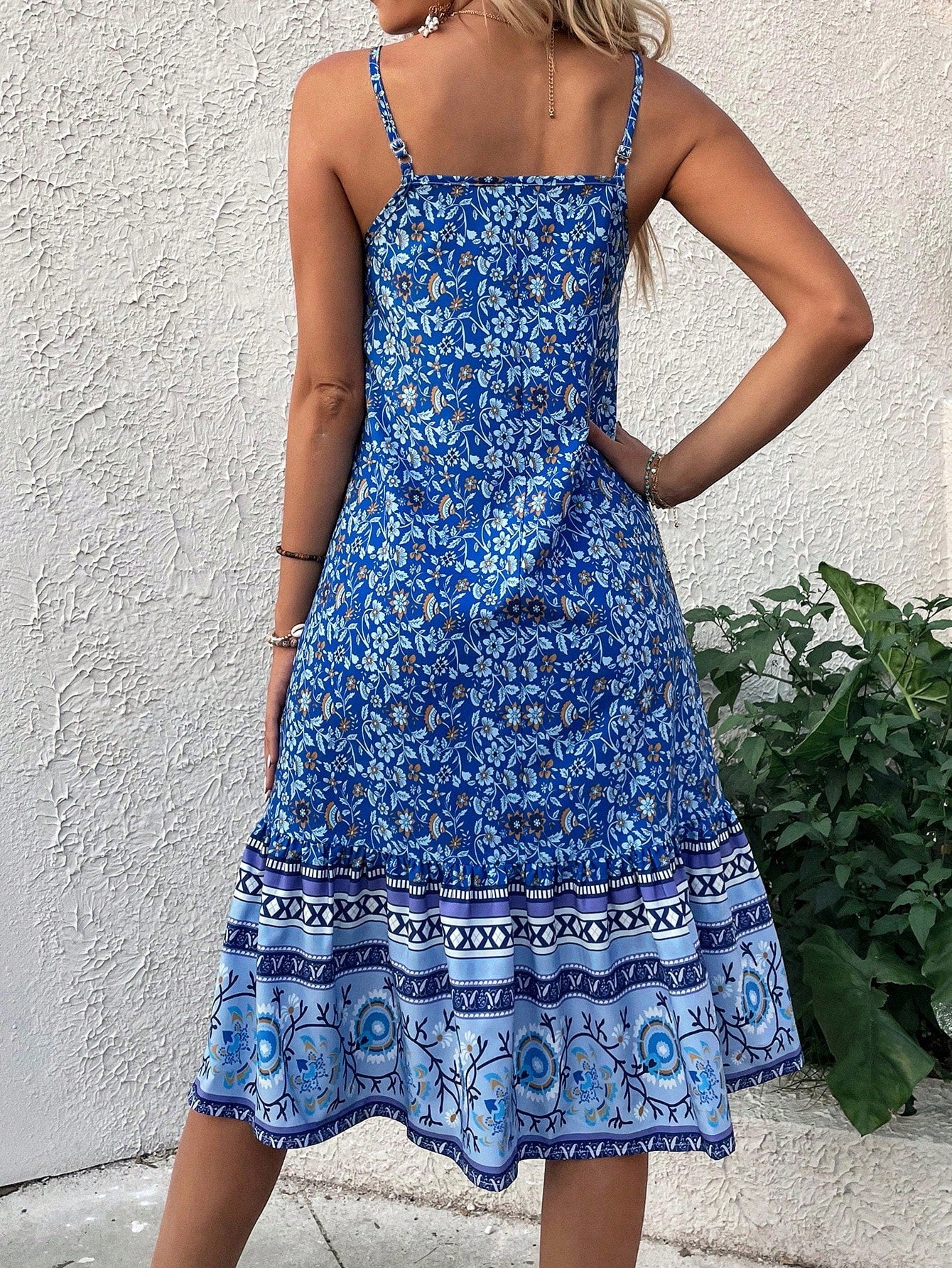 Stylish Summer withTropical Tale Sleeveless Printed Casual Dress