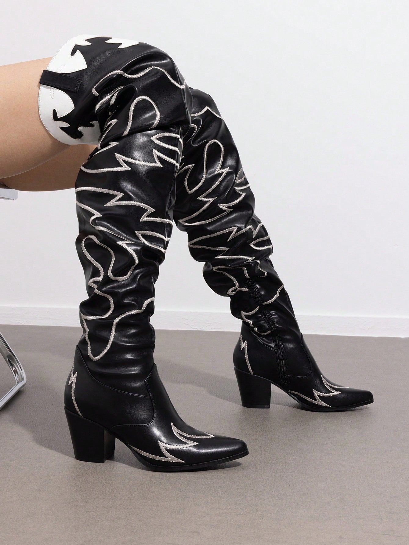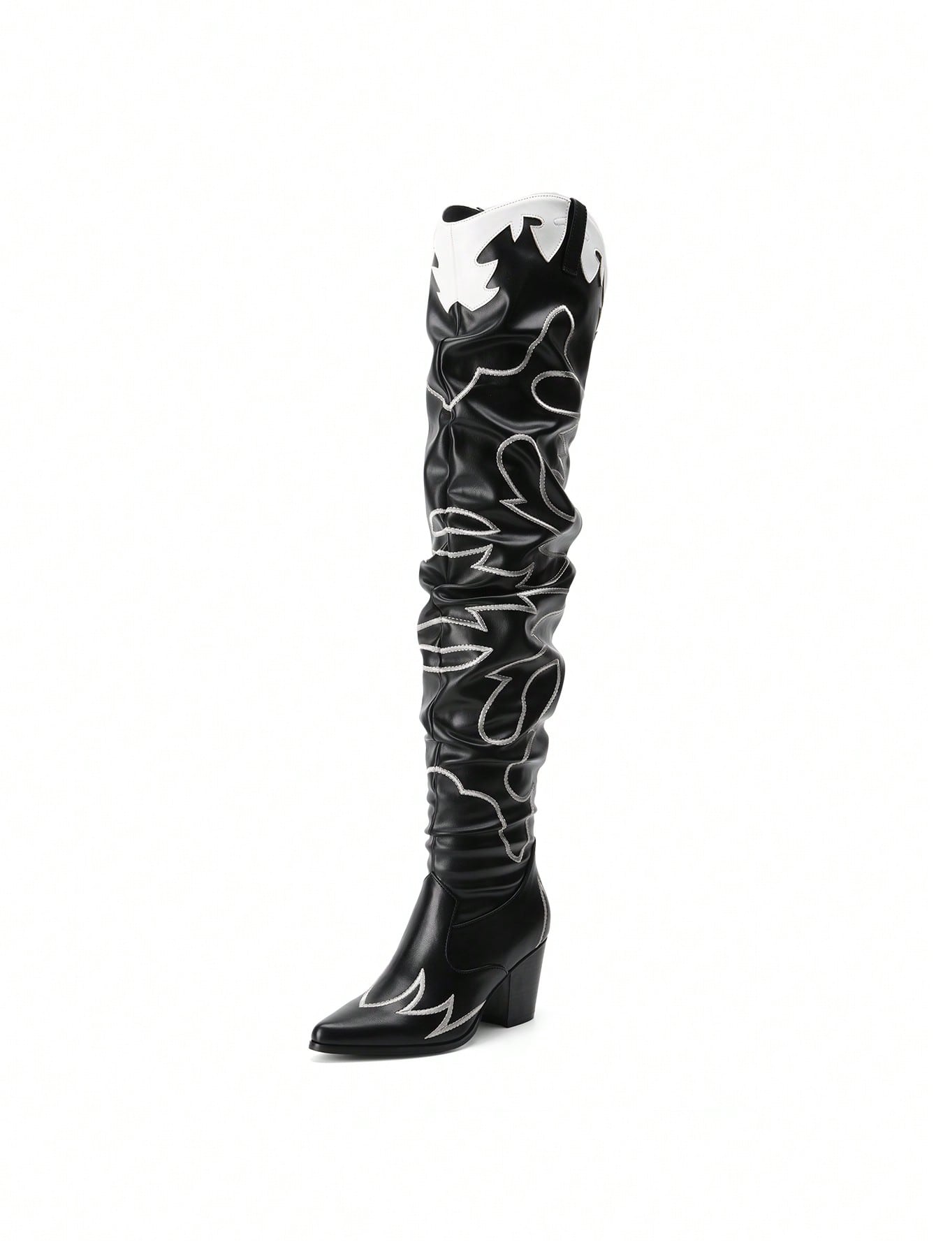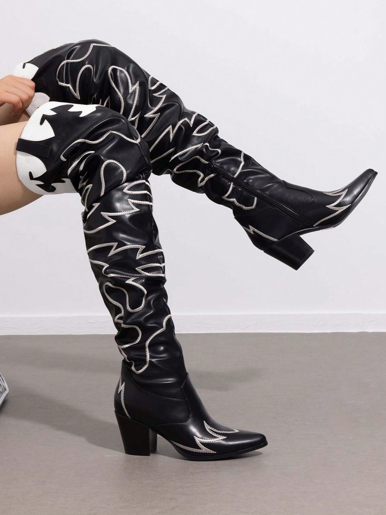 Stylish Western Embroidered Cowboy Boots with Pointed Toe and Chunky Heels for Women