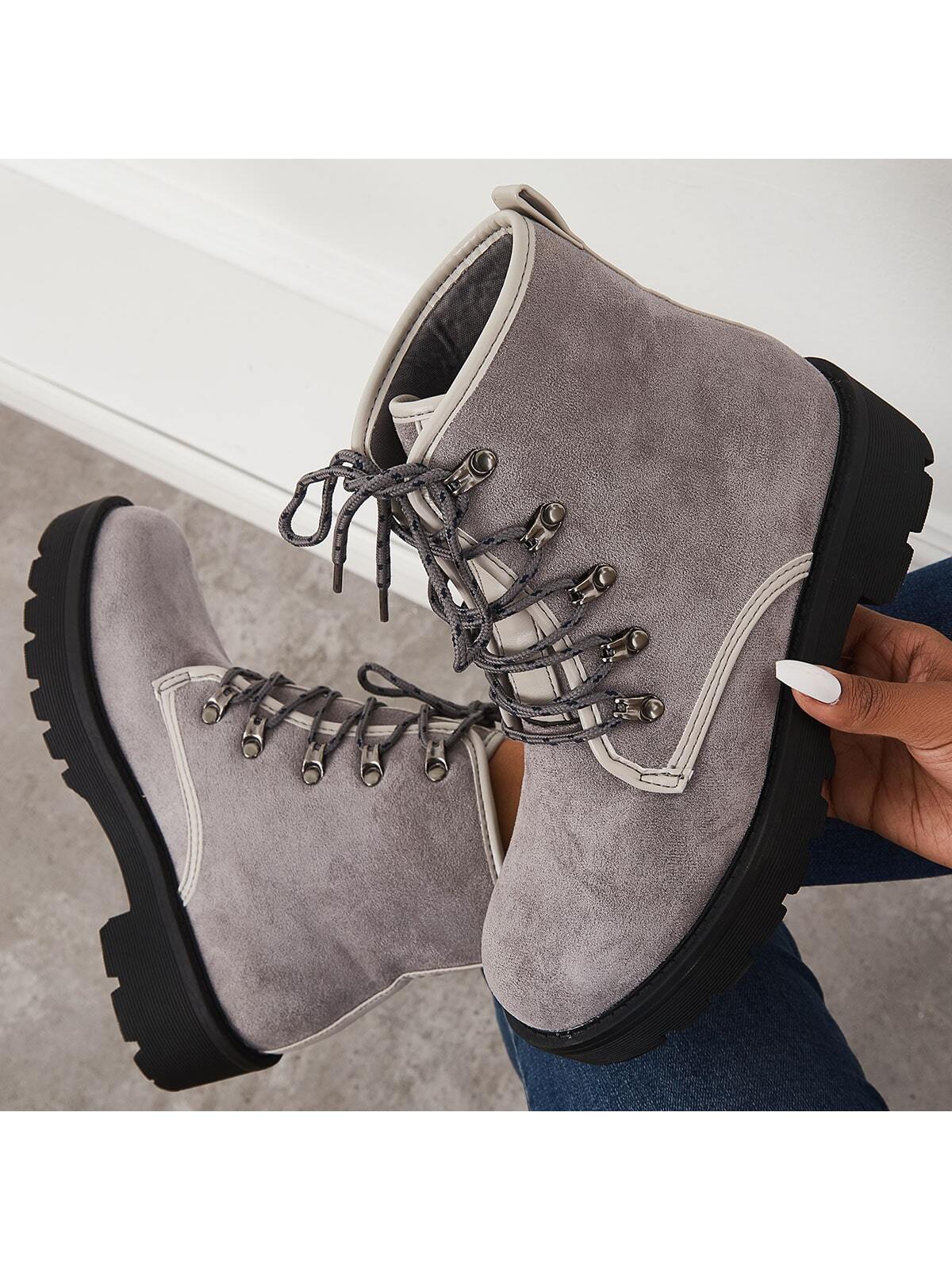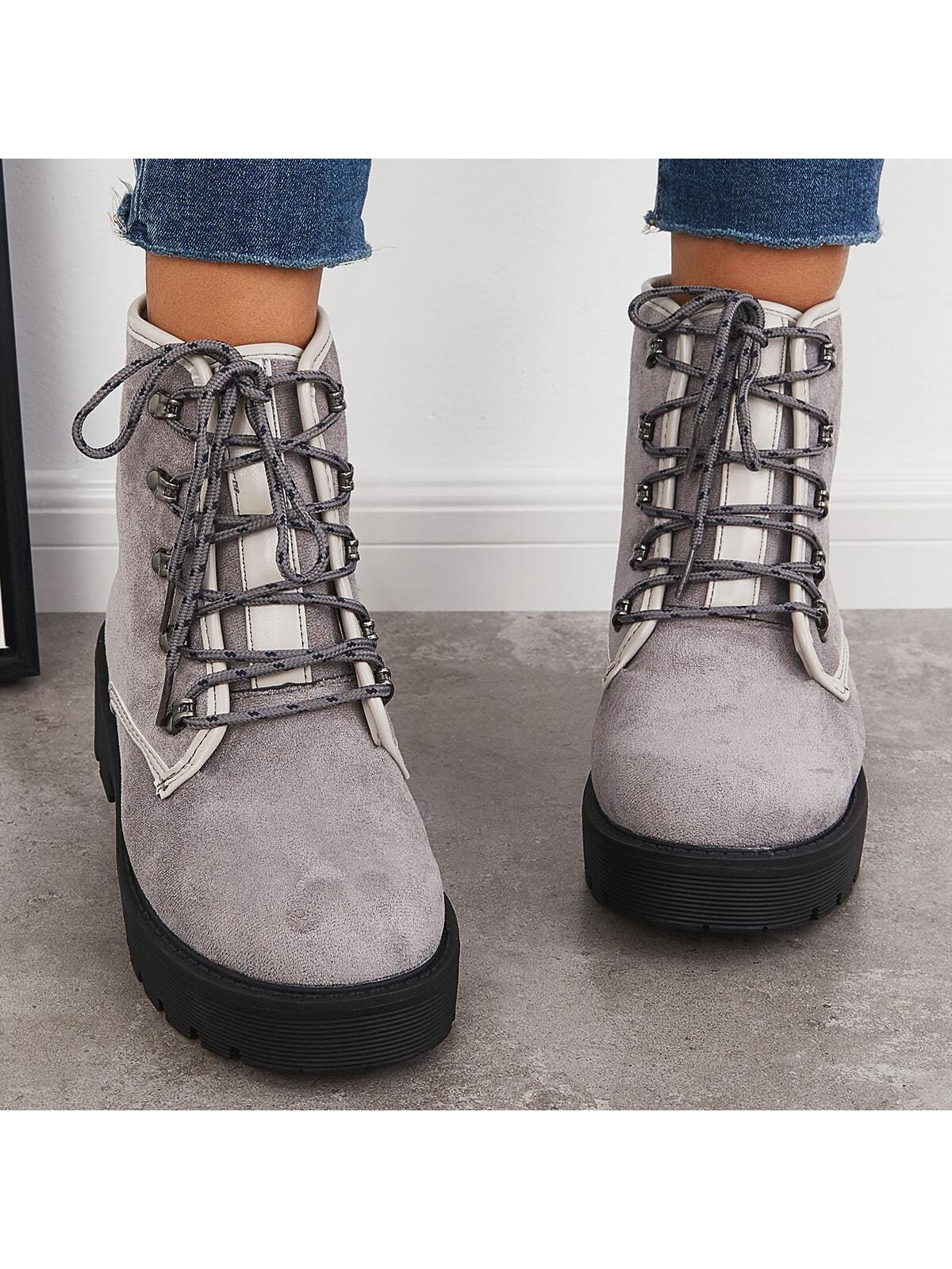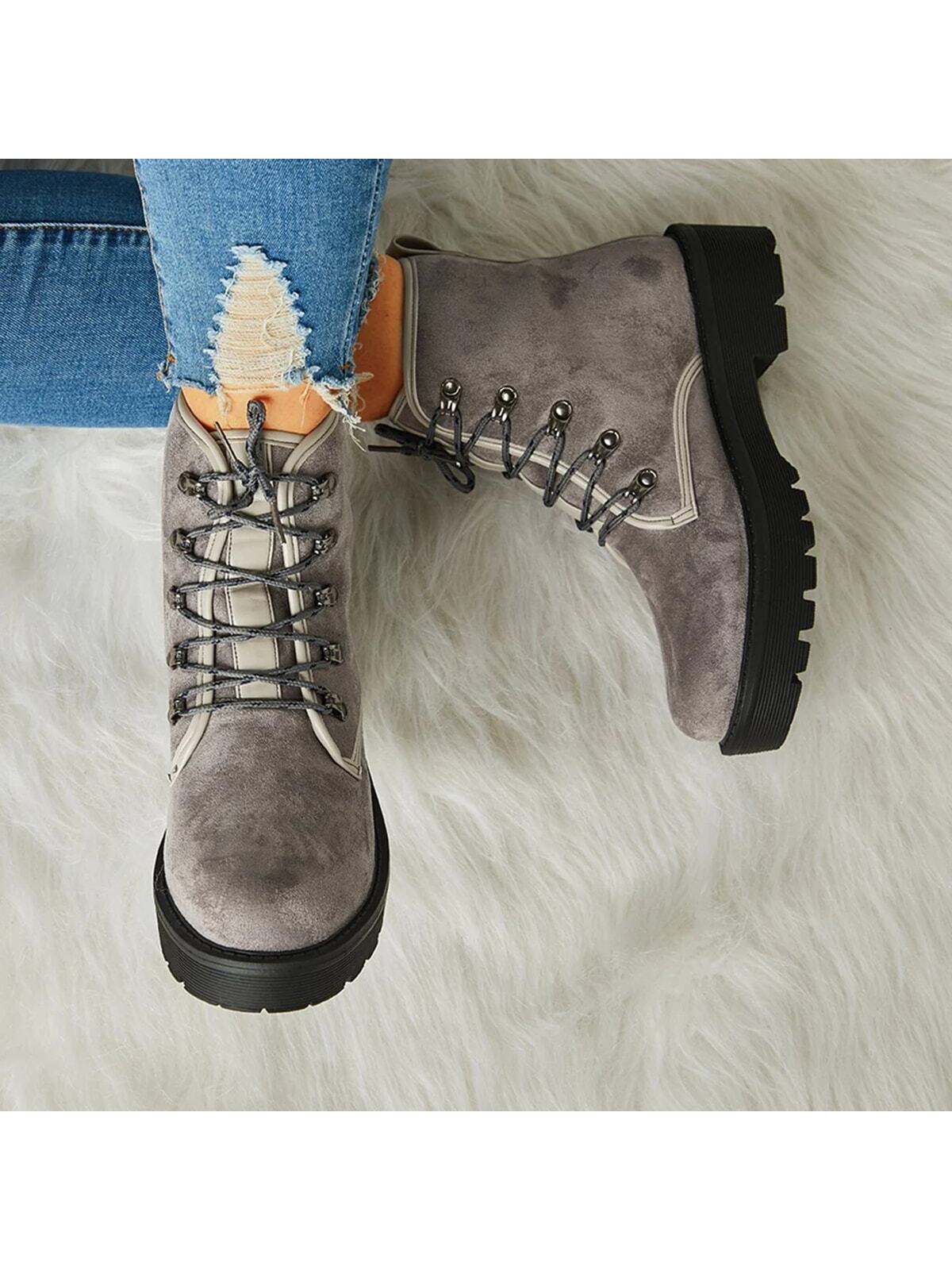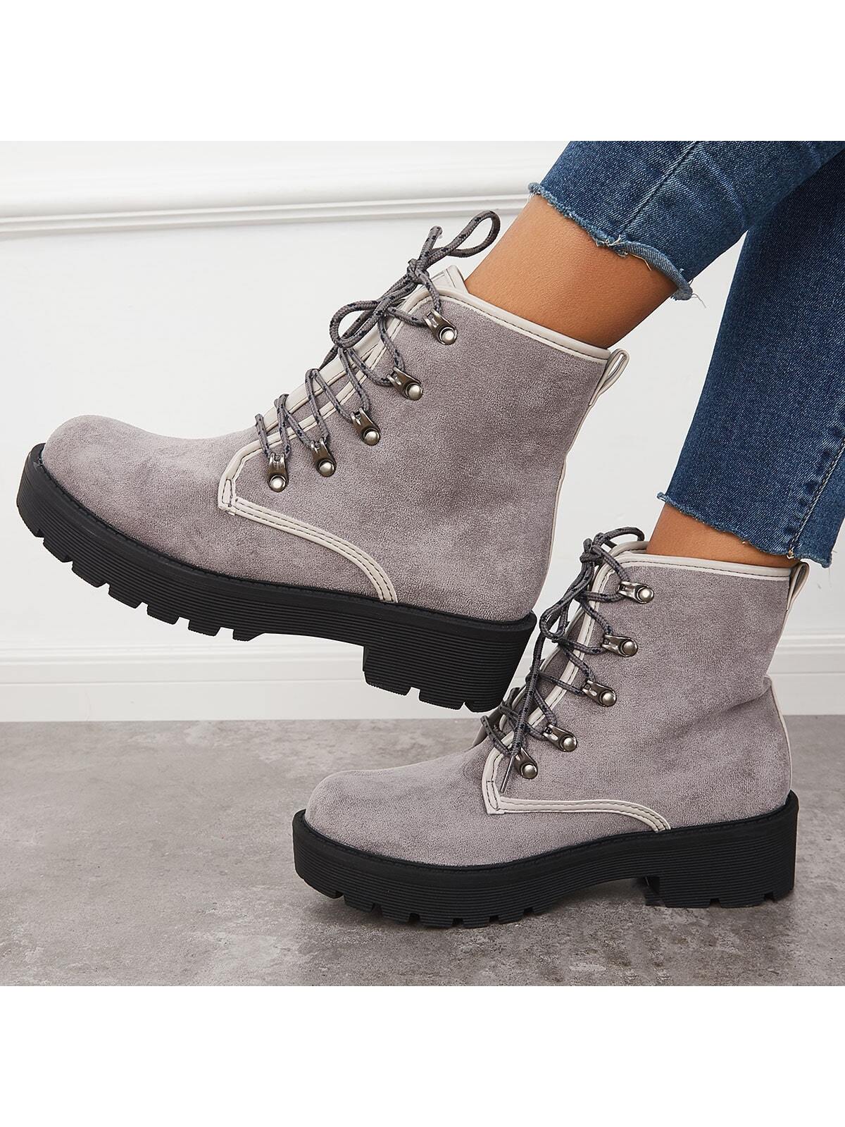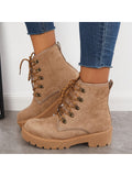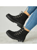 Stylish Women's Chunky Heel Combat Boots with Lace-Up Lug Sole