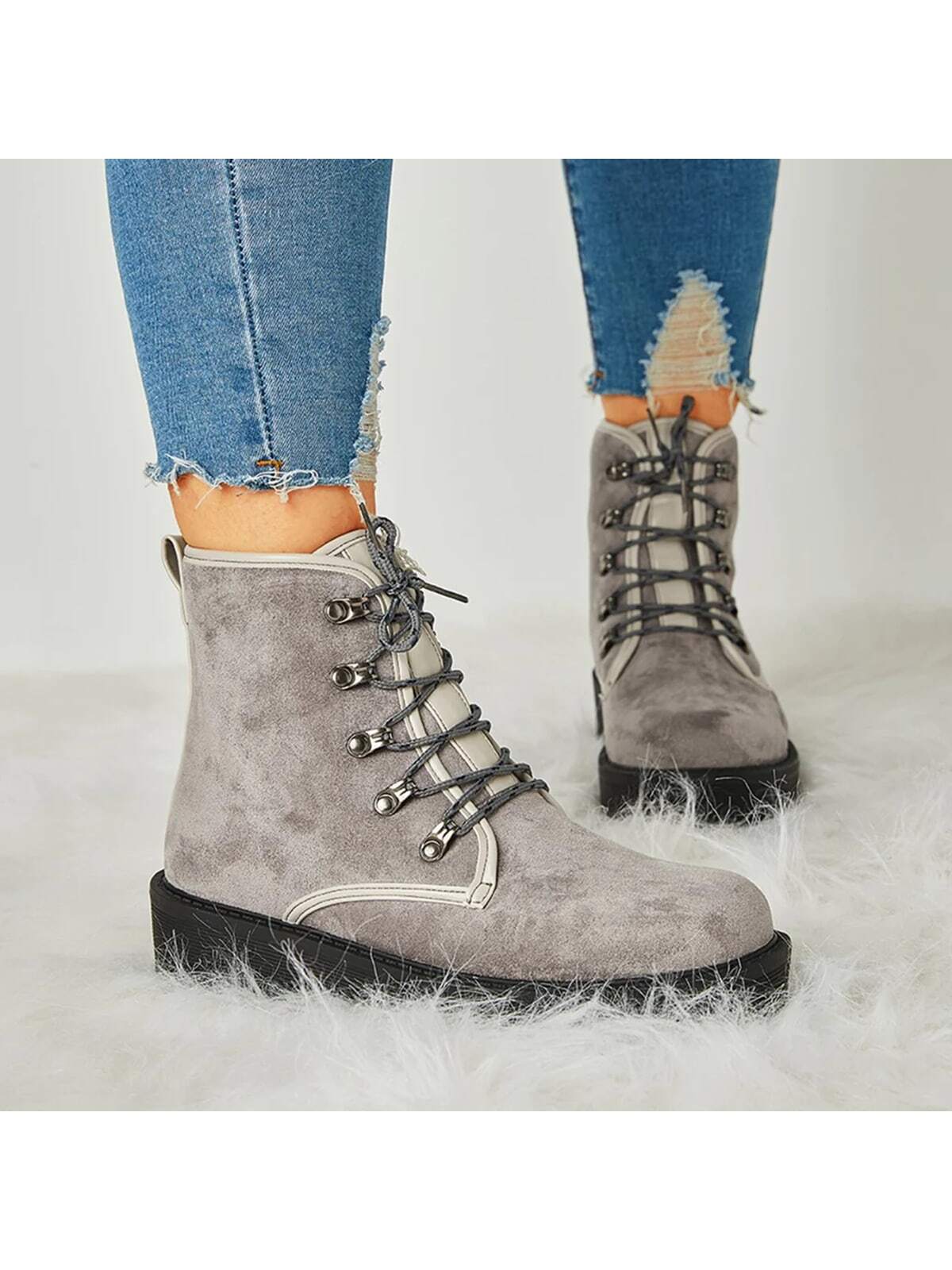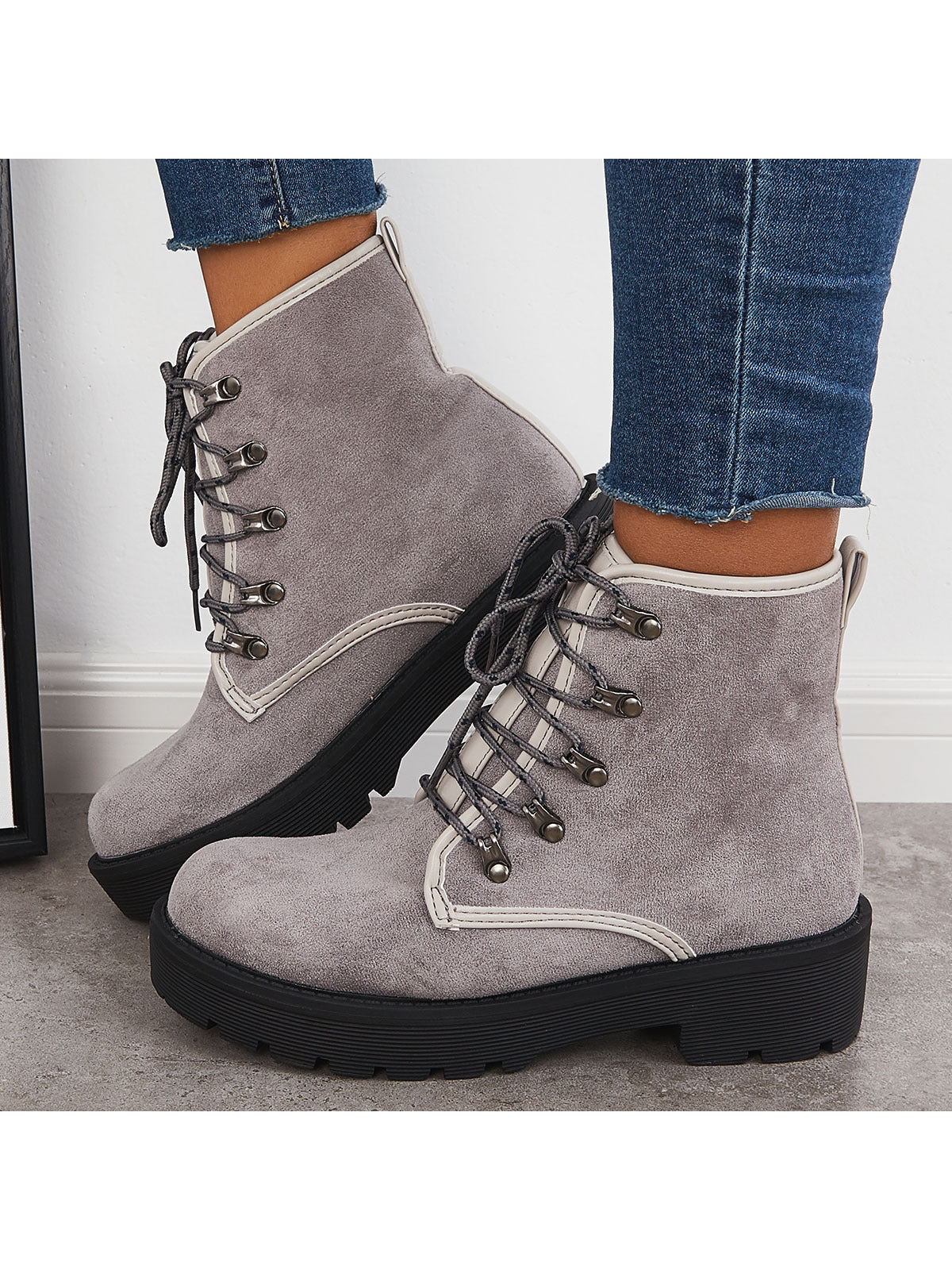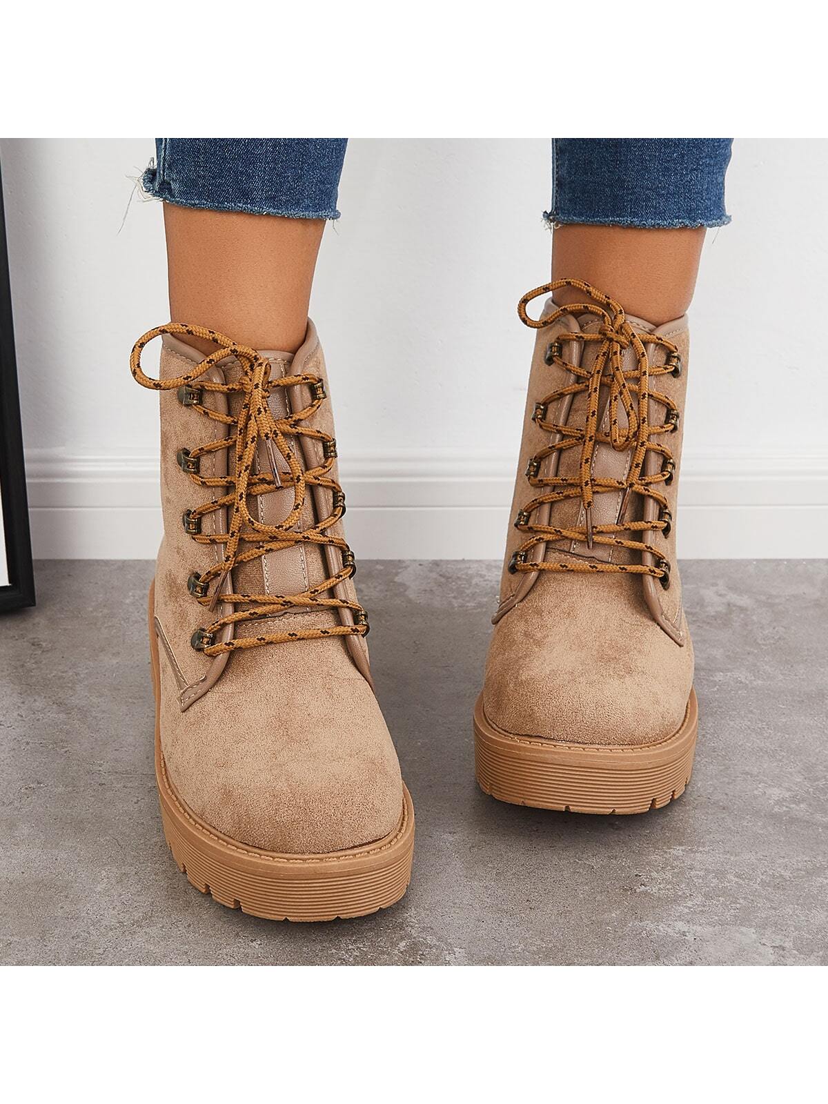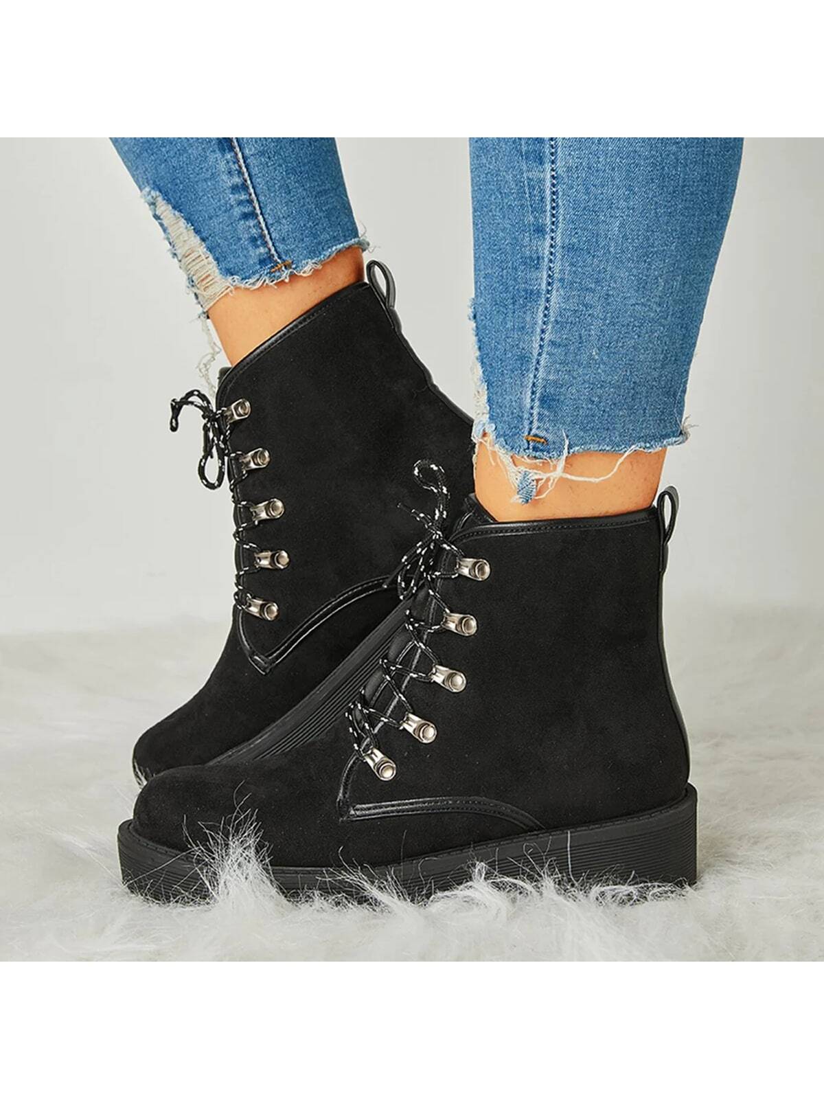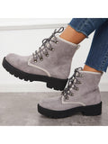 Stylish Women's Chunky Heel Combat Boots with Lace-Up Lug Sole