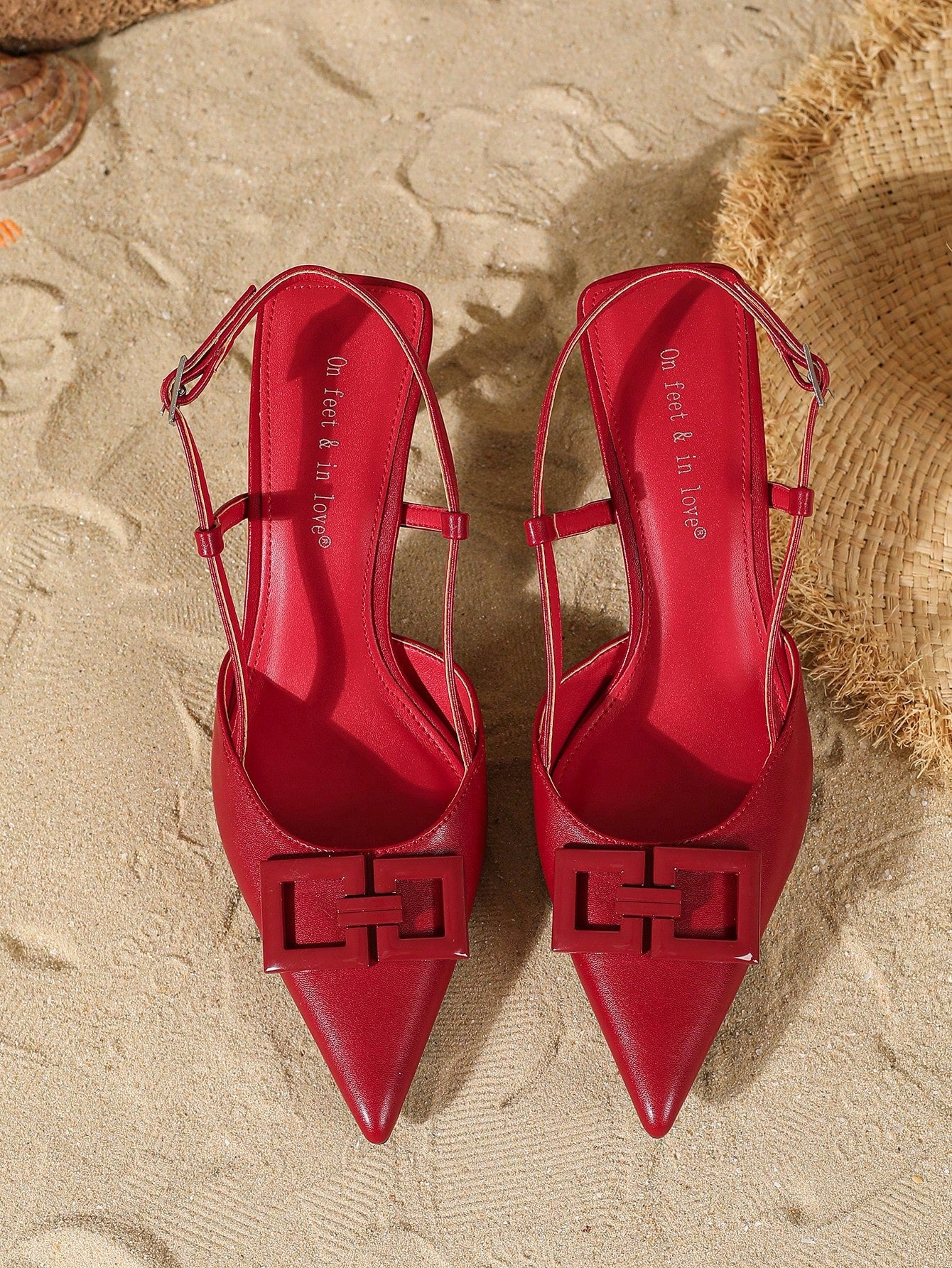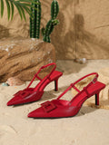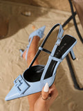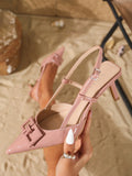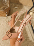 Stylish Women's Pointed Toe White High Heels with Decorative Buckle