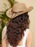 Stylish Women's Tape-Studded Decor Straw Cowboy Hat for Daily Boho Life