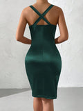Sultry Satin Cami Dress with Ruched Tulip Hem