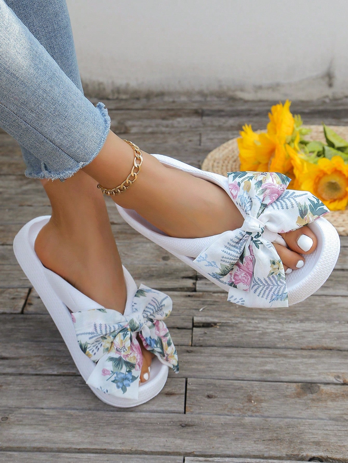 Slippers. Made of plastic, these slip-on sandals feature a cute bowknot design, perfect for a day at the beach. Enjoy the benefits of lightweight, durable material and effortless fashion. Upgrade your summer footwear collection today!"