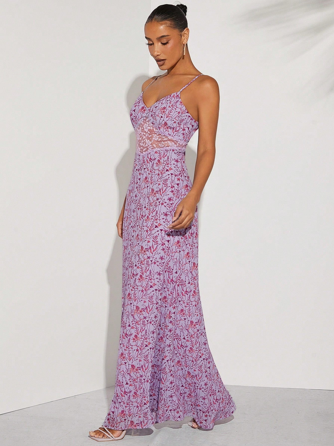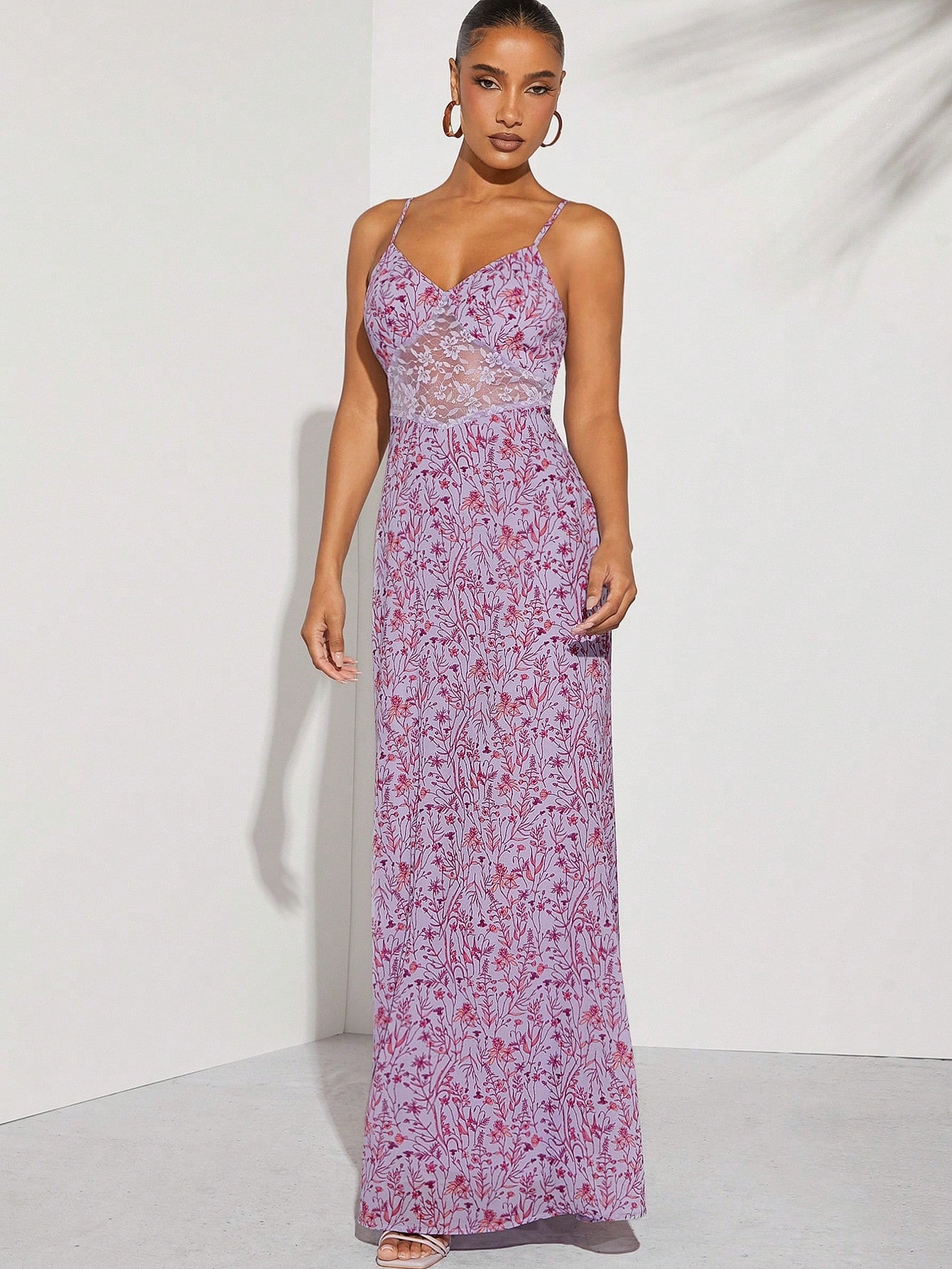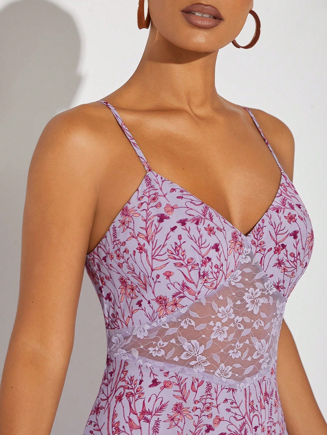 Summer Blooms: Floral Print Lace Panel Maxi Cami Dress