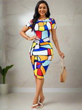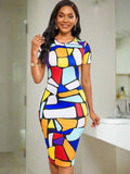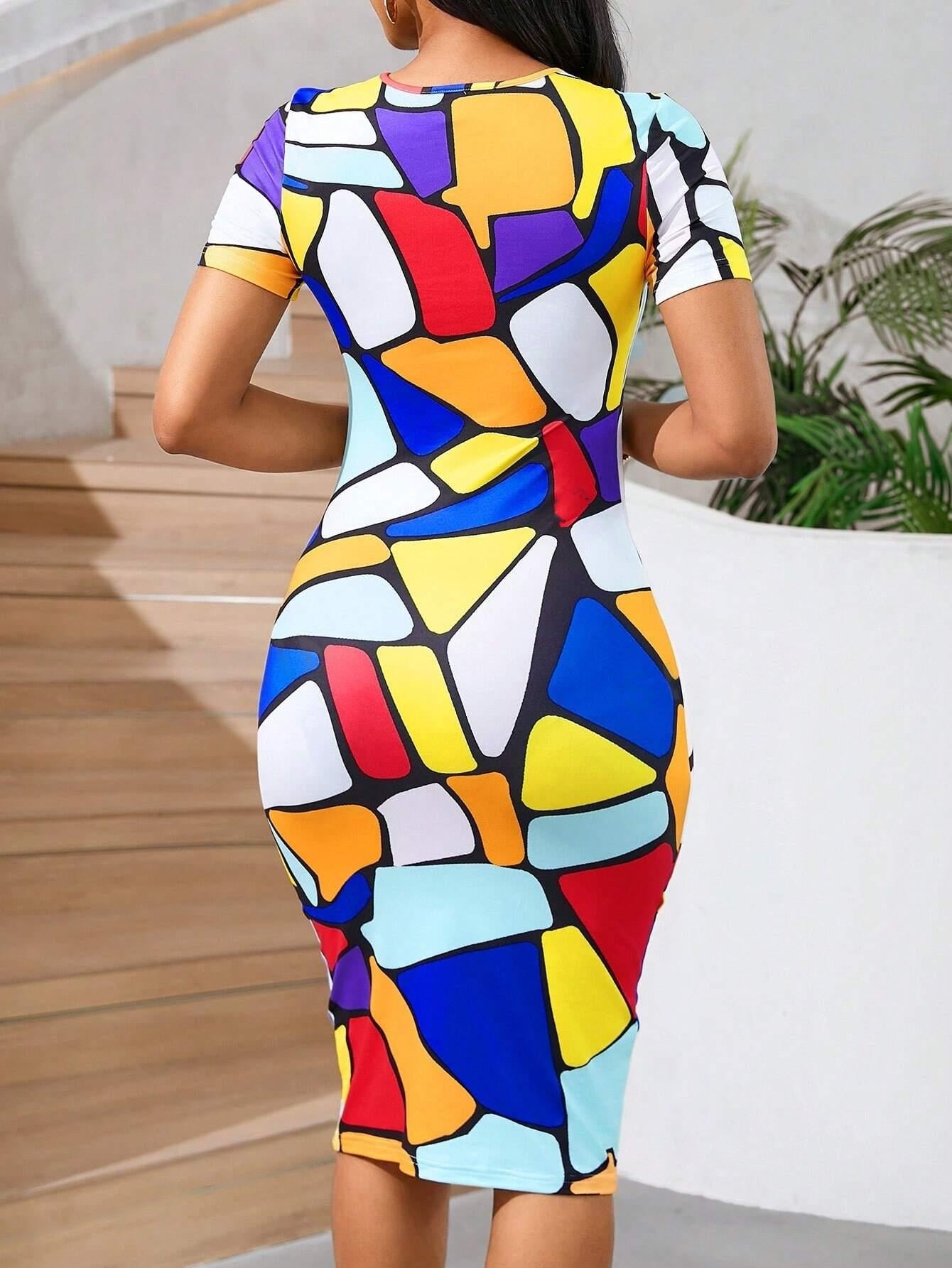 Summer Chic: Casual Slim Fit Printed Dress with Color Block Design