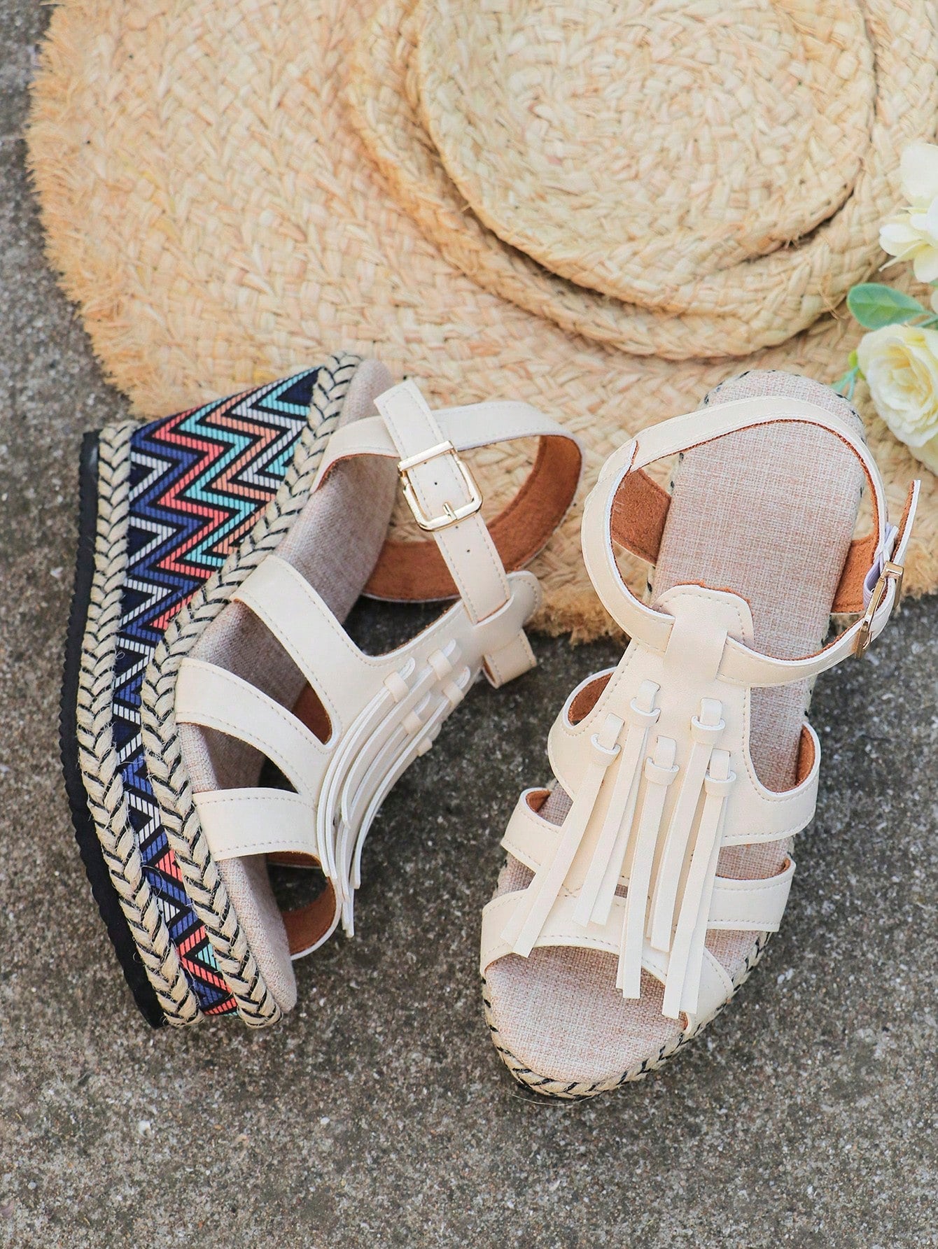 Summer Chic: Handwoven Grass Embroidery Fringe High Heels Sandals