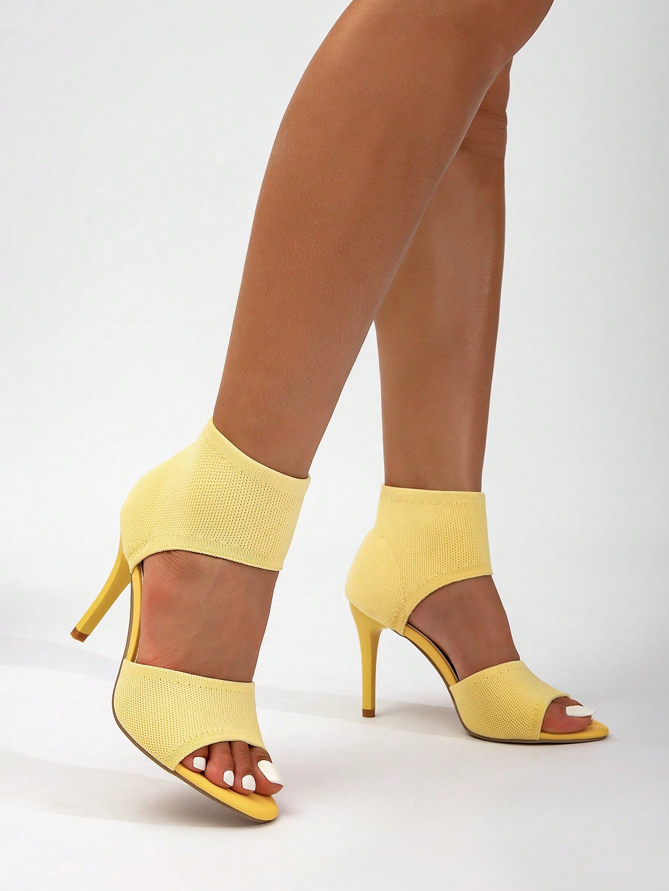 Summer Chic Knit High Heel Sandals for Women - Stylish, Breathable, and Comfortable