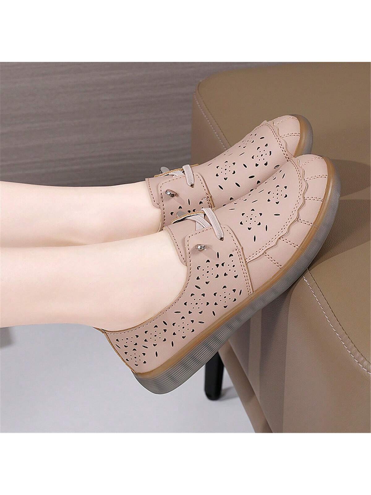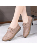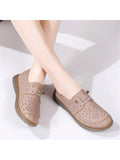 Summer Chic: Leather Hollow Out Slip-On Loafers for Casual Moms