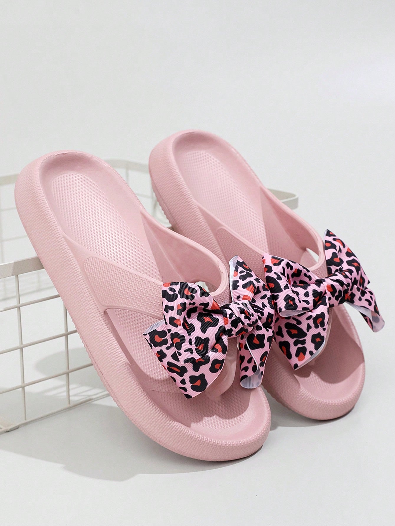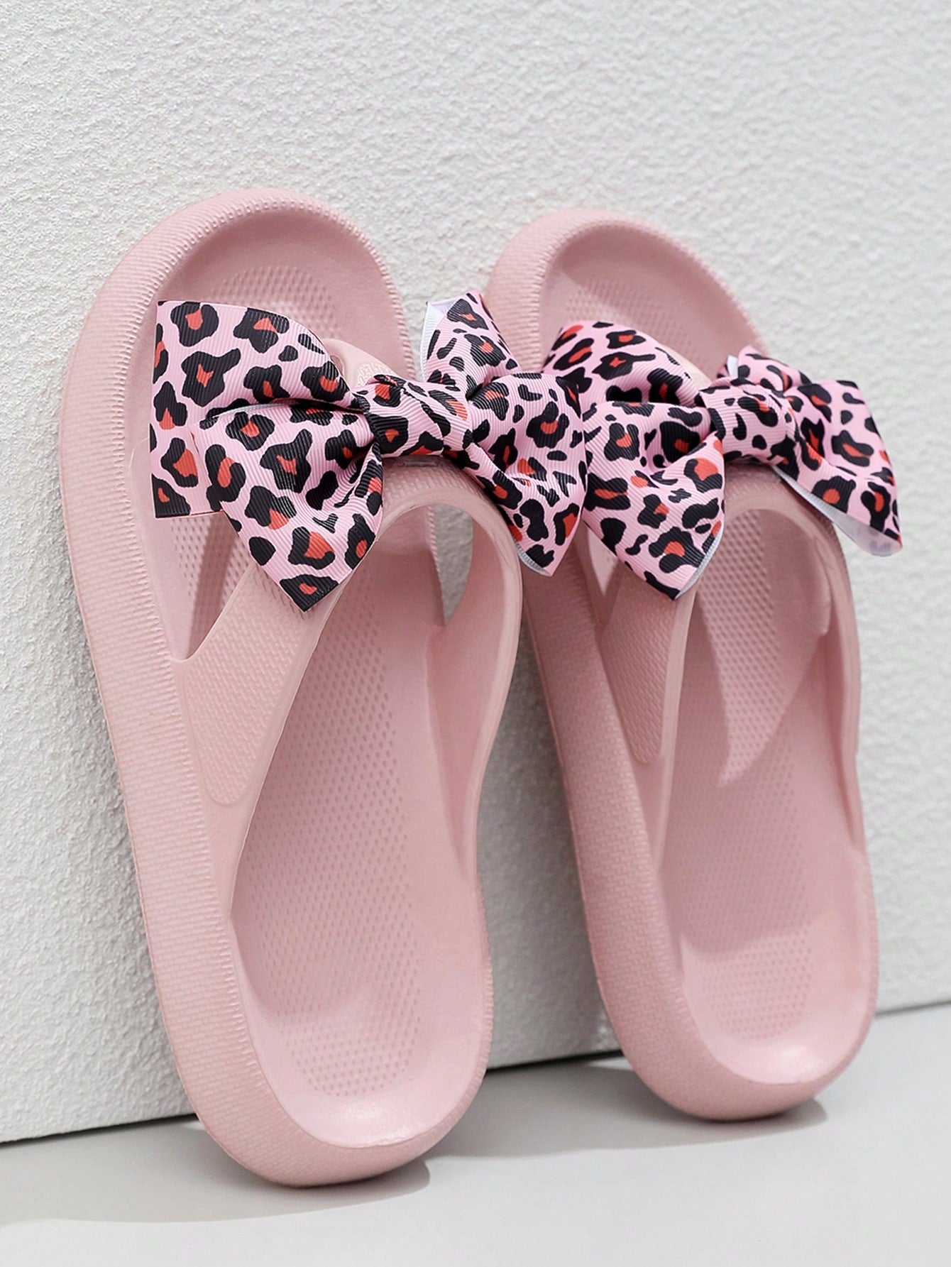 Flip Flops, the perfect combination of style and comfort. Made with high-quality materials, these flip flops offer ultimate comfort for your feet while making a fashion statement with the trendy leopard print and bow tie design. Elevate your summer look with these stylish flip flops!"