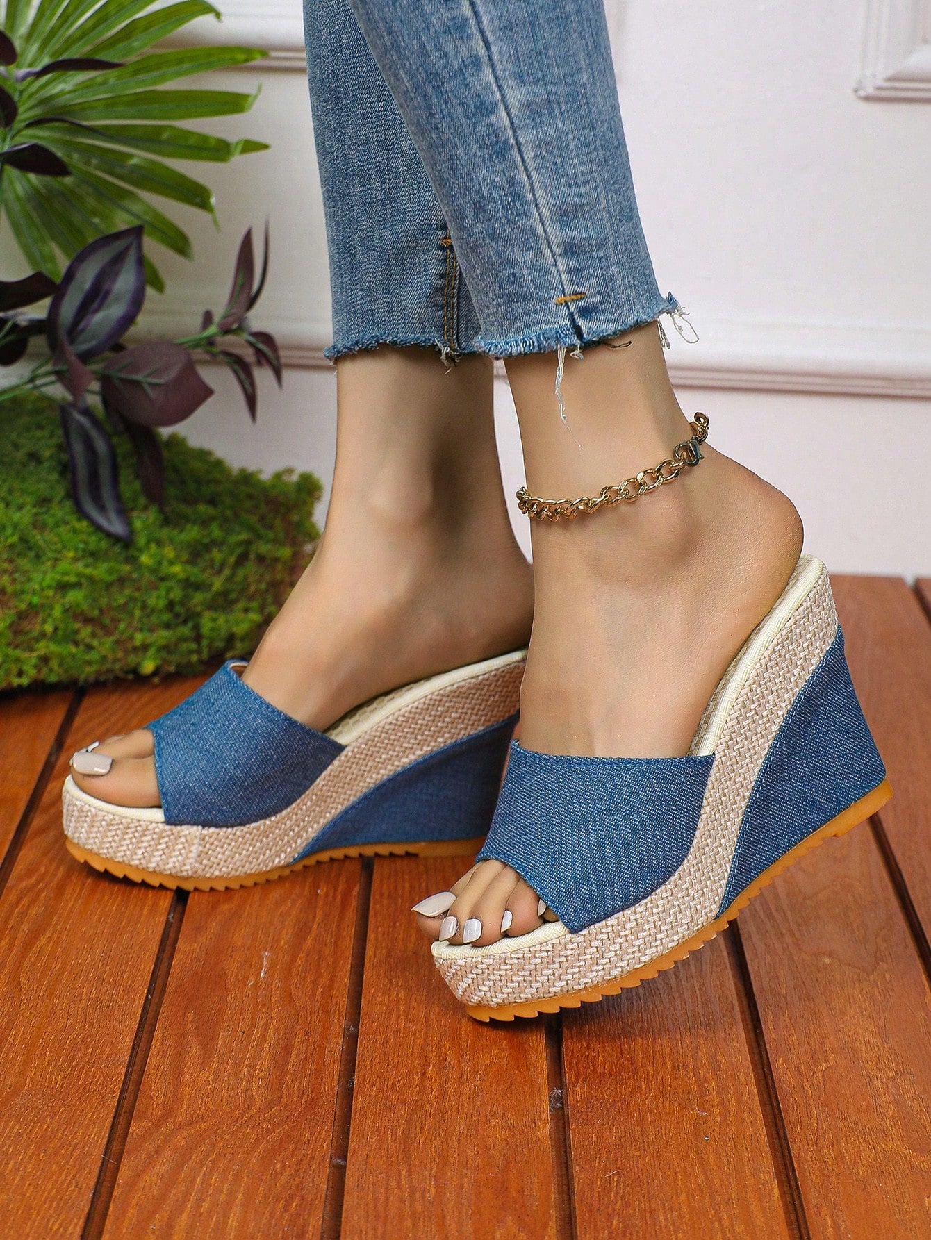 Summer Chic: Mature Fashionable Wedge Heel Slippers for Casual Style