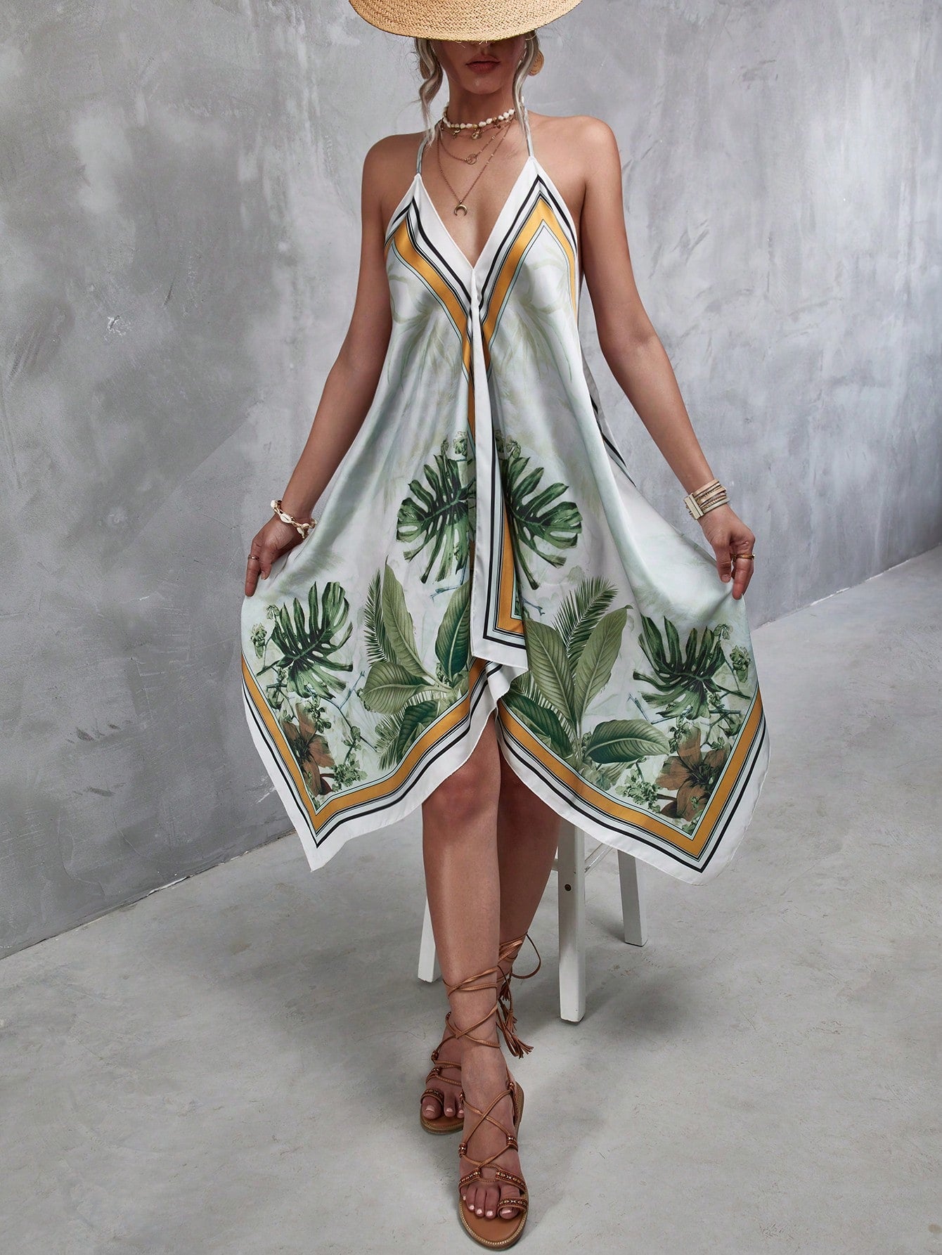 Summer Chic: Tropical Print Hanky Hem Cami Dress