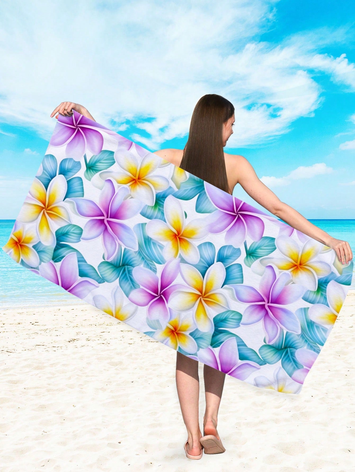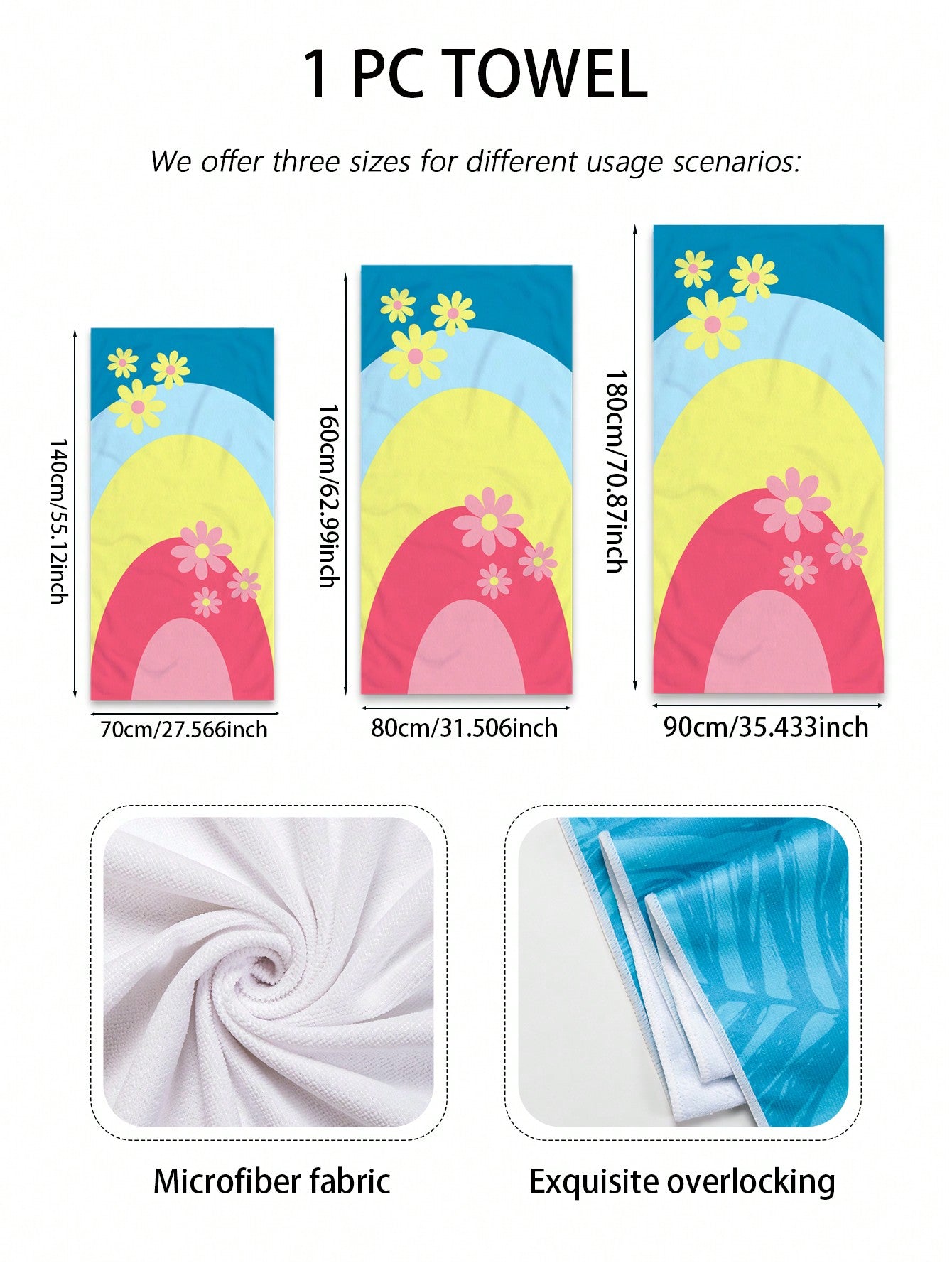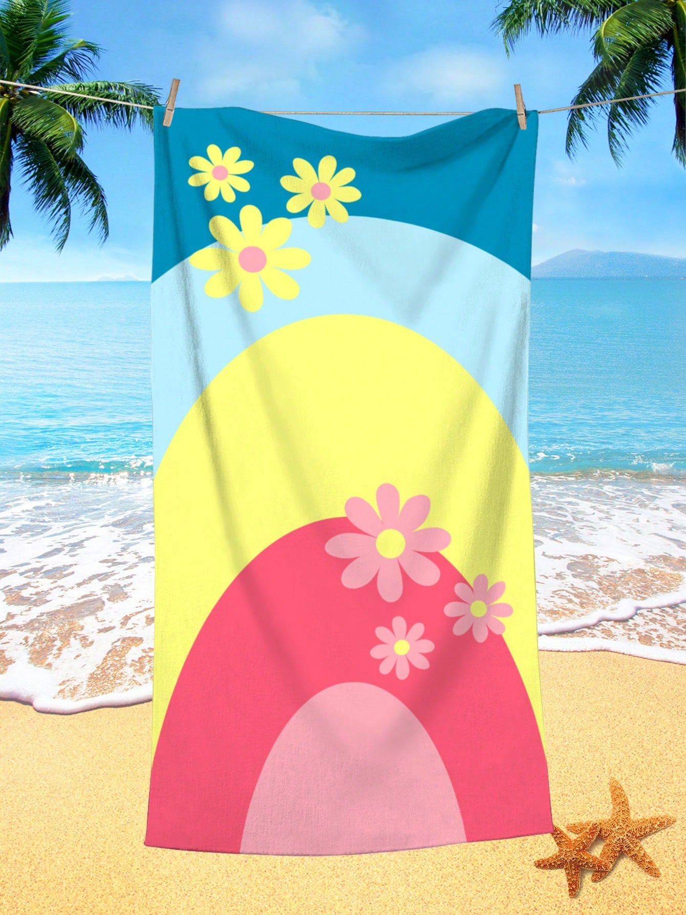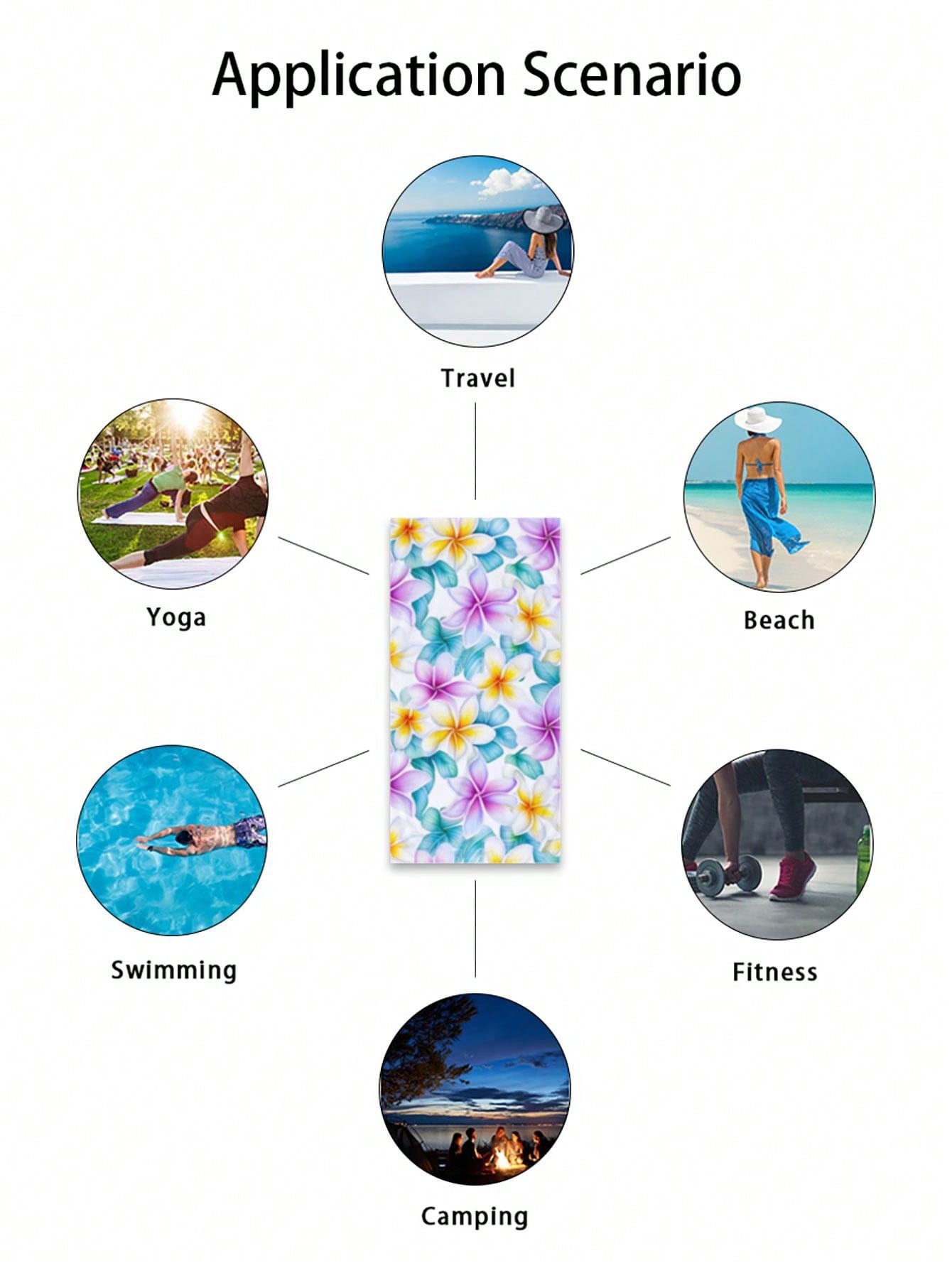 Beach Towel. Made with quick-dry and absorbent microfiber material, it's perfect for swimming, beach trips, travel, and camping. The vibrant plant and flower pattern adds a touch of style to your beach outings. Enjoy the sun without worrying about a soggy towel."