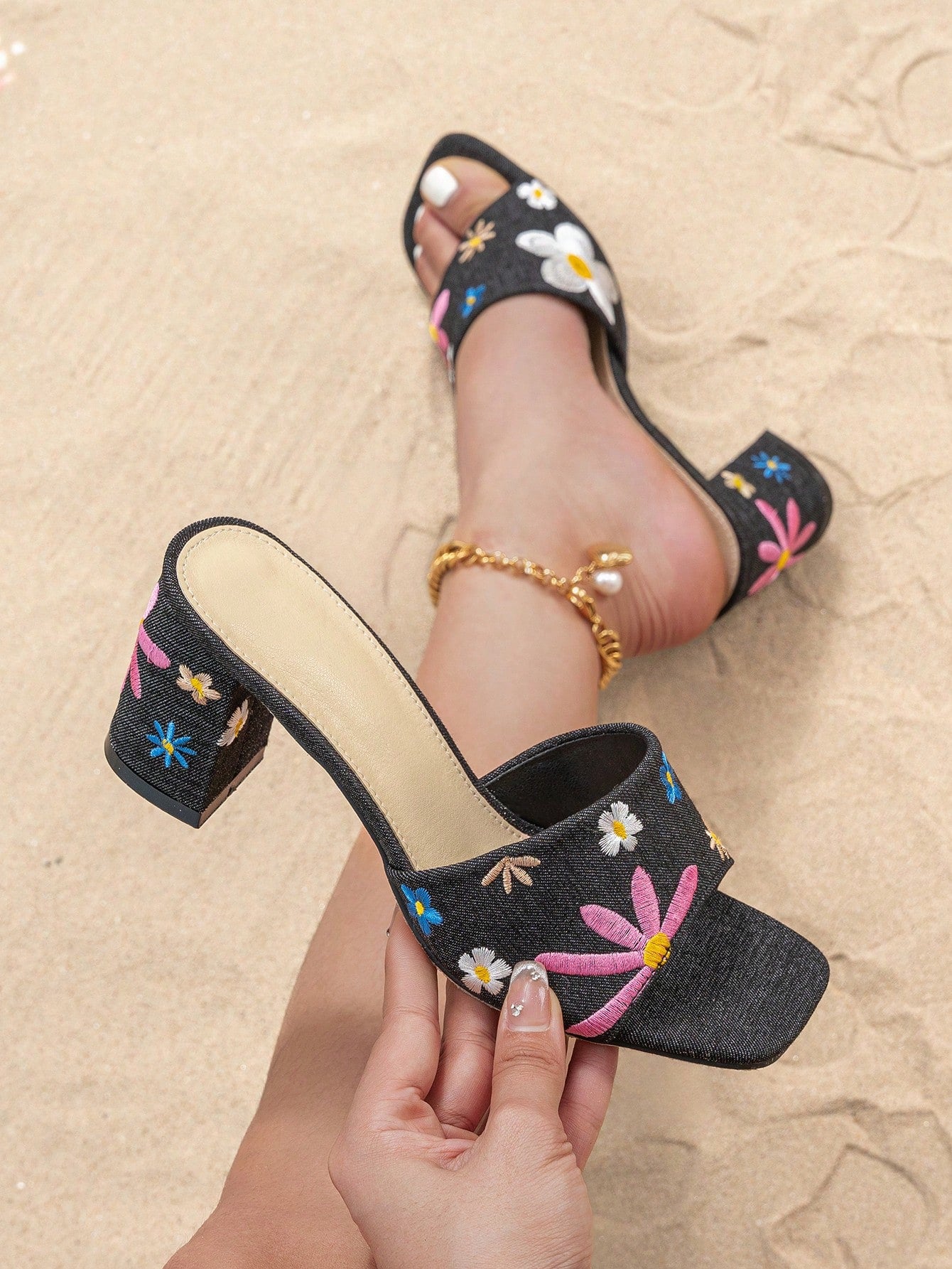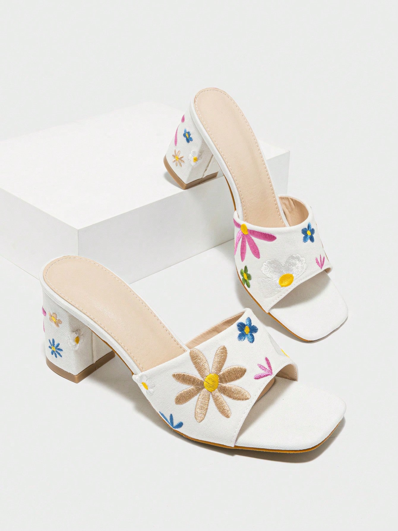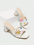 Summer Ready: Apricot Embroidered Flower Mules with Chunky Heels