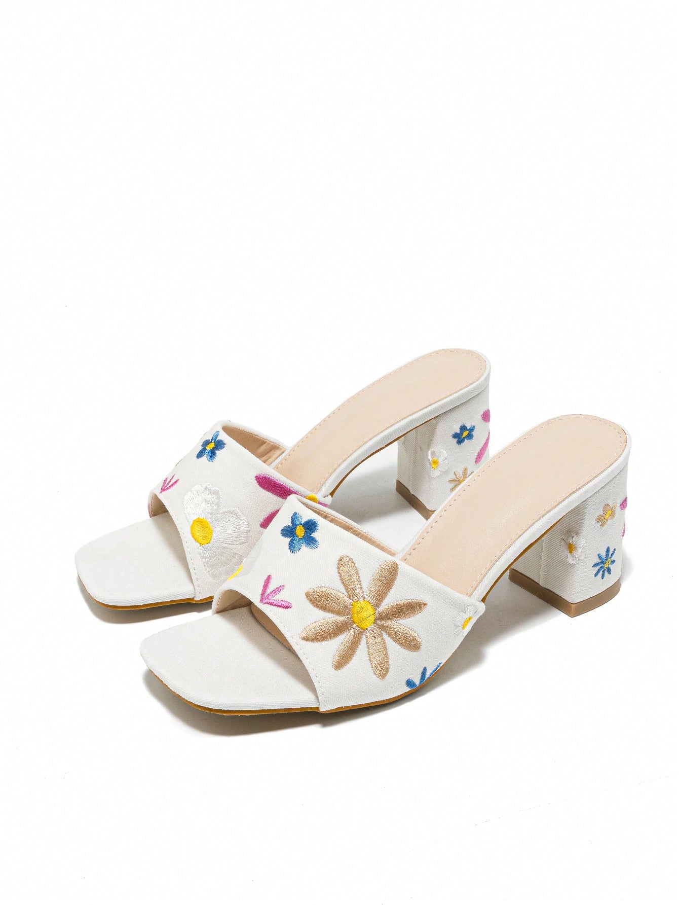 Step into summertime in style with our Summer Ready Apricot Embroidered Flower Mules! Featuring beautiful embroidered flowers and a comfortable chunky heel, these mules are perfect for any summer occasion. Add a touch of elegance and comfort to your wardrobe with these fashionable shoes.