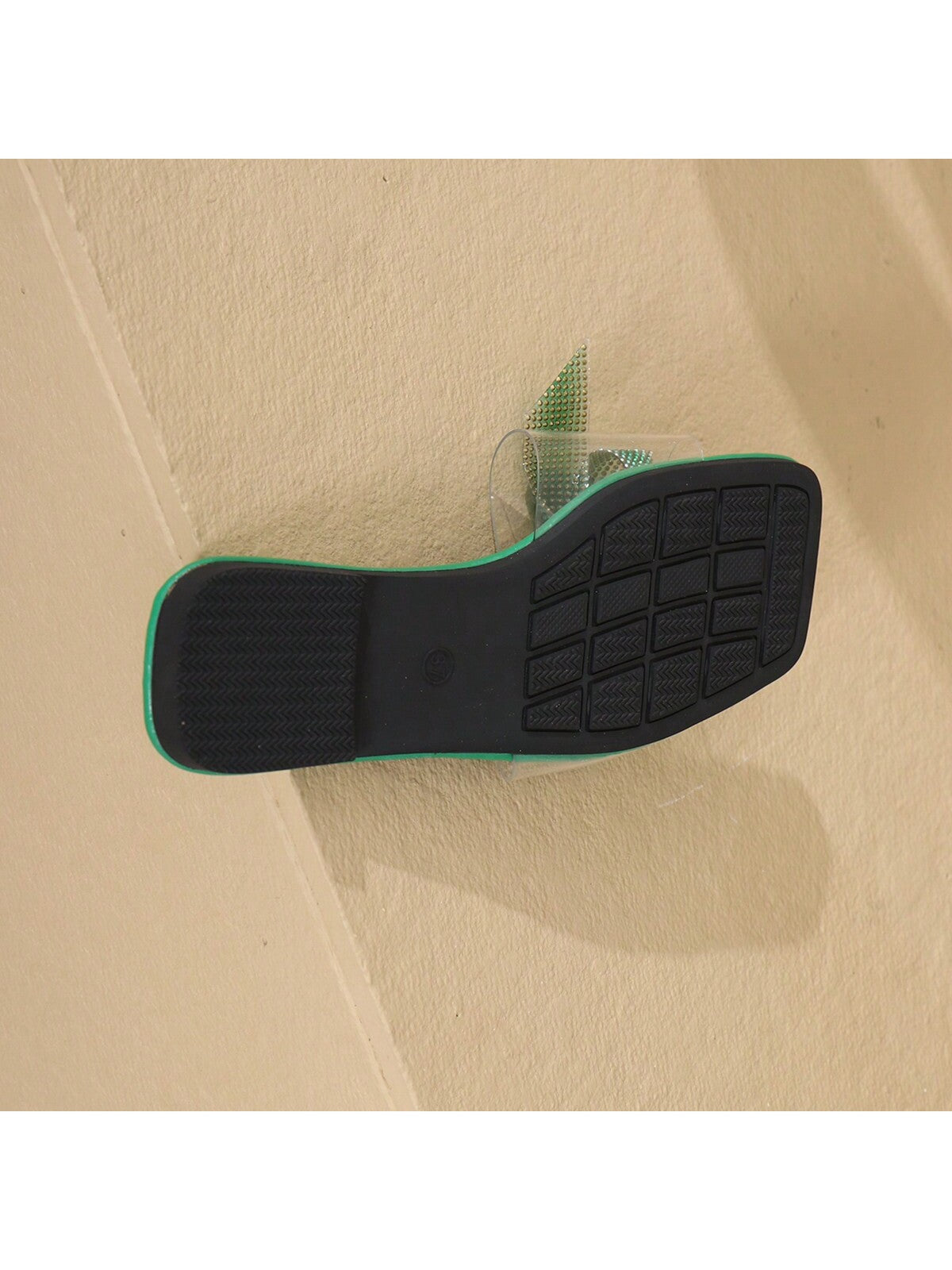 Summer Sparkle: Rhinestone-Decorated Slip-On Flat Sandals for Women