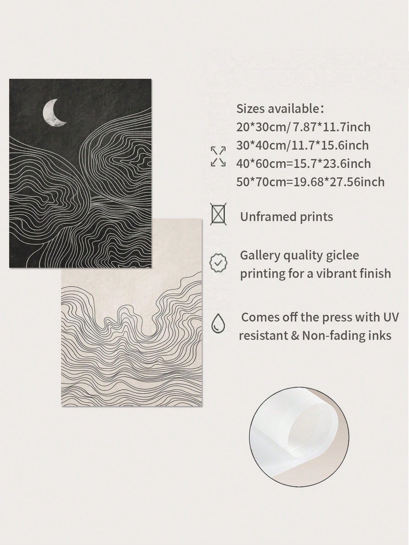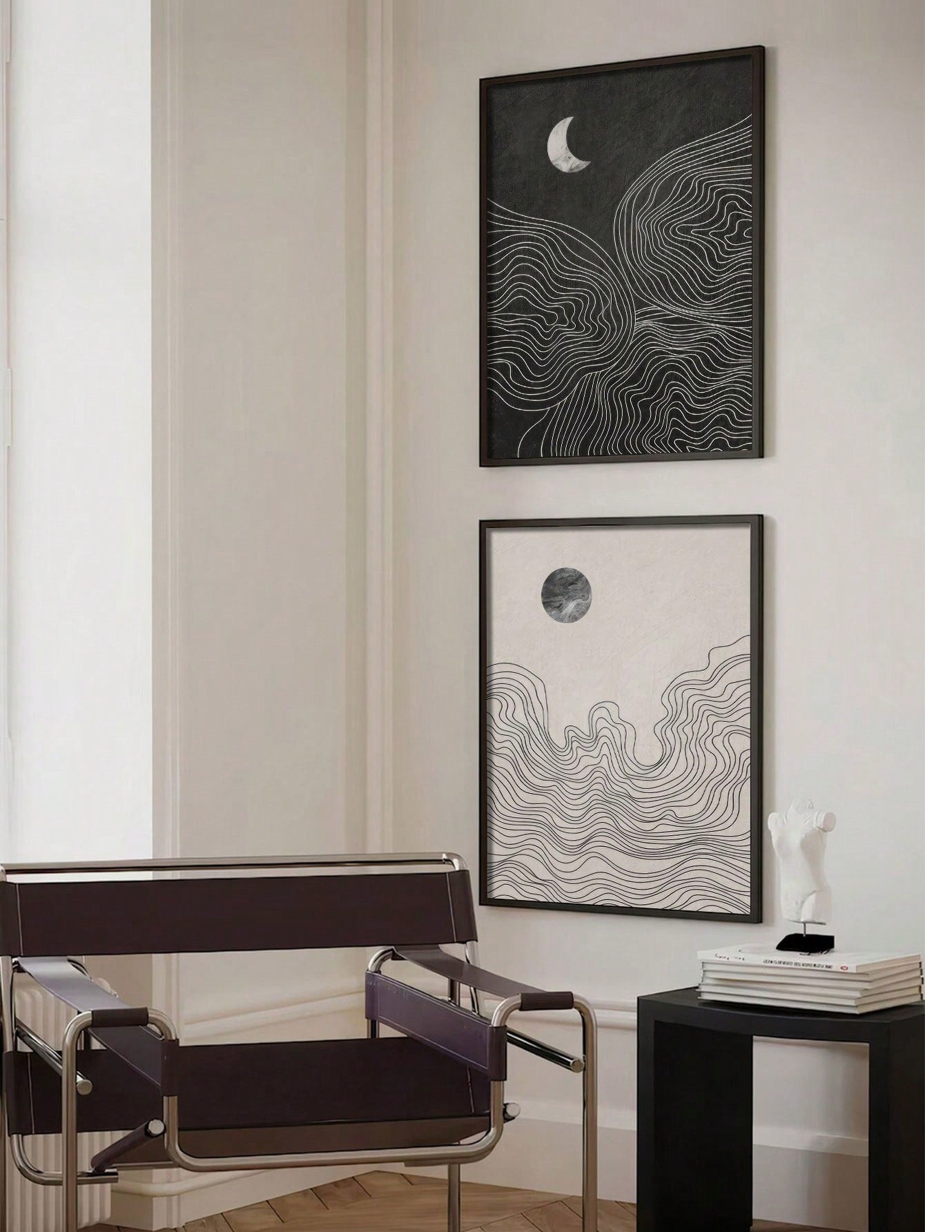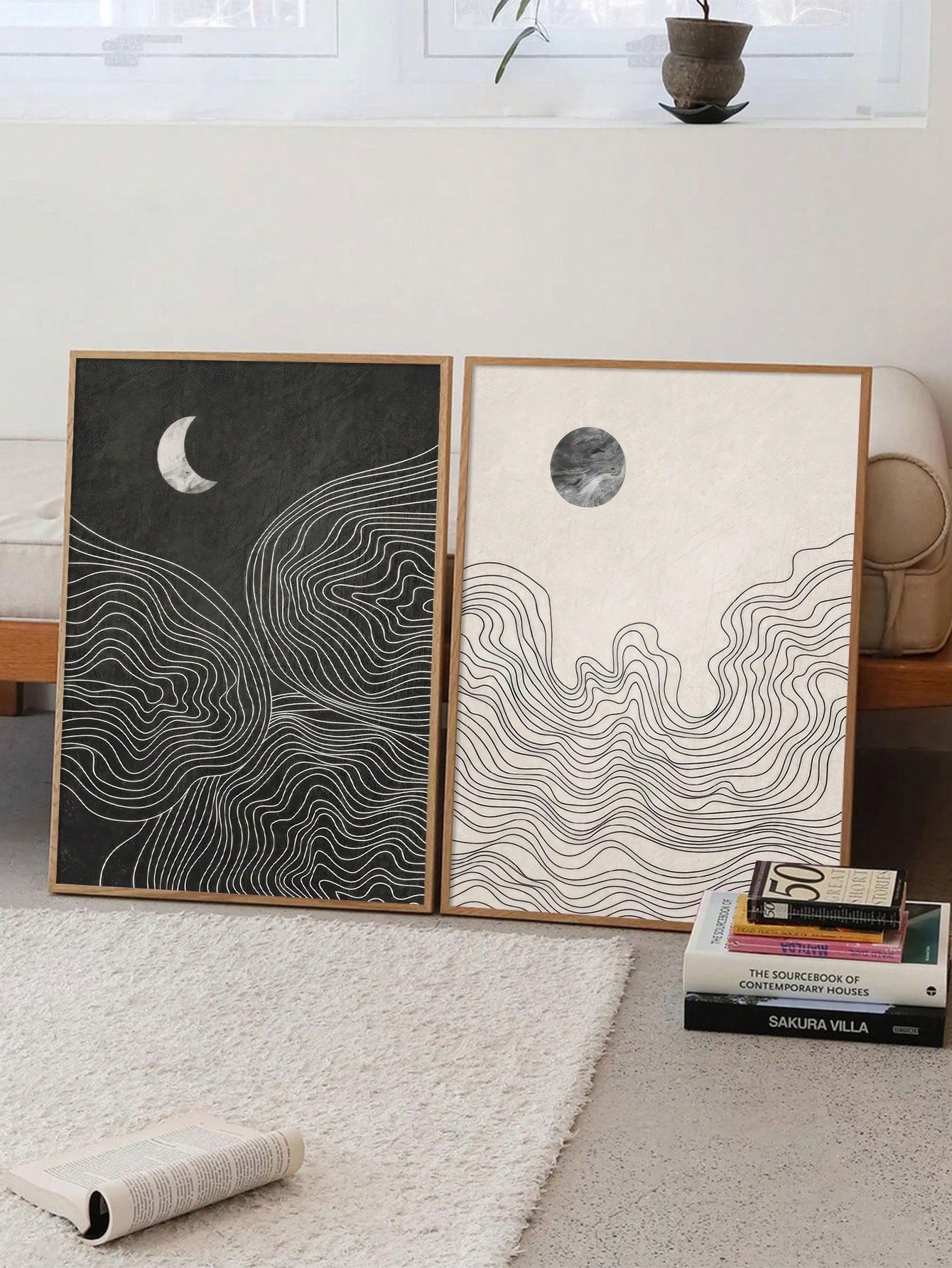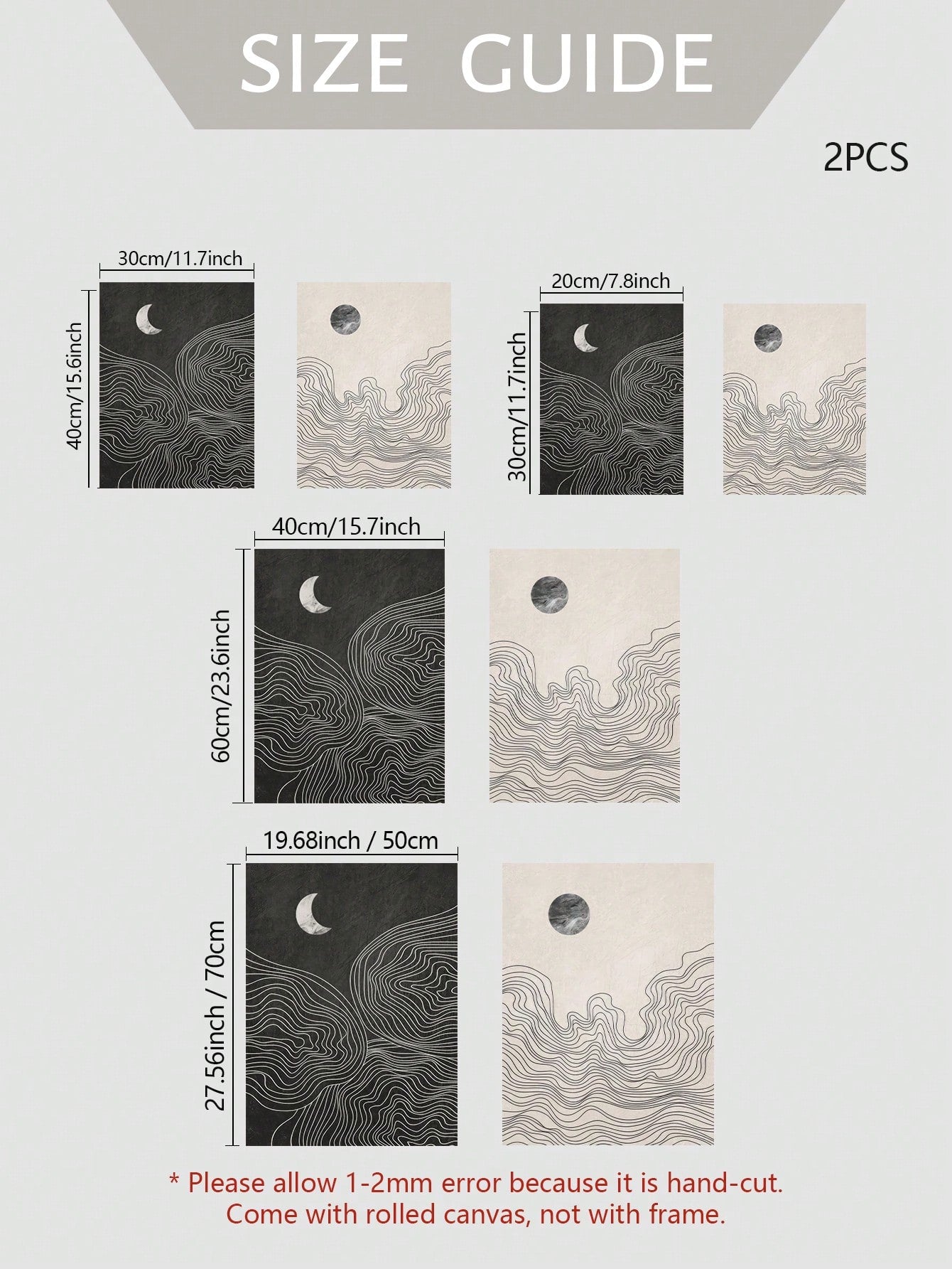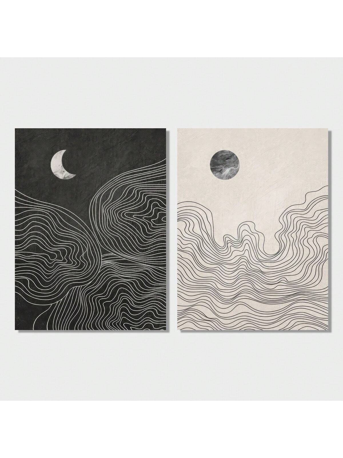 Sun and Moon Bohemian Canvas Art Set for Modern Minimalist Home Decor