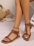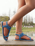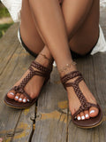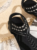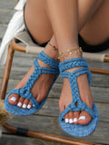 Sun-Kissed Style: Women's Summer 2024 Woven Straw Ribbon Beach Flat Sandals