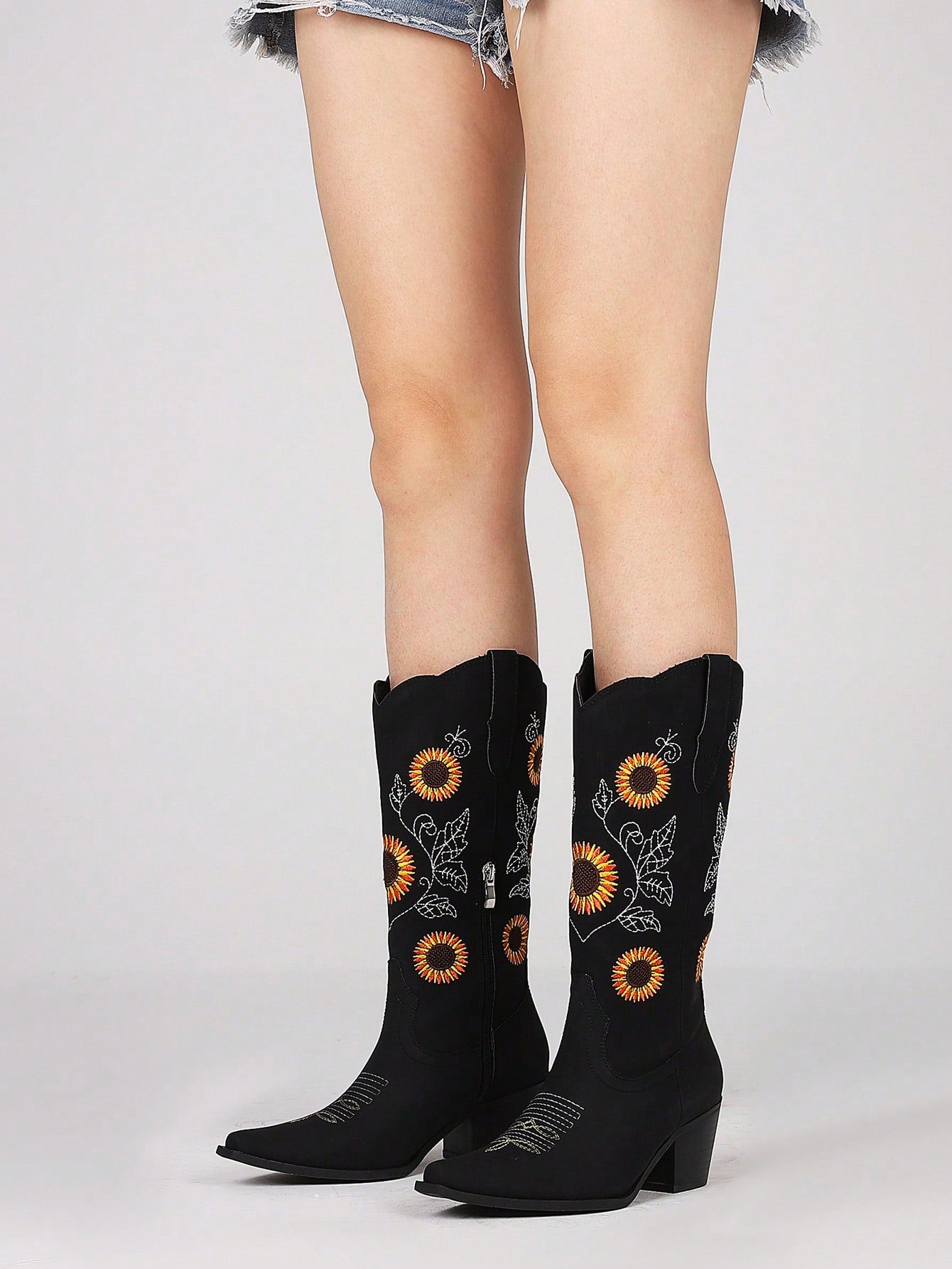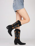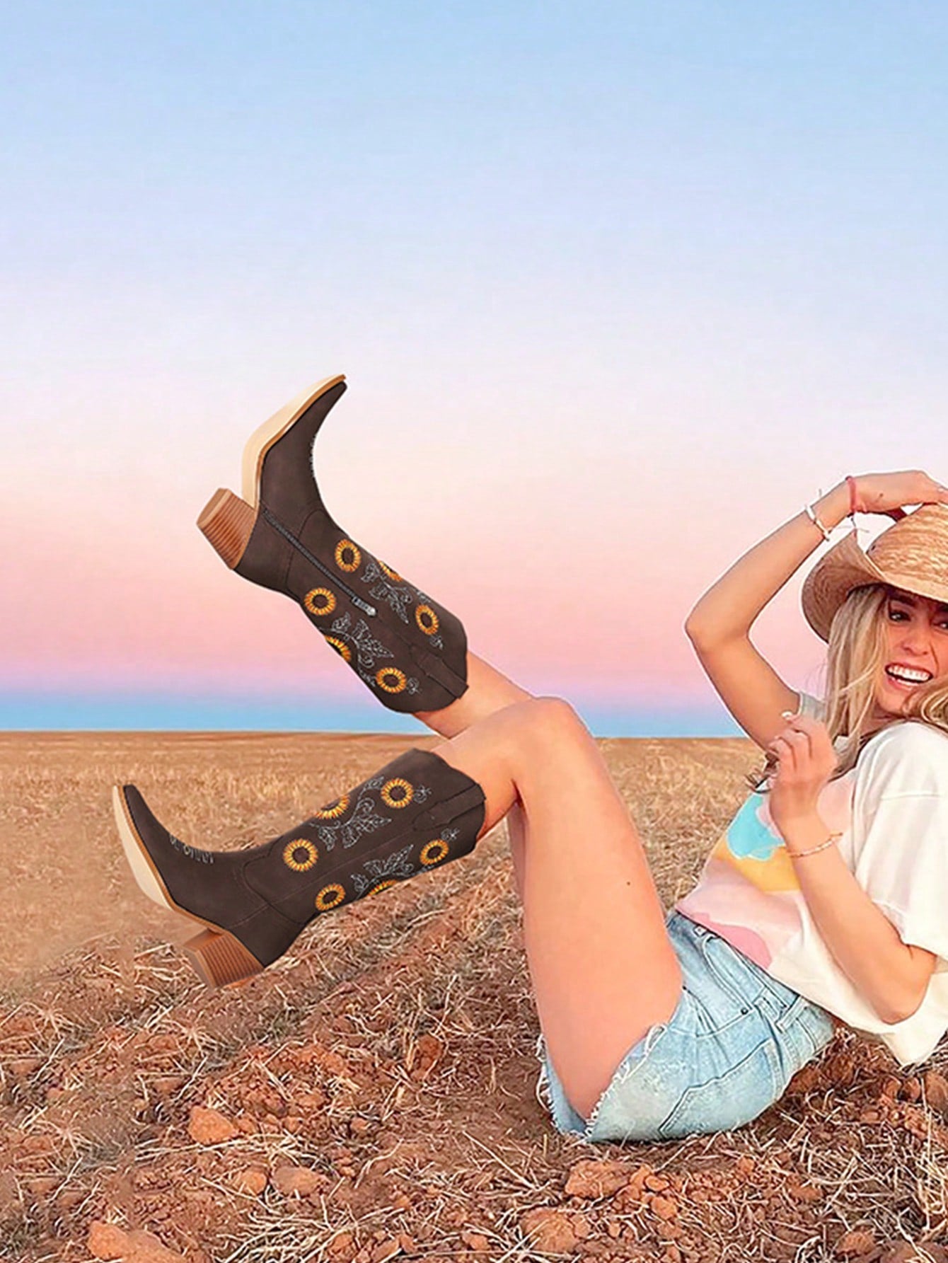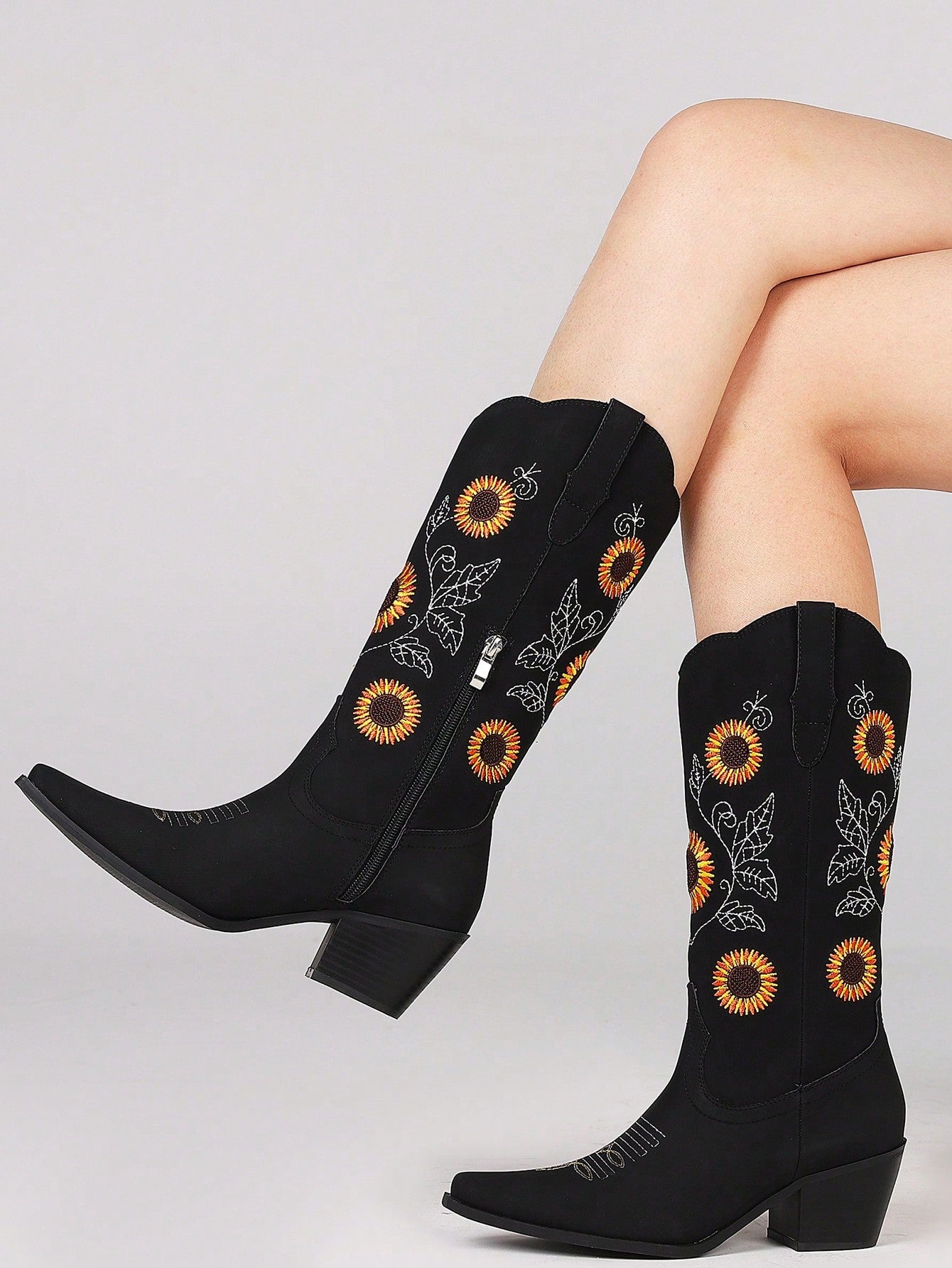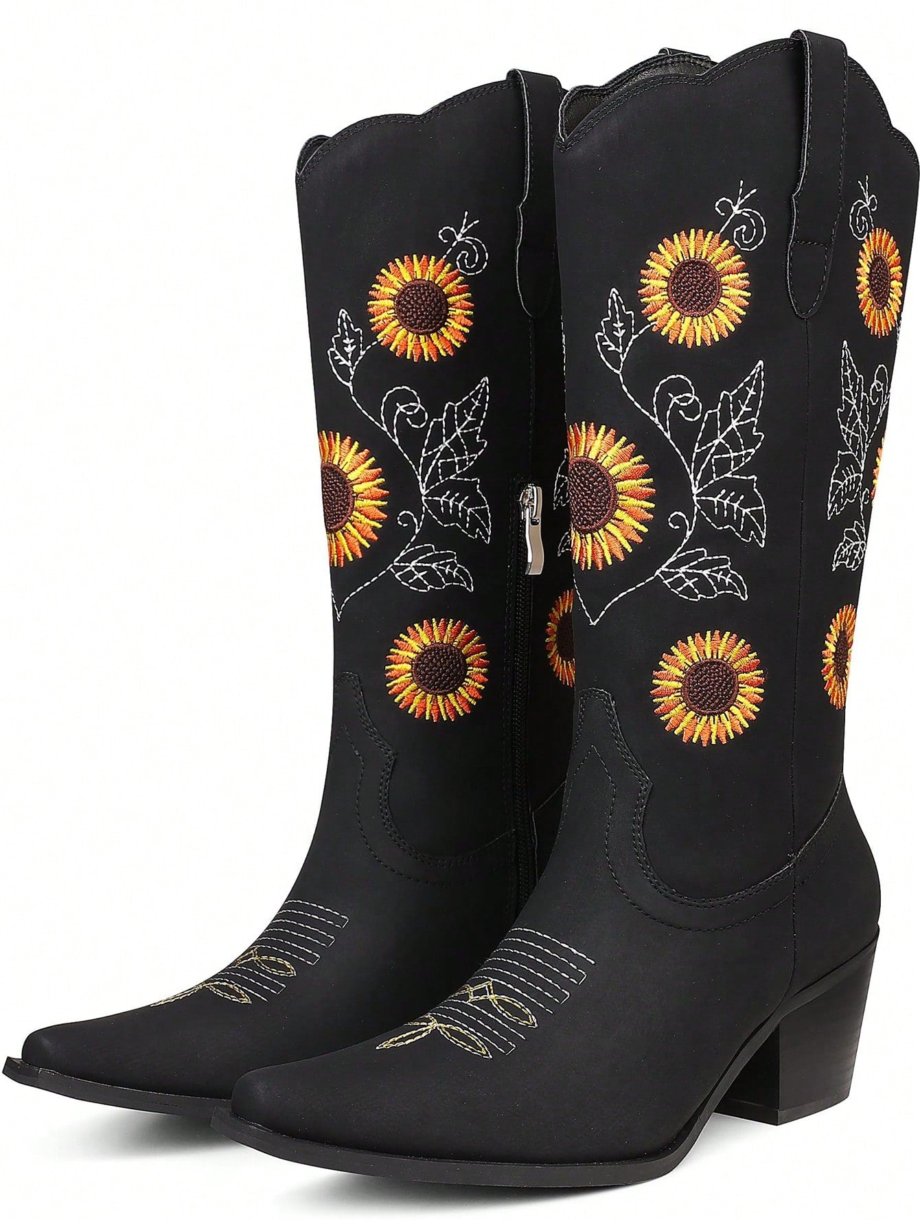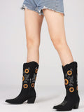 Sunflower Embroidered Cowboy Boots: Stylish Black Cowgirl Boots for Women