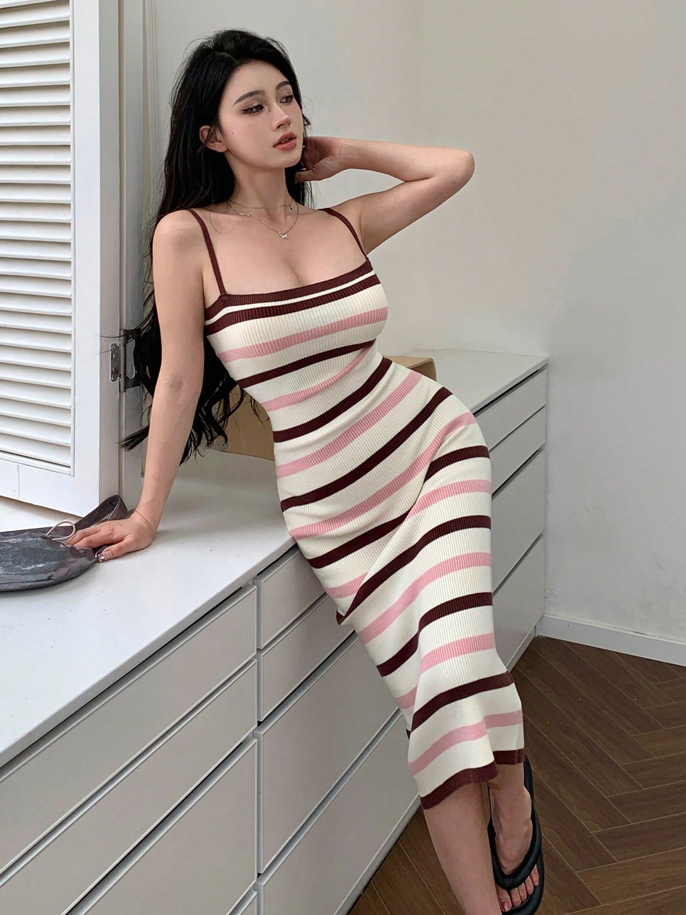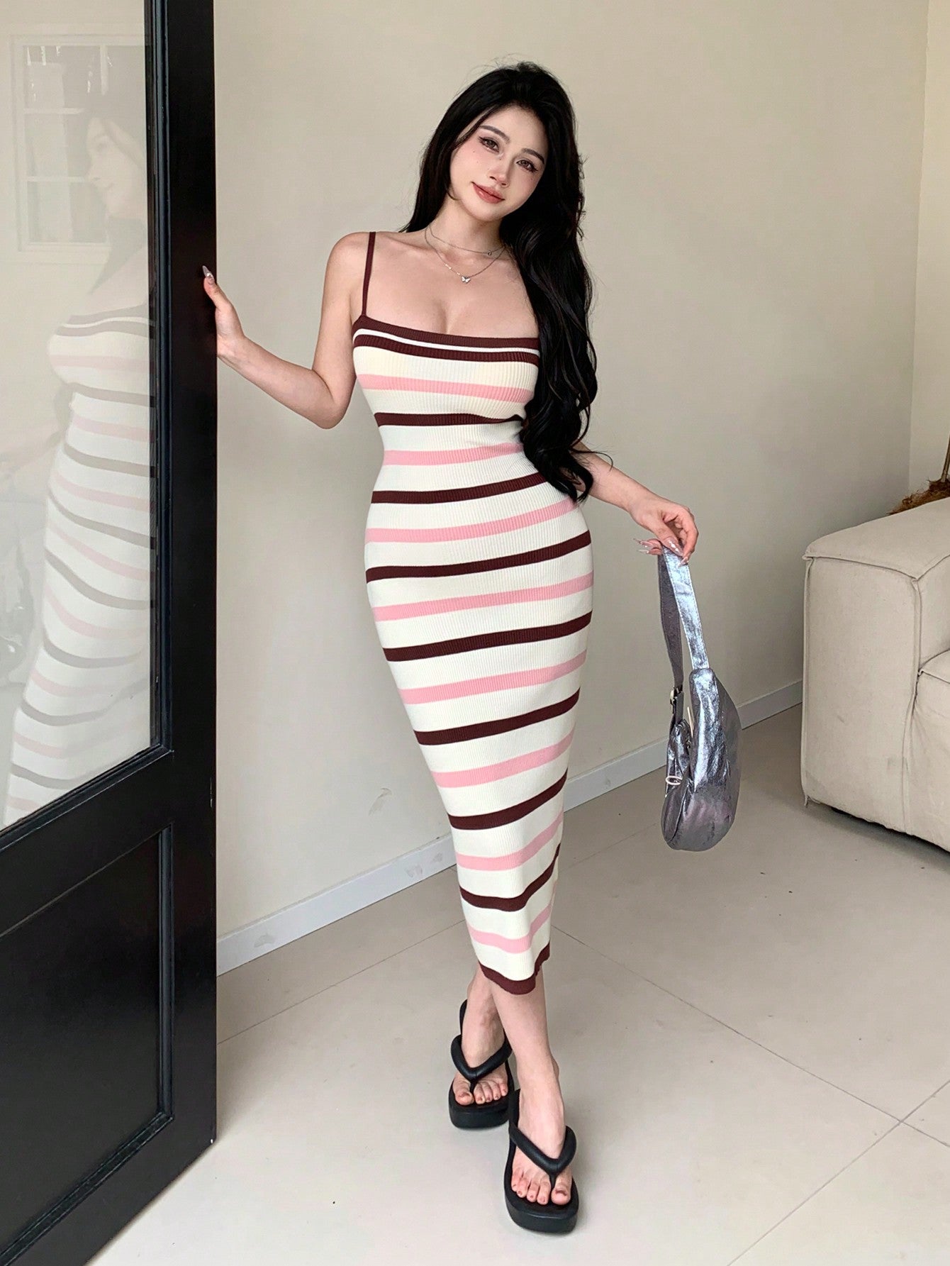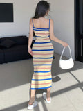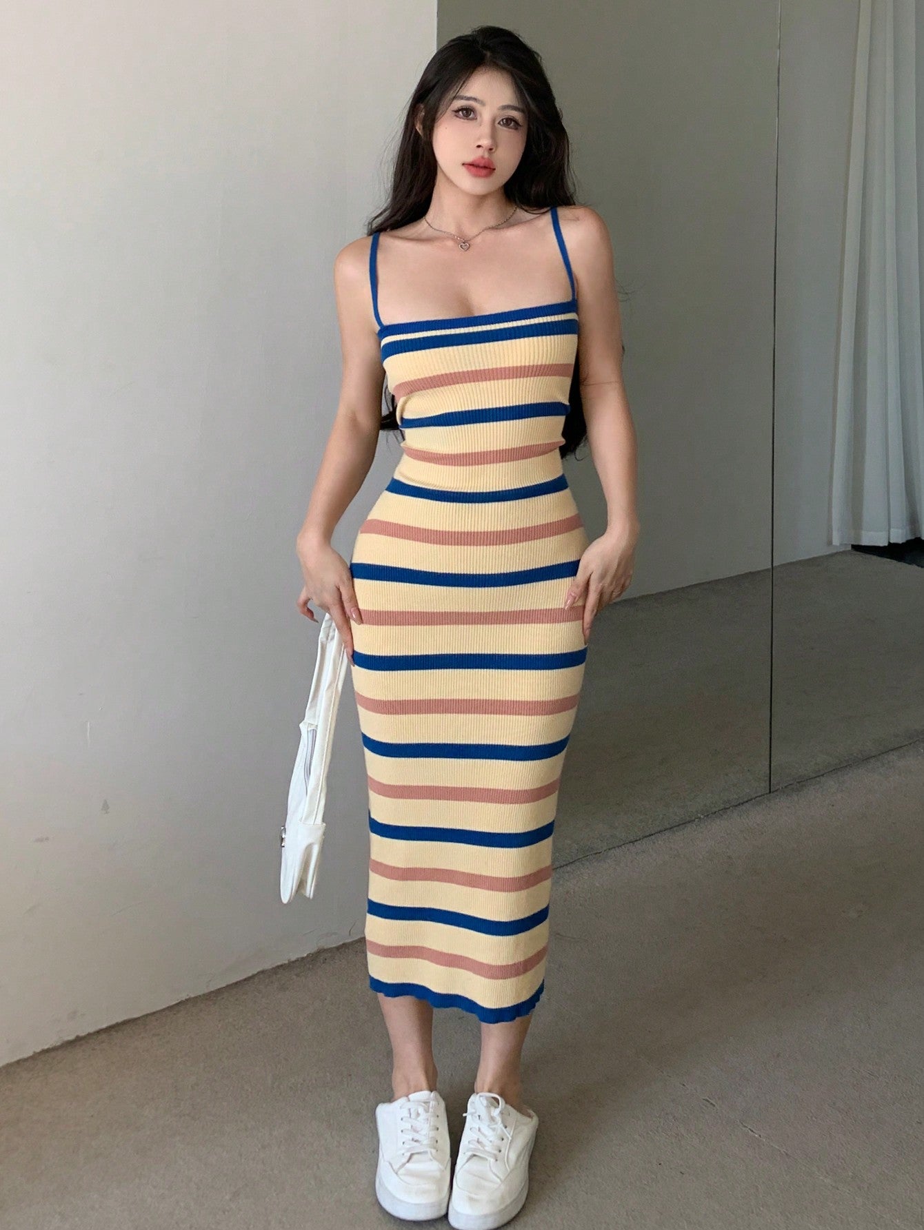 Sunny Days Ahead: Stripe Ribbed Knit Spaghetti Strap Dress