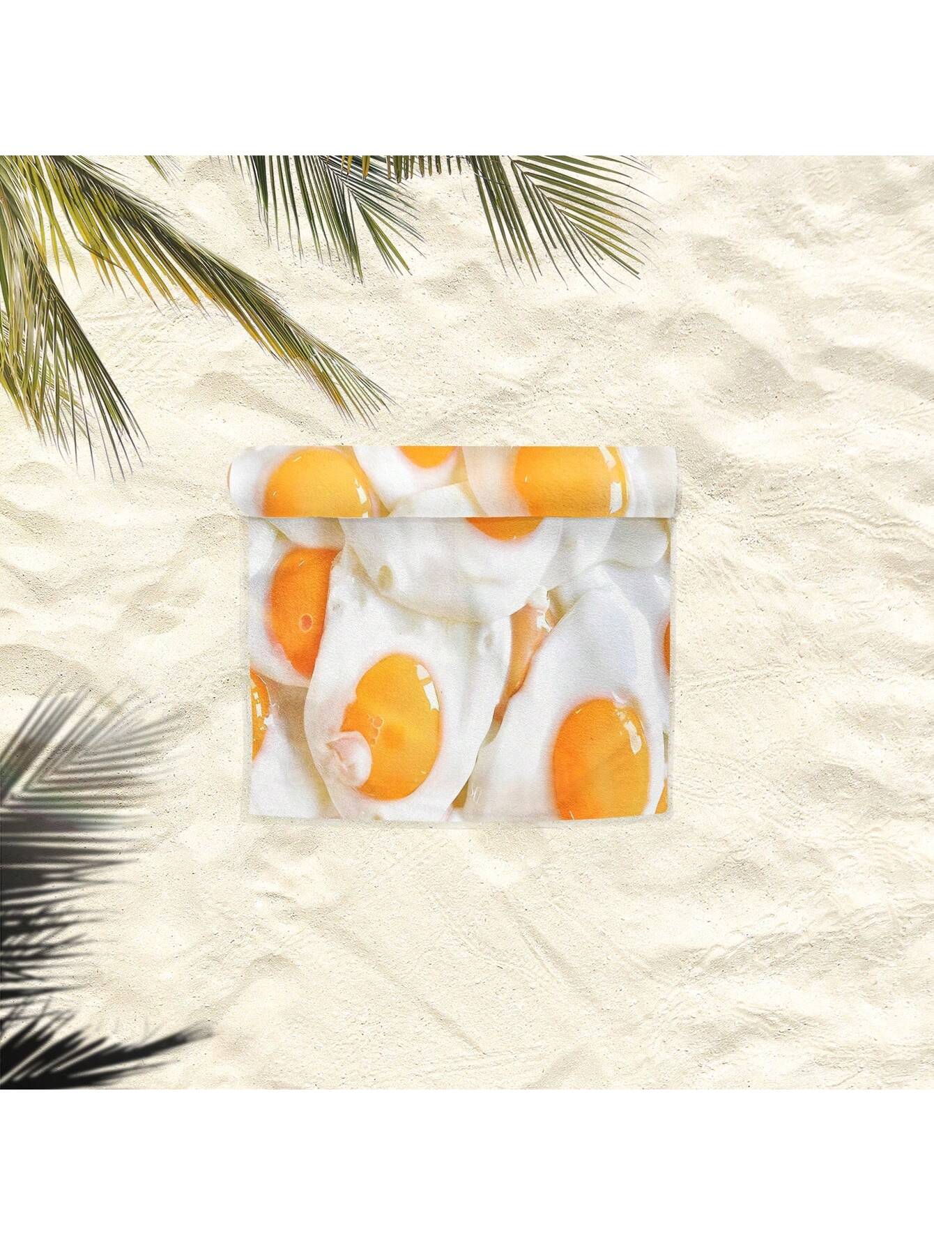 Sunny Side Up: Cartoon Fried Egg Patterned Beach Towel for Ultimate Softness and Absorbency