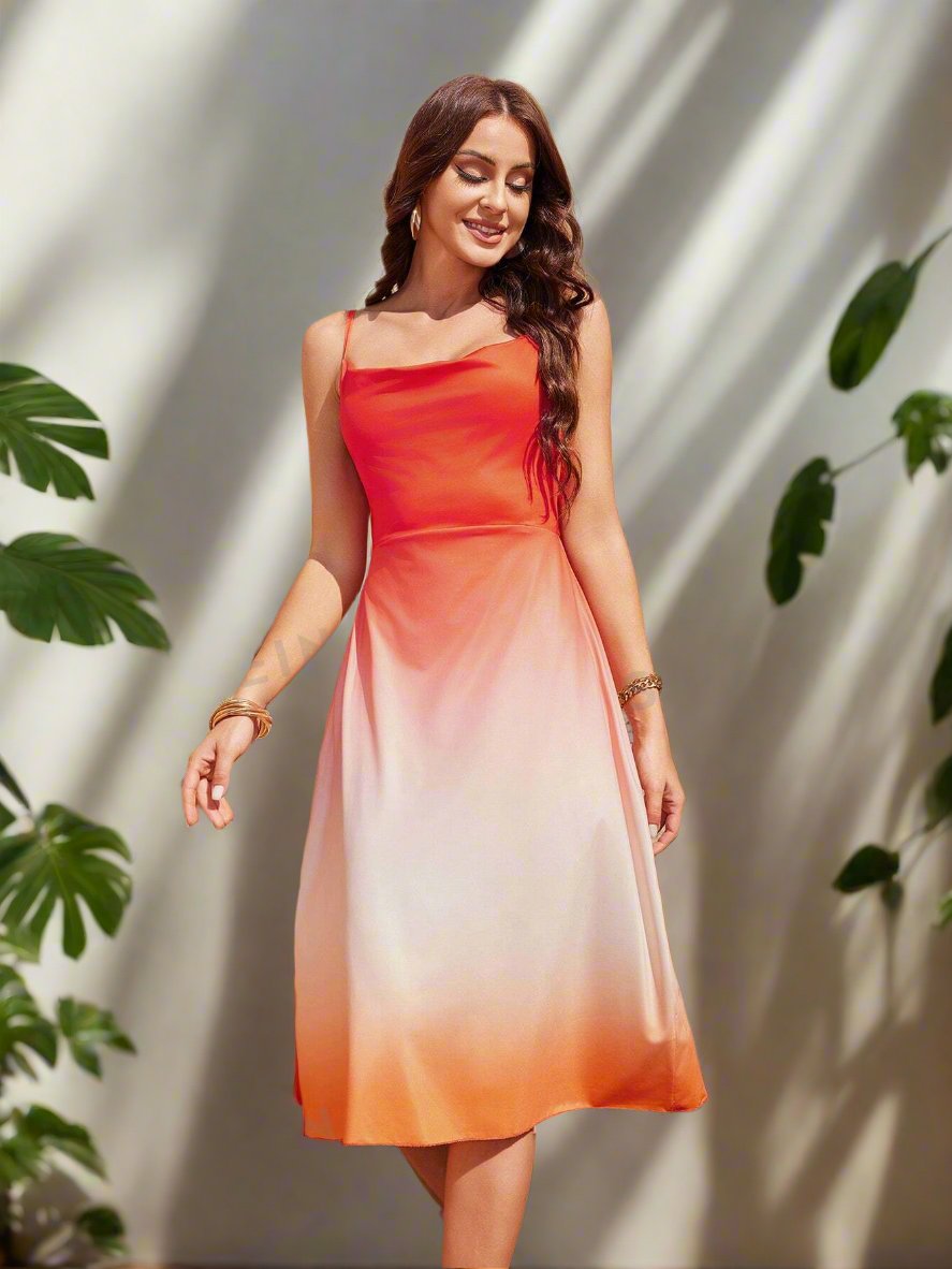Sunset Serenade: Women's Ombre Gradient Cami Dress