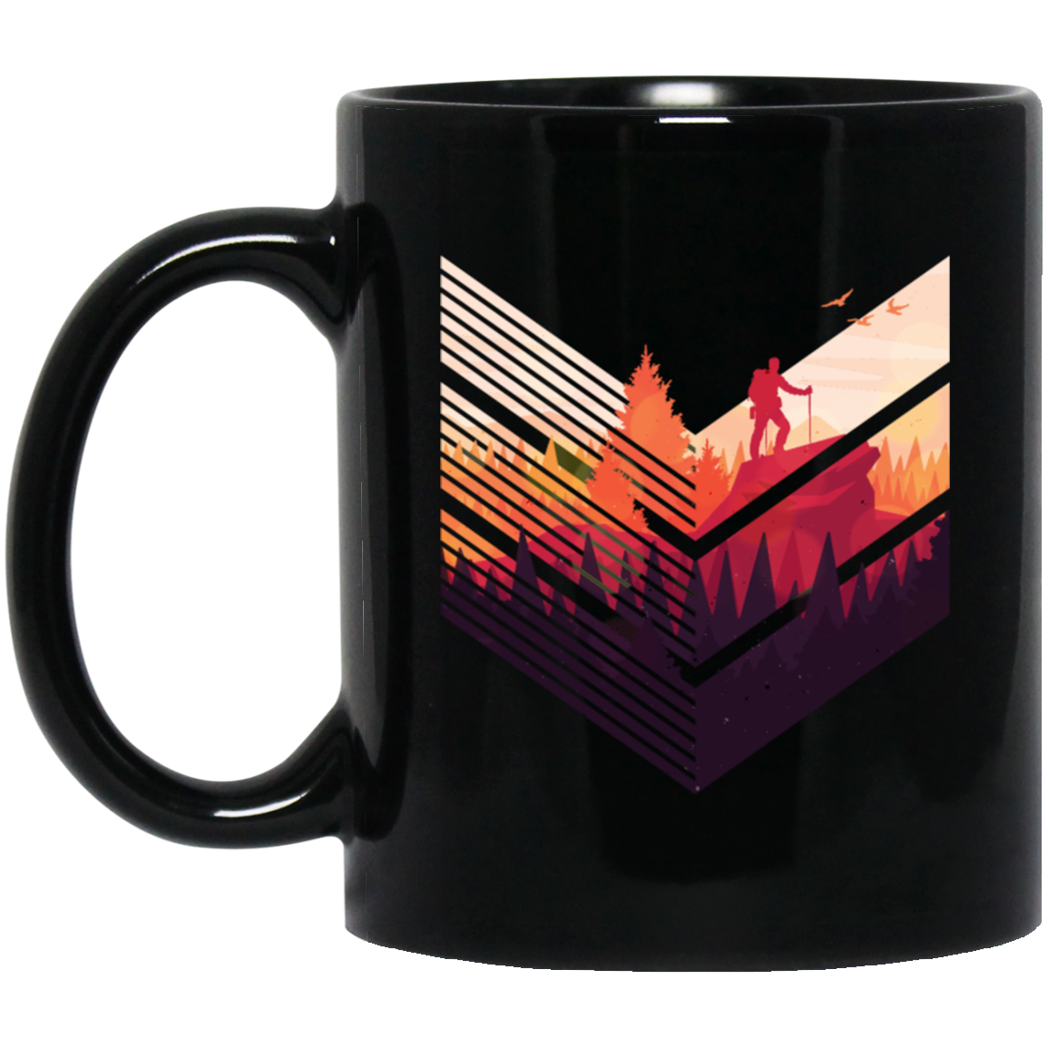 Super Cool, Colorful Hiker, Recognized A Mountain, Colorful Forest And Some Geometric Black Mug