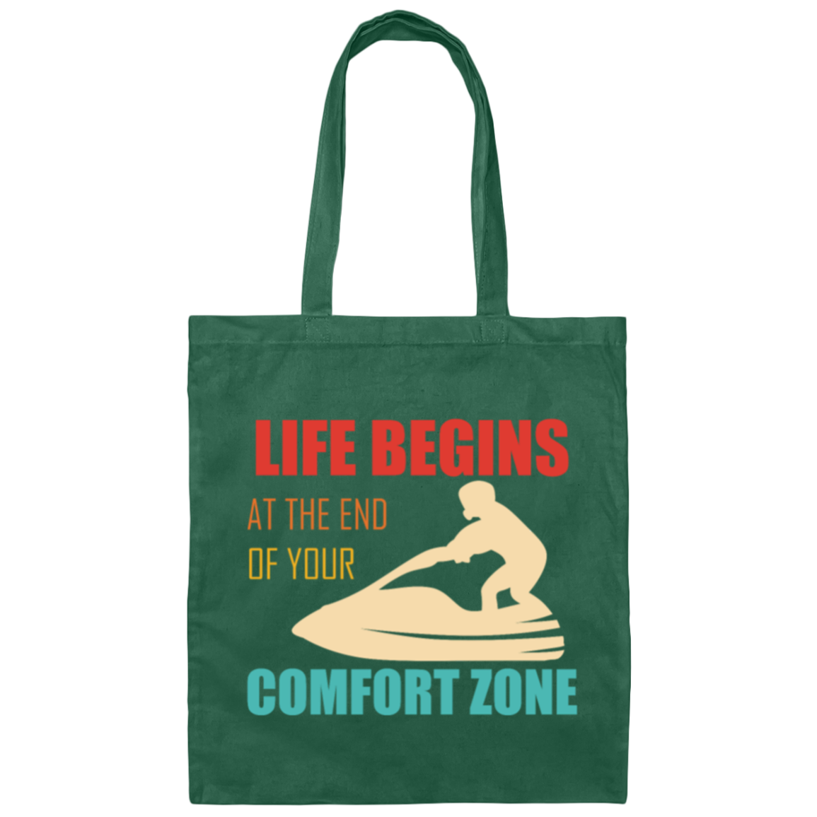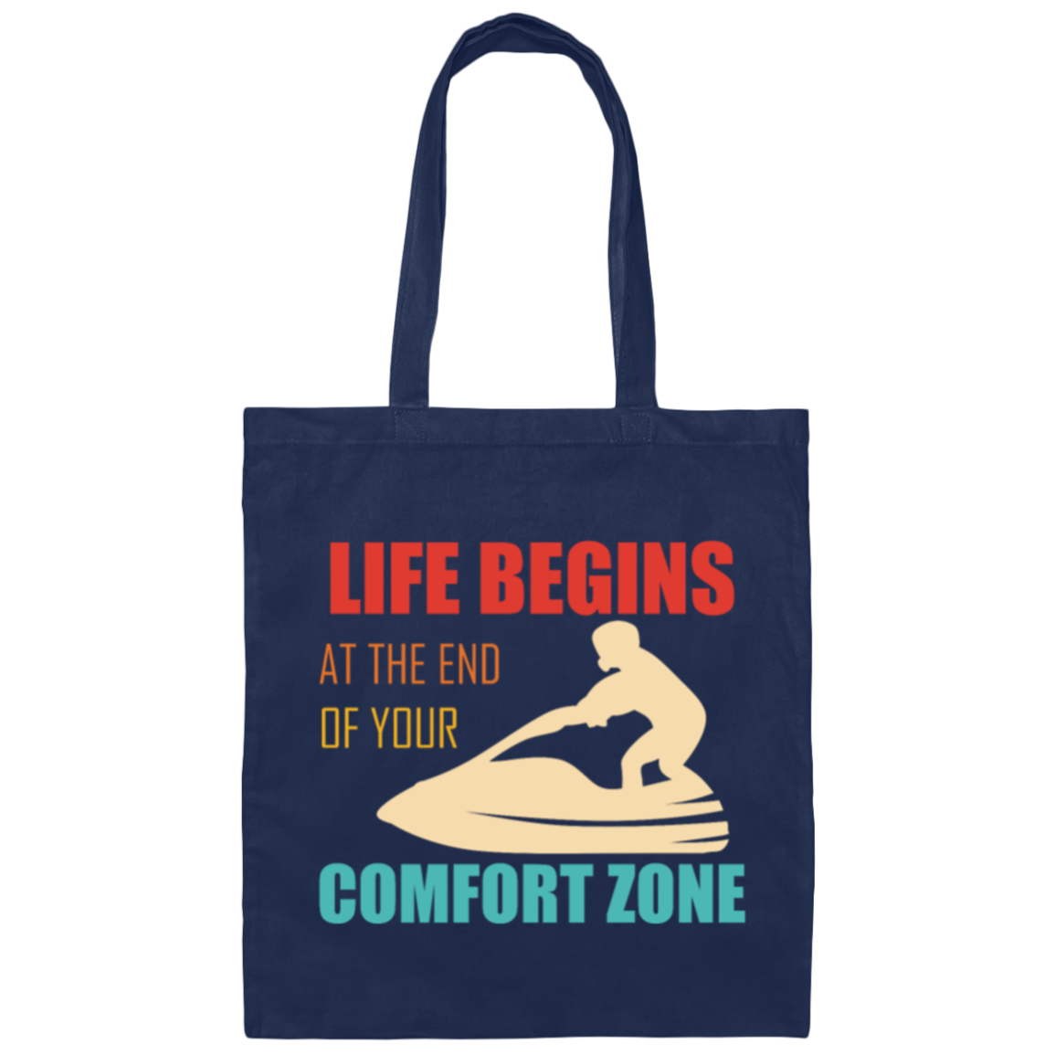 Super Jet Island Hopping Sea Summer Caravan Life Begins At The End Of Your Comfort Zone Canvas Tote Bag