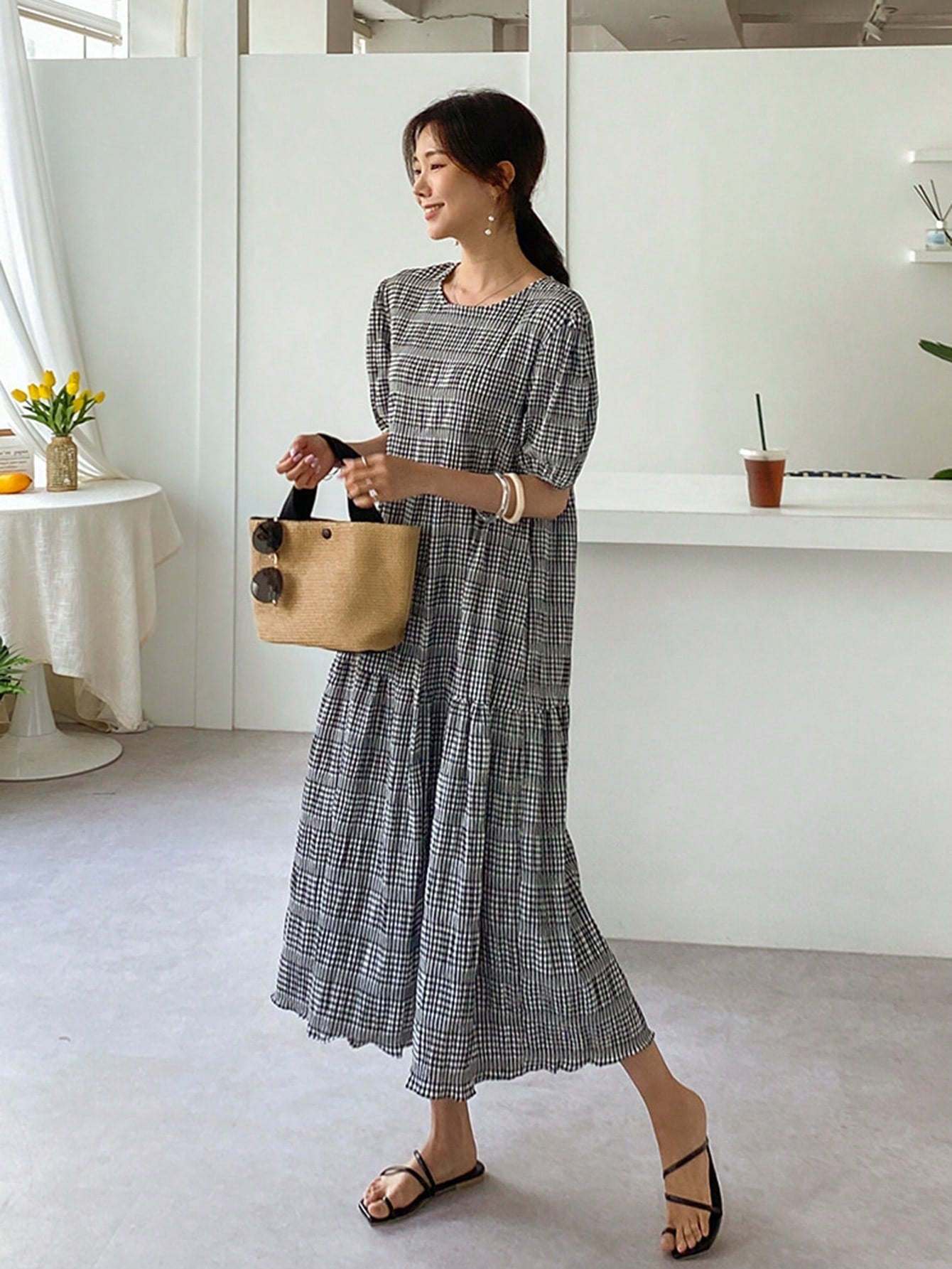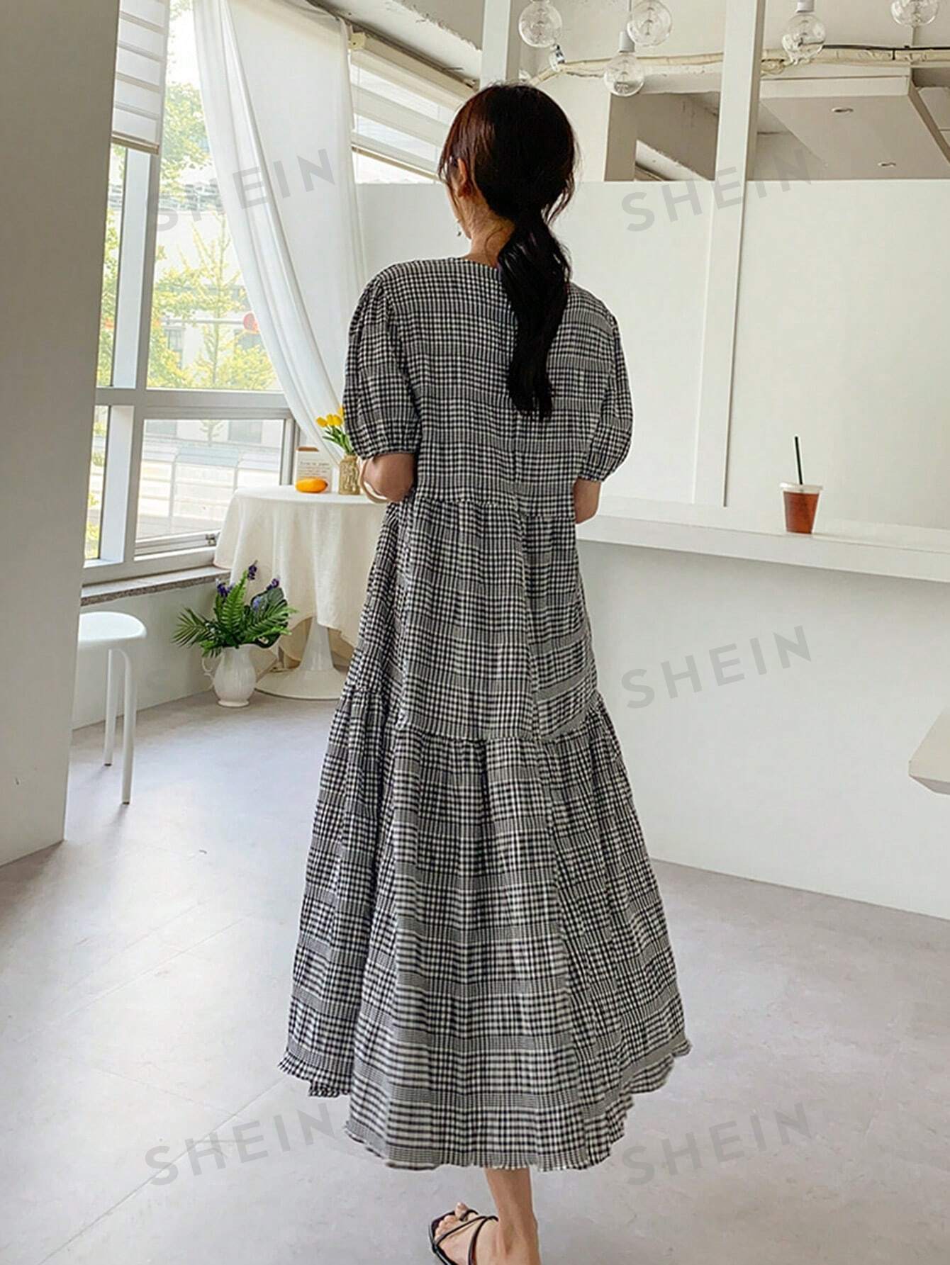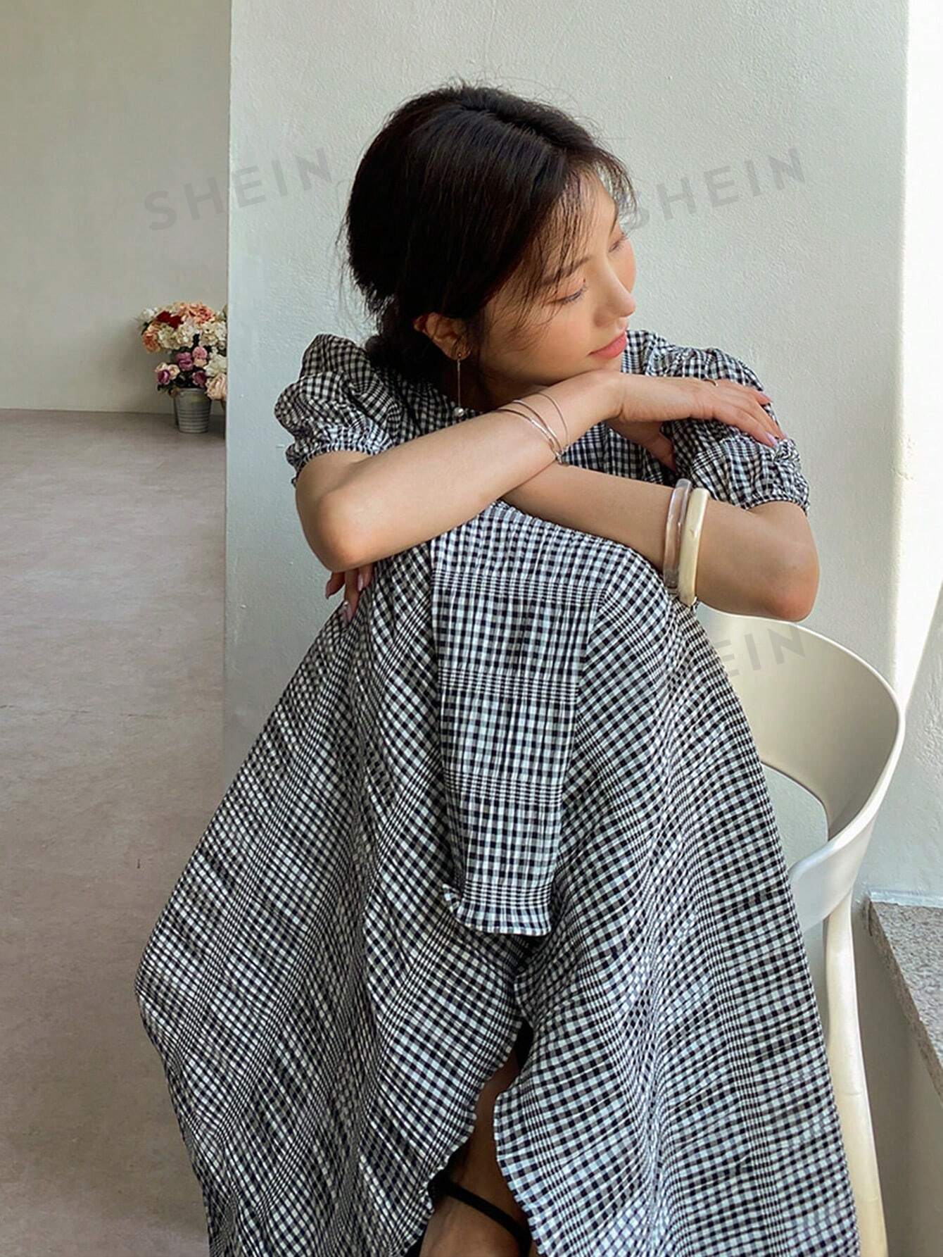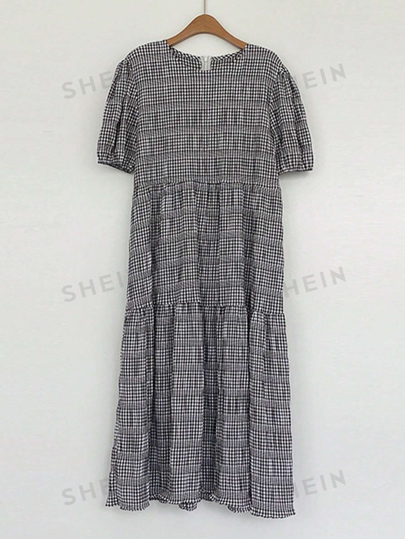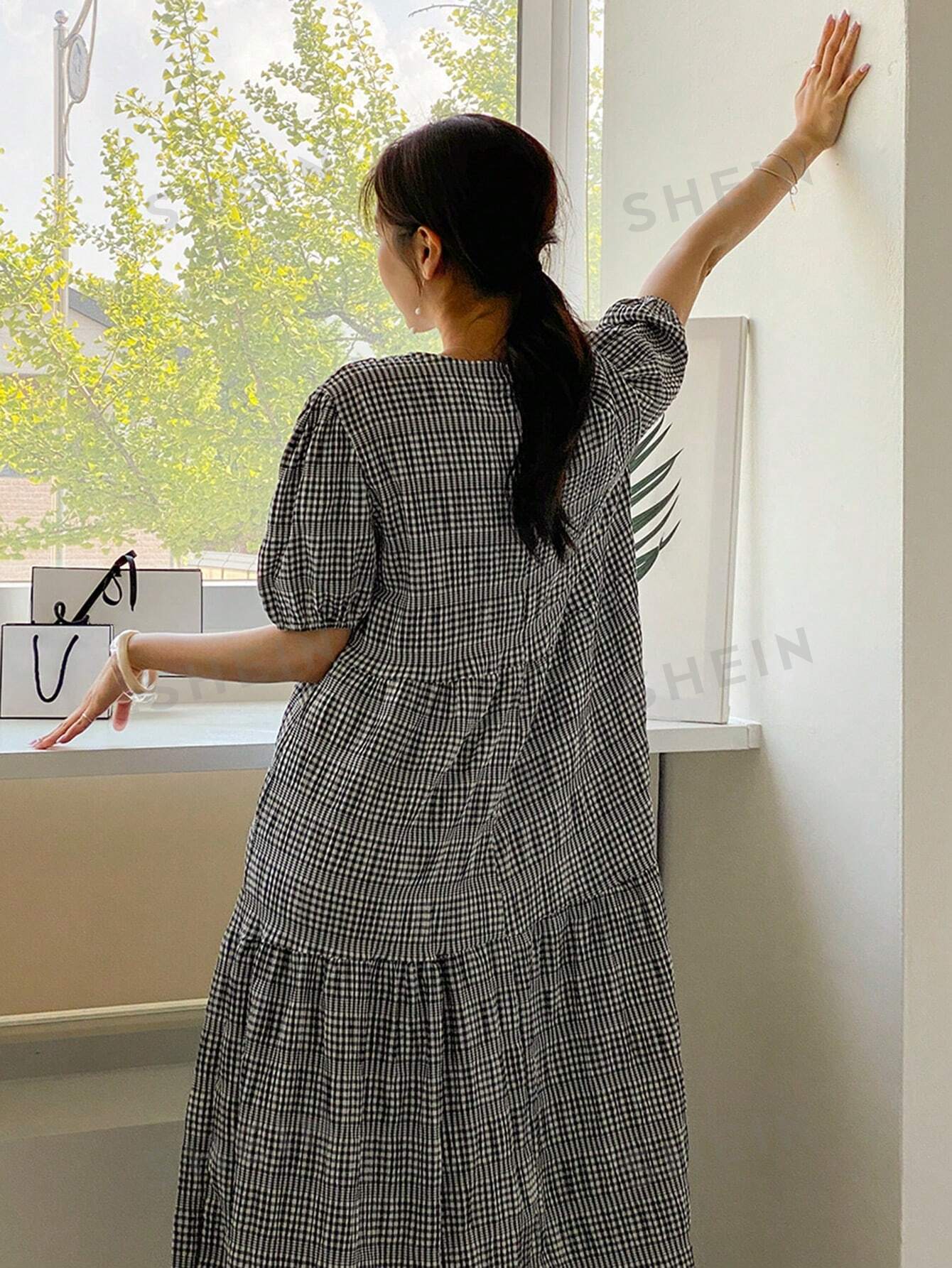 Sweeten Your Style with the Gingham Print Puff Sleeve Dress