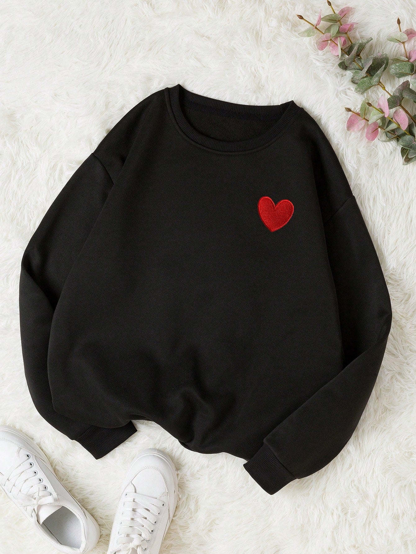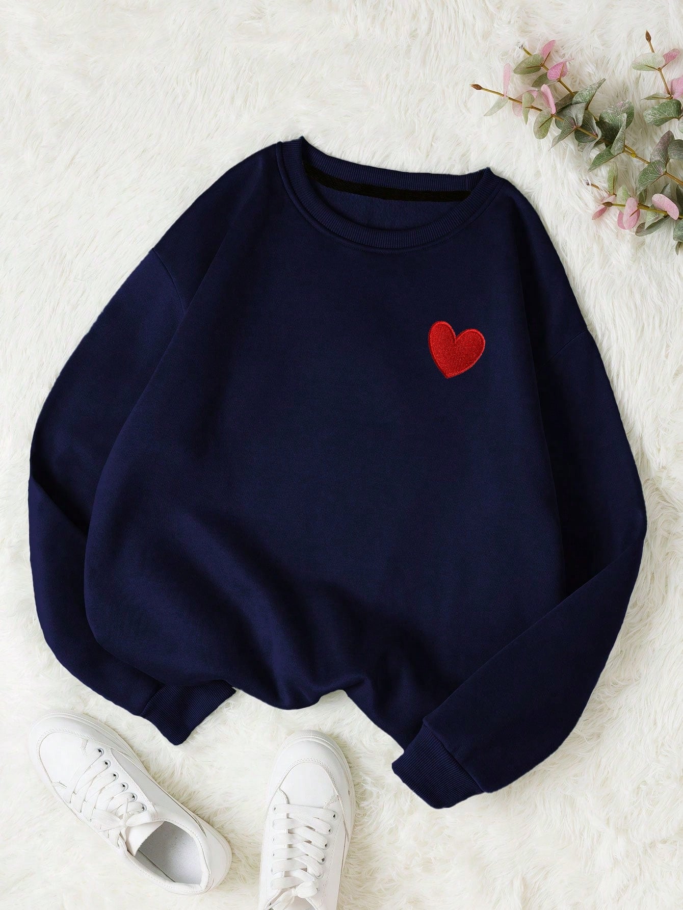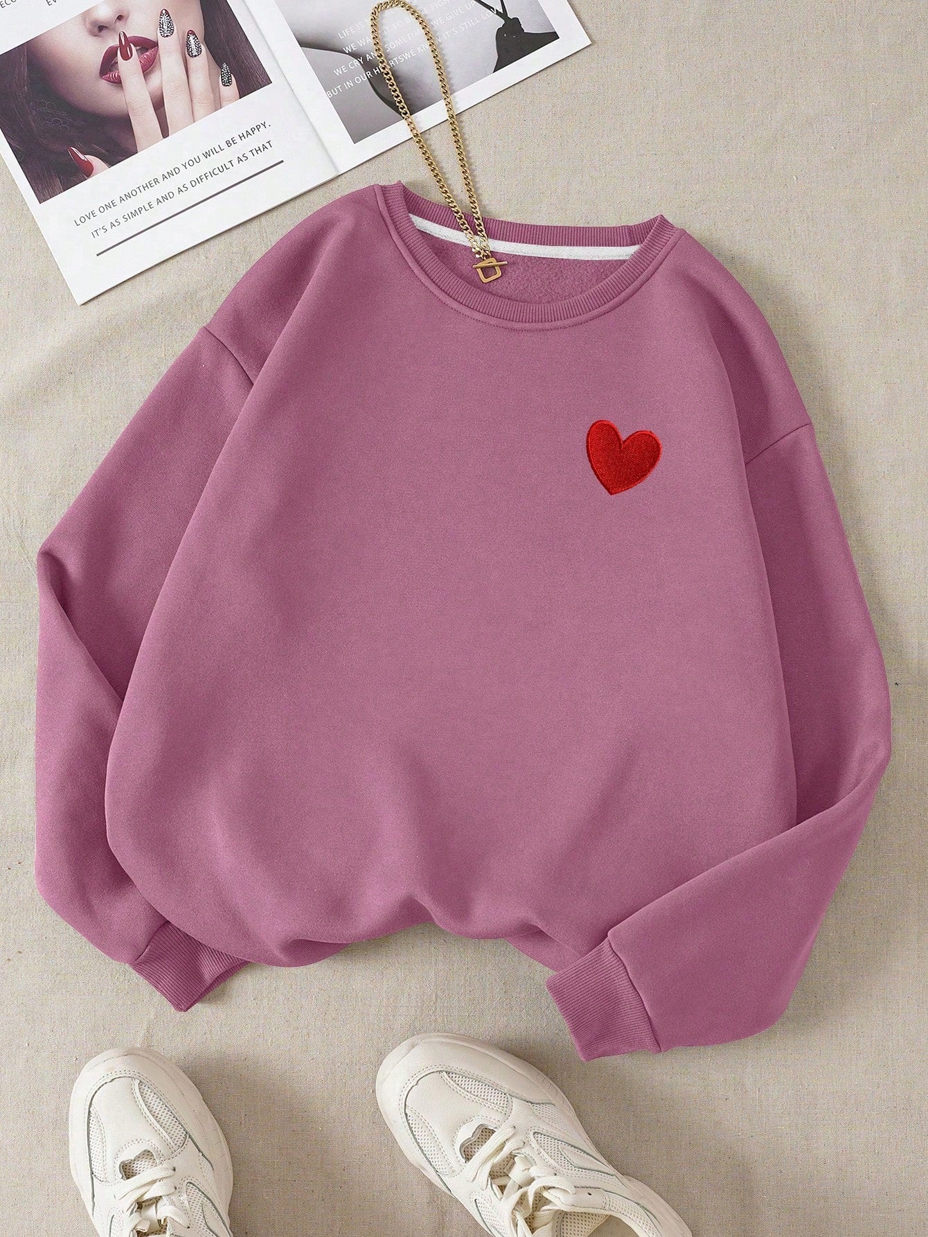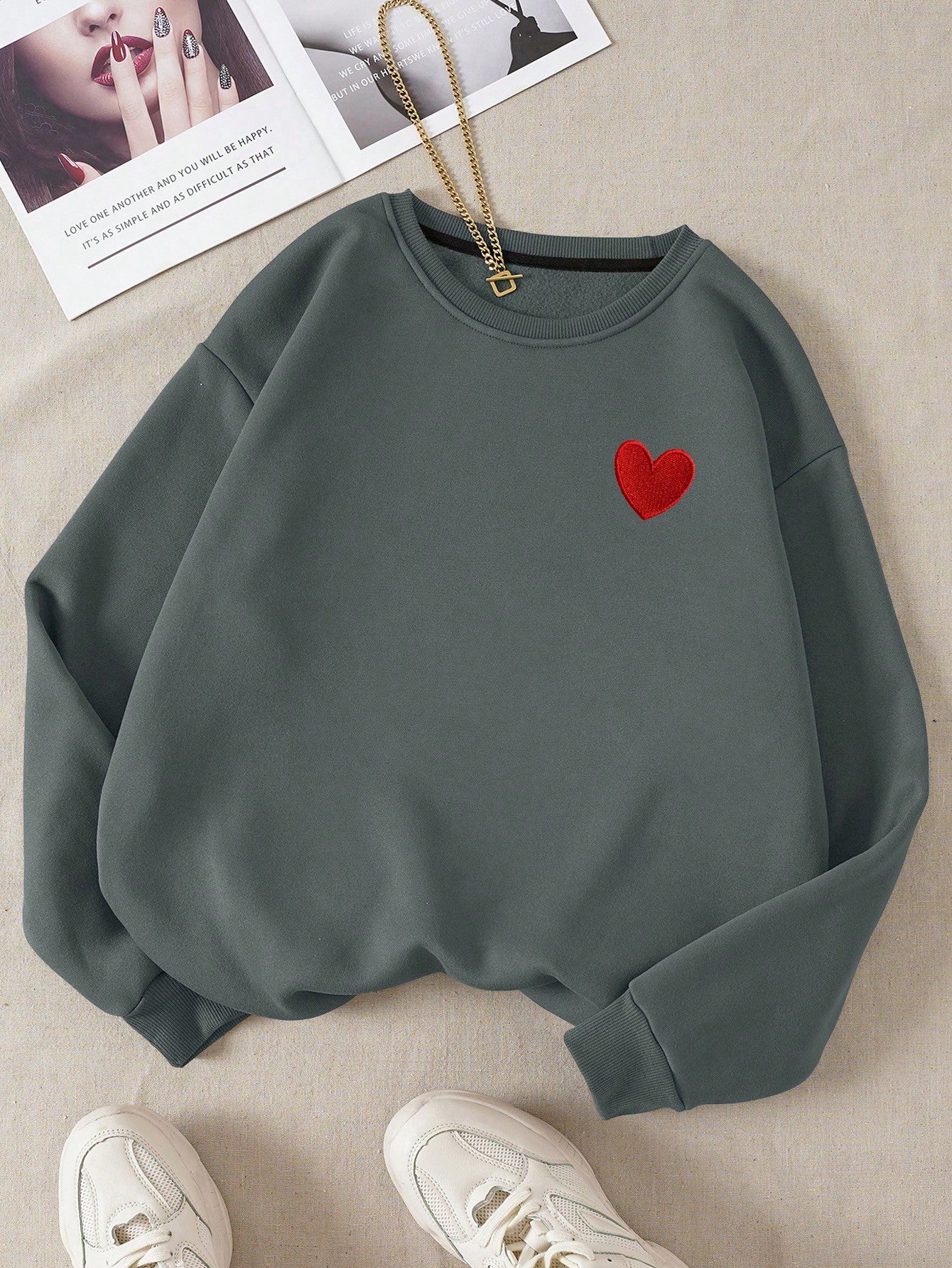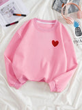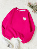 Sweetheart Sweater: Cozy up with Heart Print Casual Long Sleeve Drop Shoulder Sweatshirt