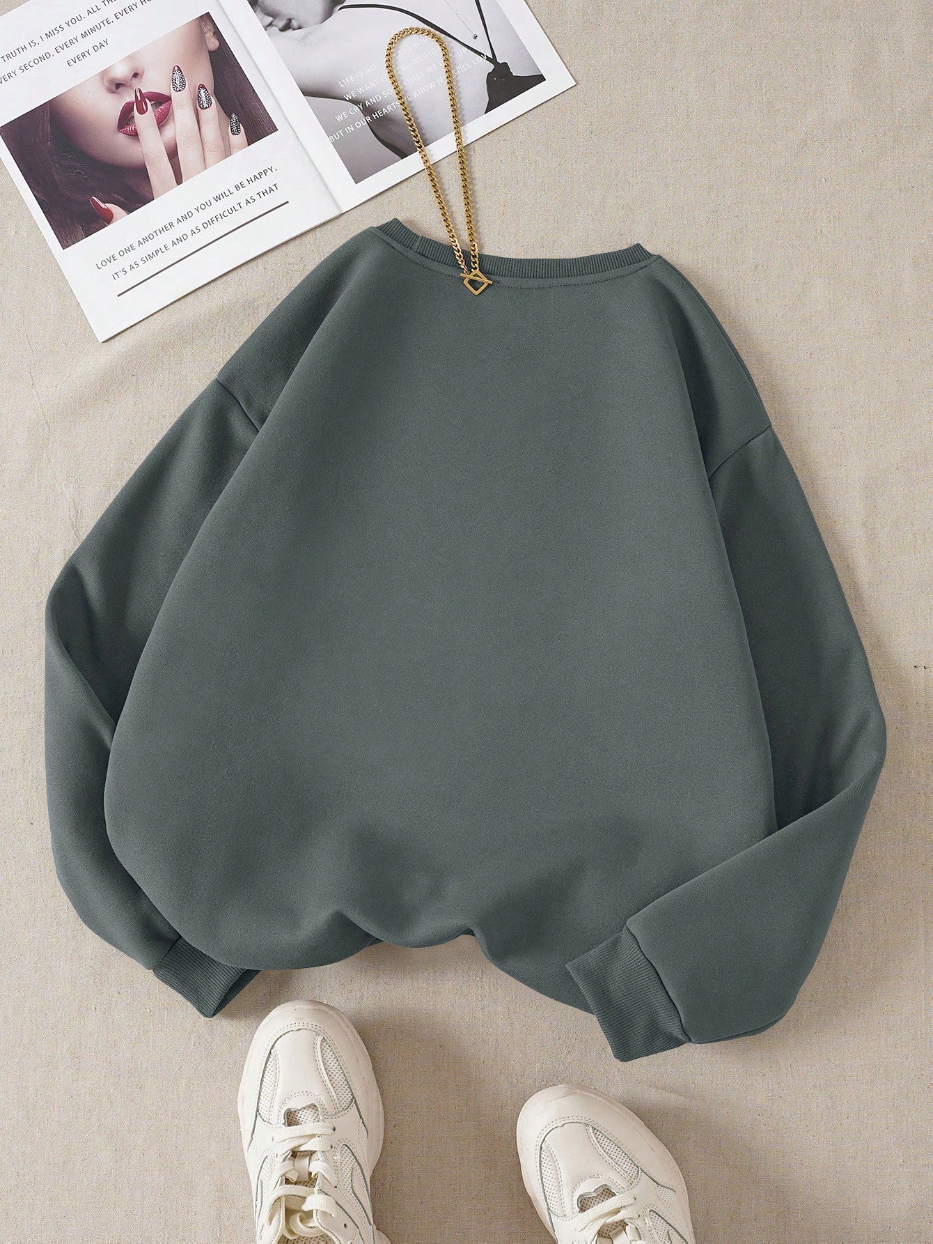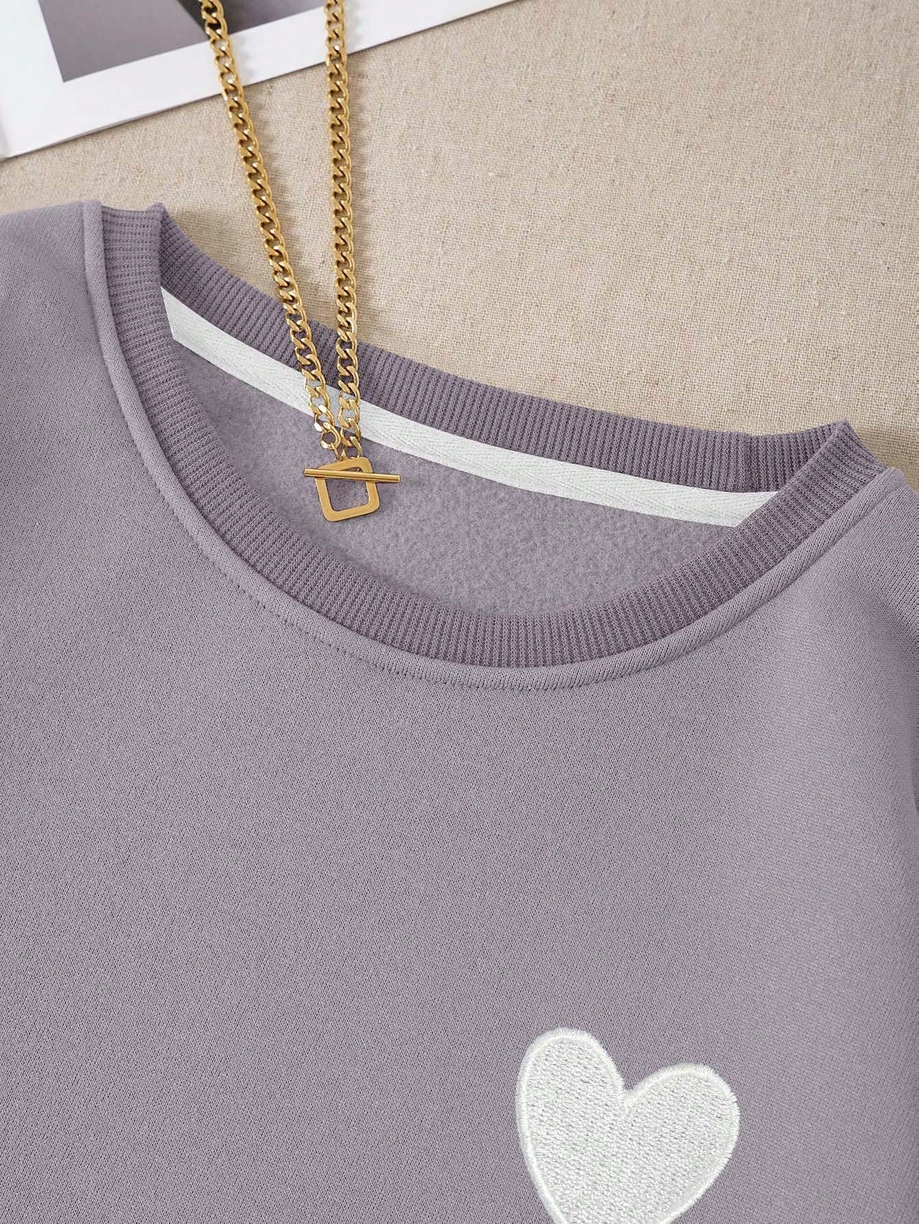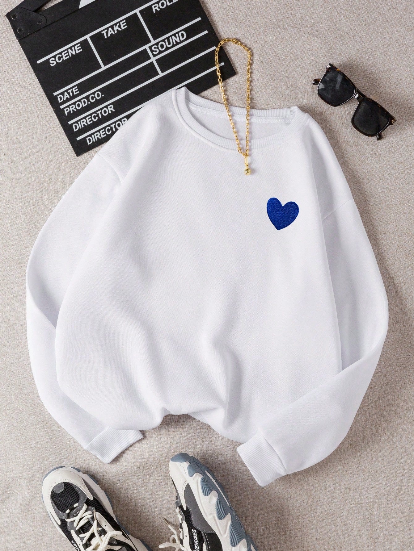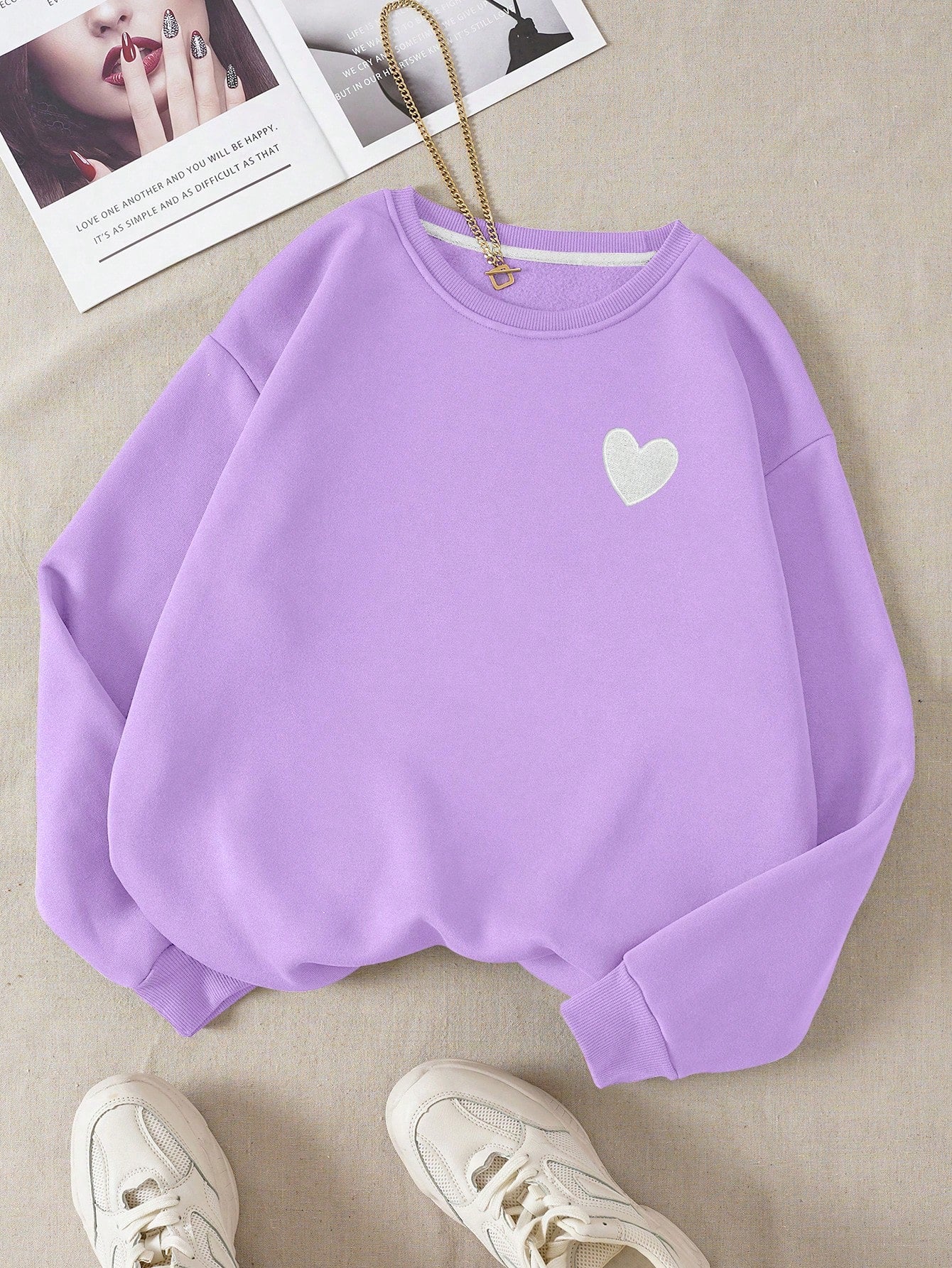 Sweetheart Sweater: Cozy up with Heart Print Casual Long Sleeve Drop Shoulder Sweatshirt