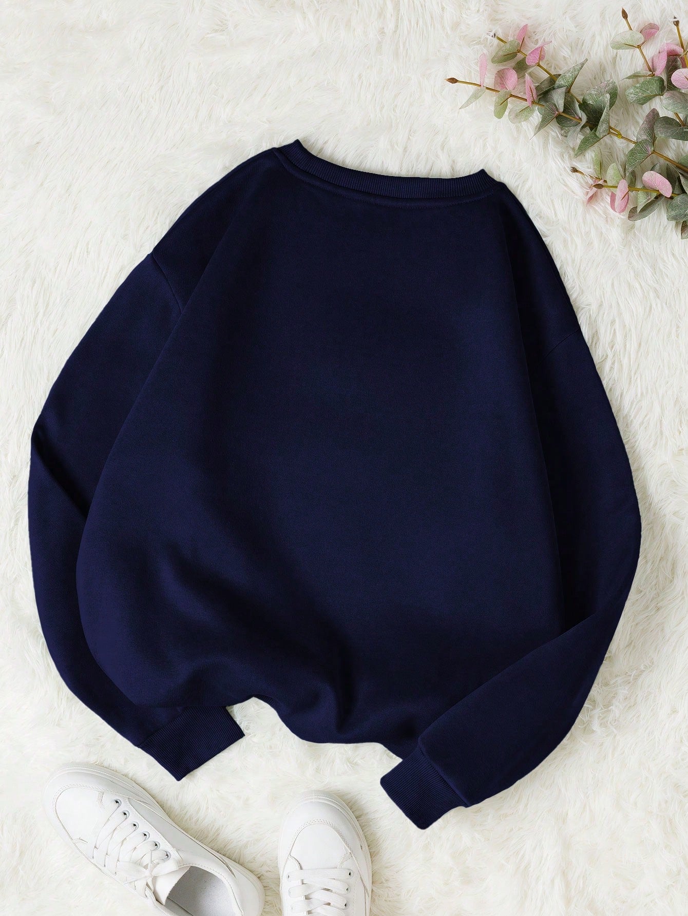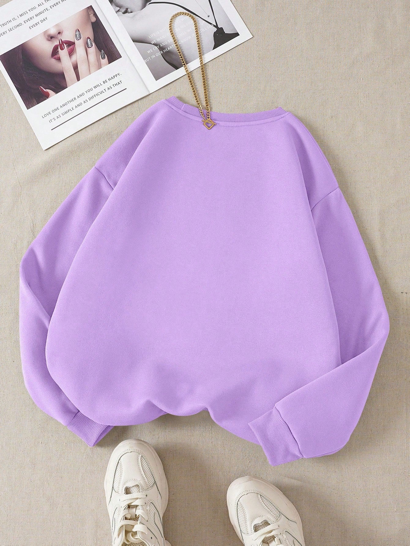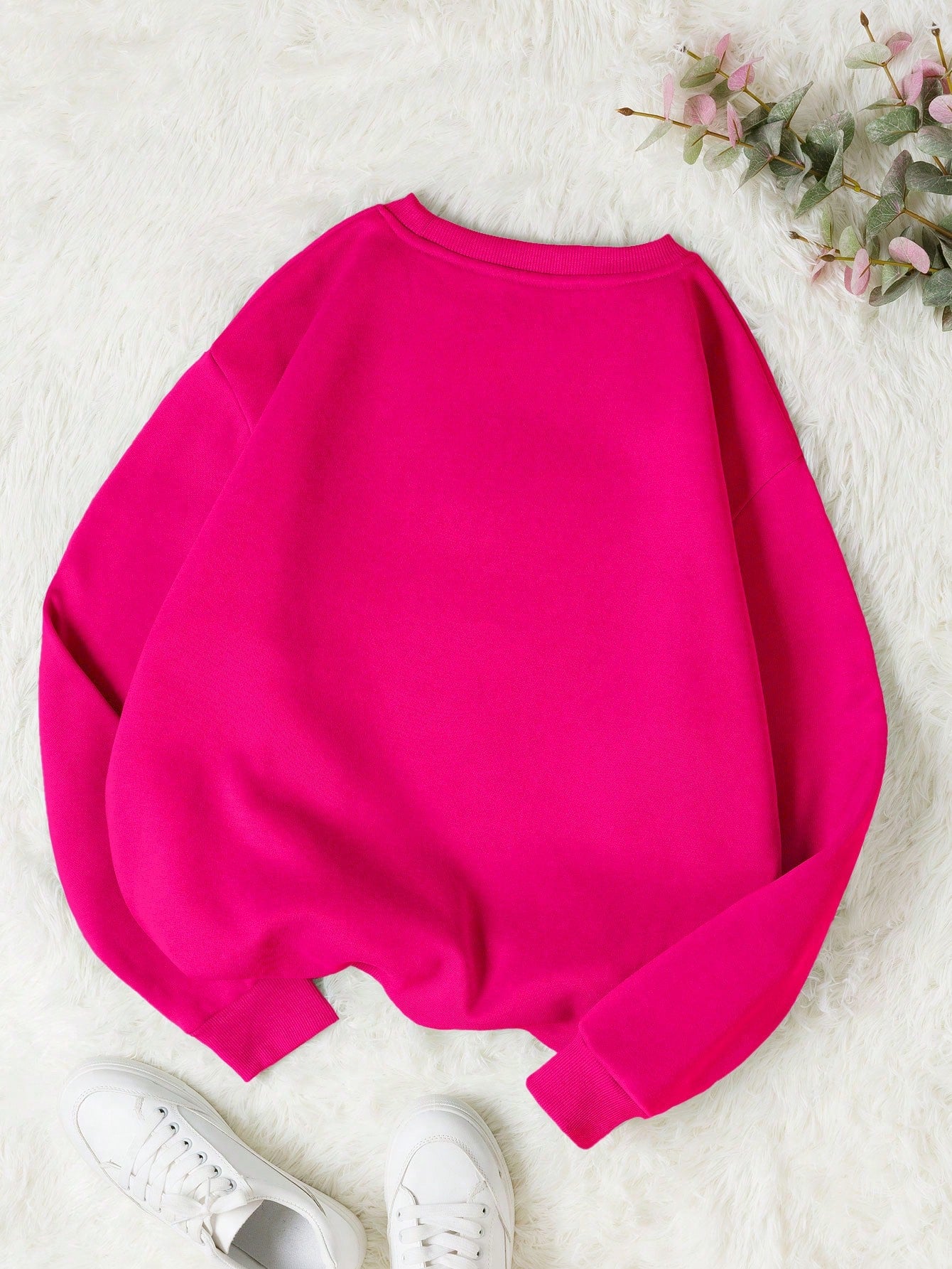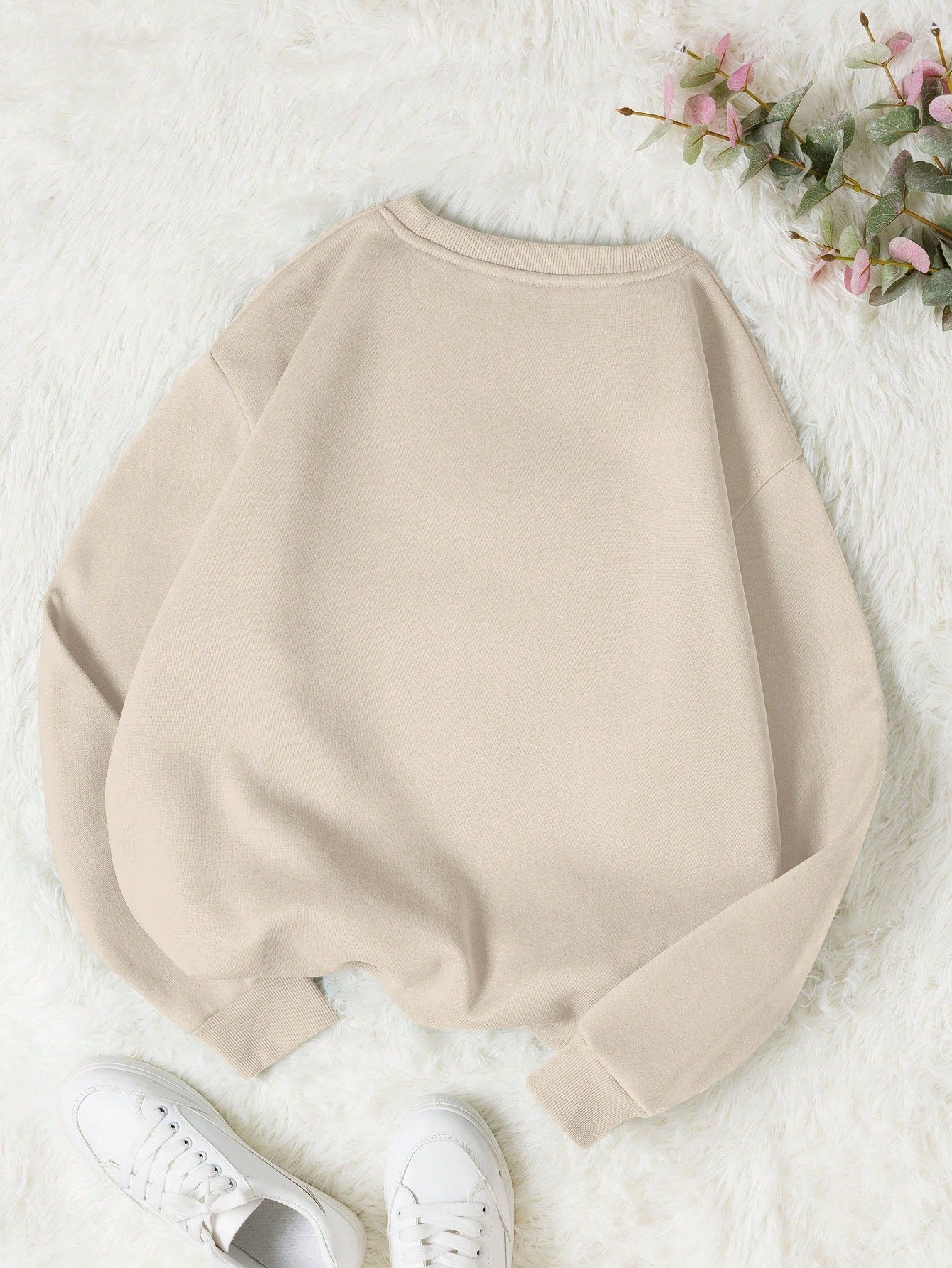 Sweetheart Sweater: Cozy up with Heart Print Casual Long Sleeve Drop Shoulder Sweatshirt