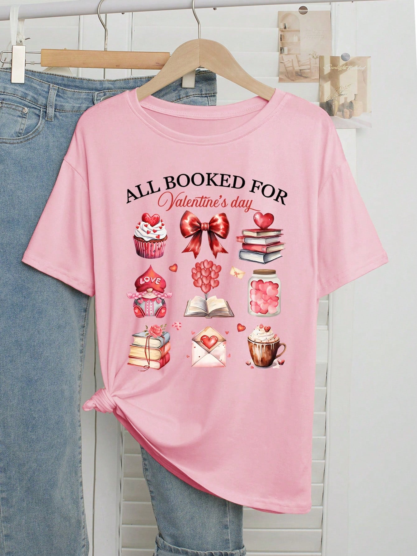 Sweetheart T-Shirt: Valentine’s Day Heart Cake & Bow Print for Women
