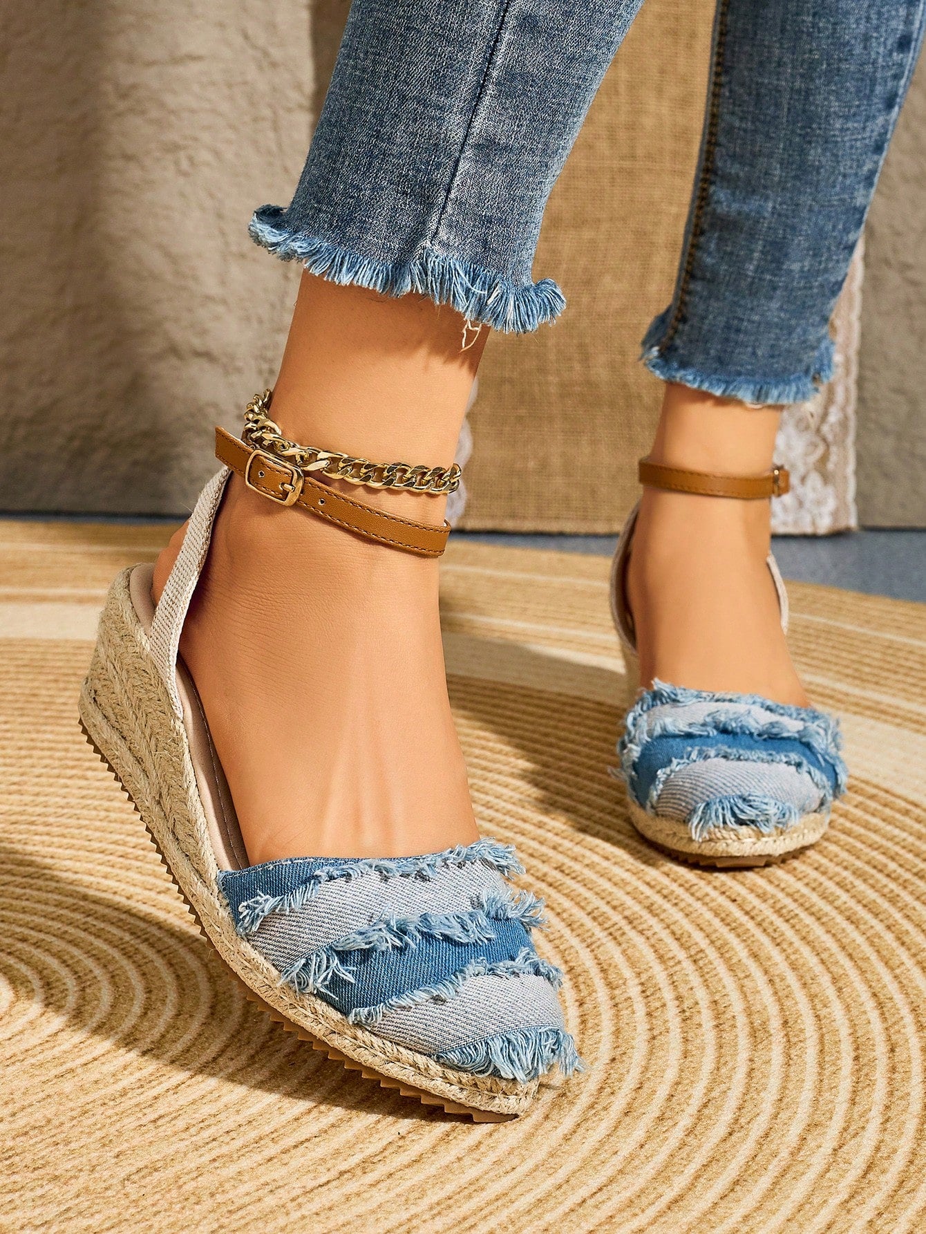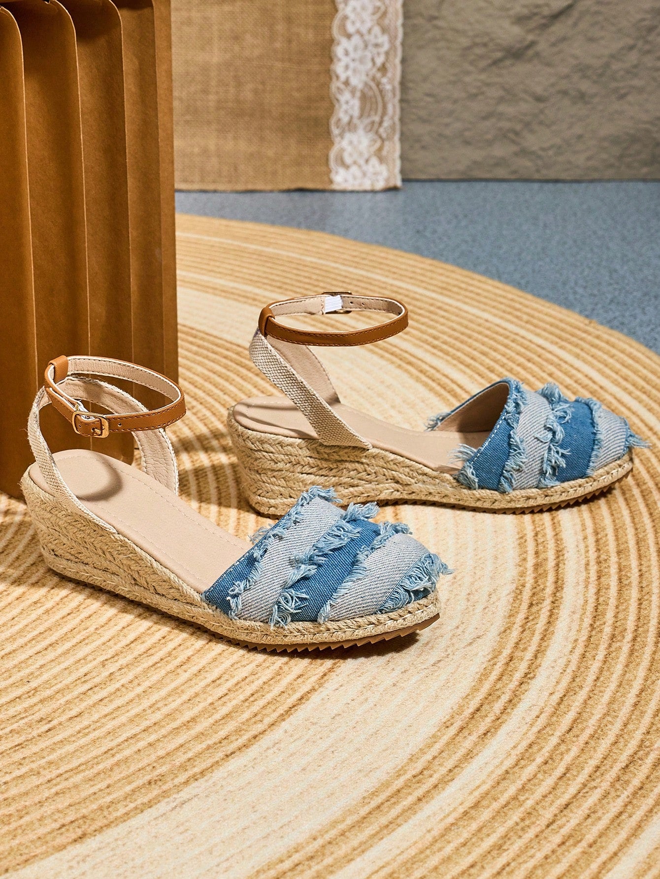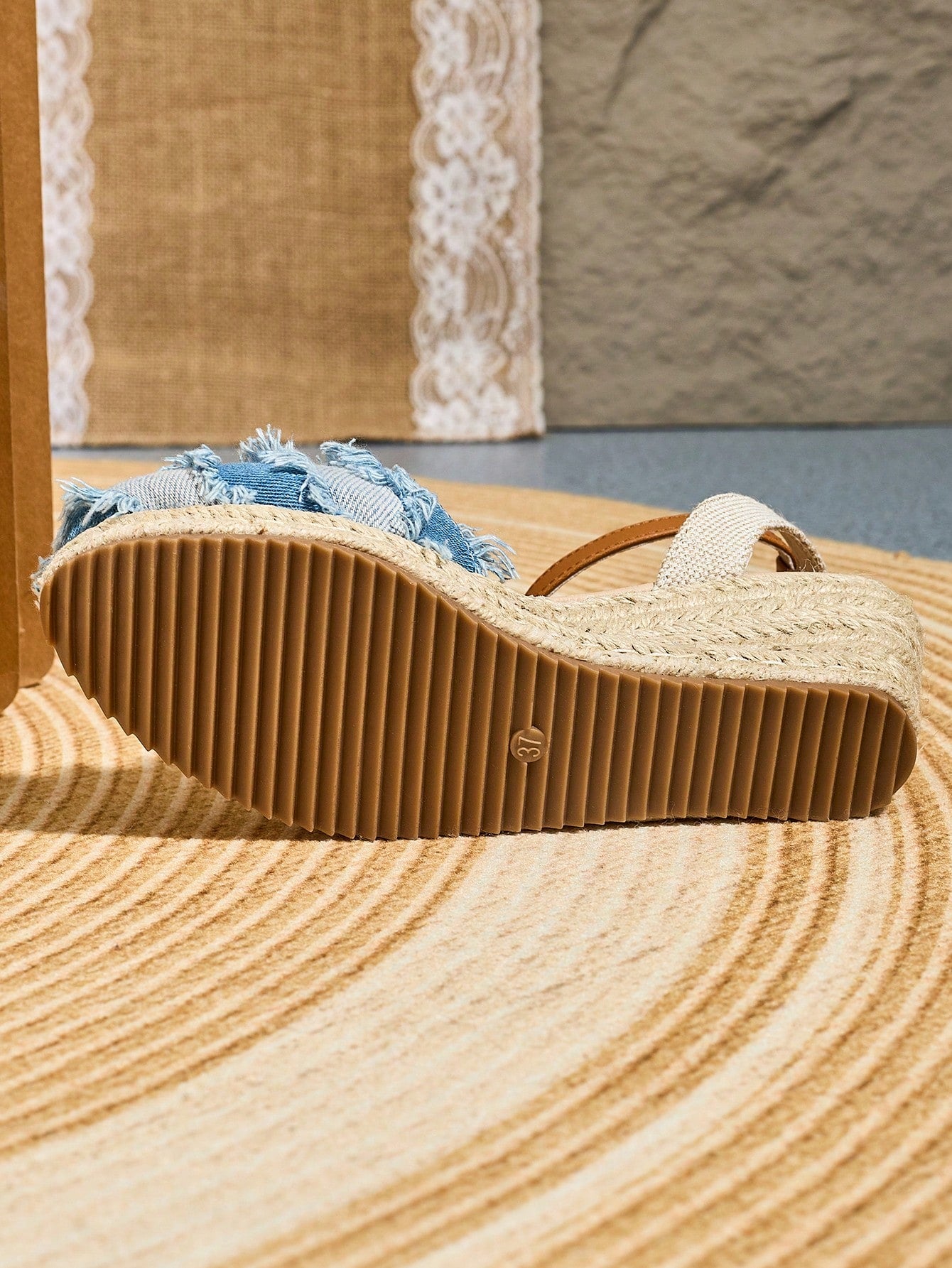 Tassel Detail Rope Sole Peep-Toe Wedge Sandals - Comfort Meets Style