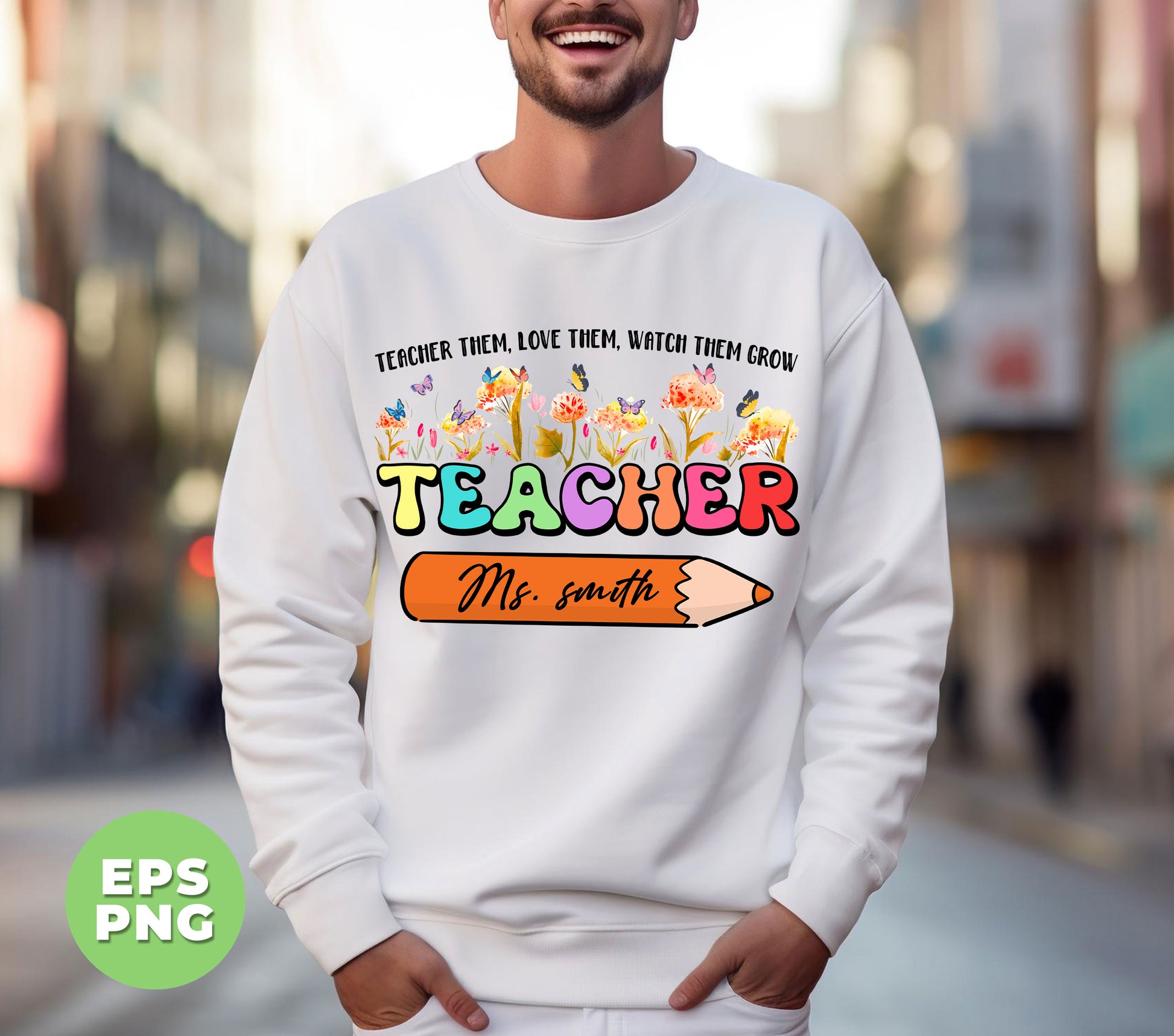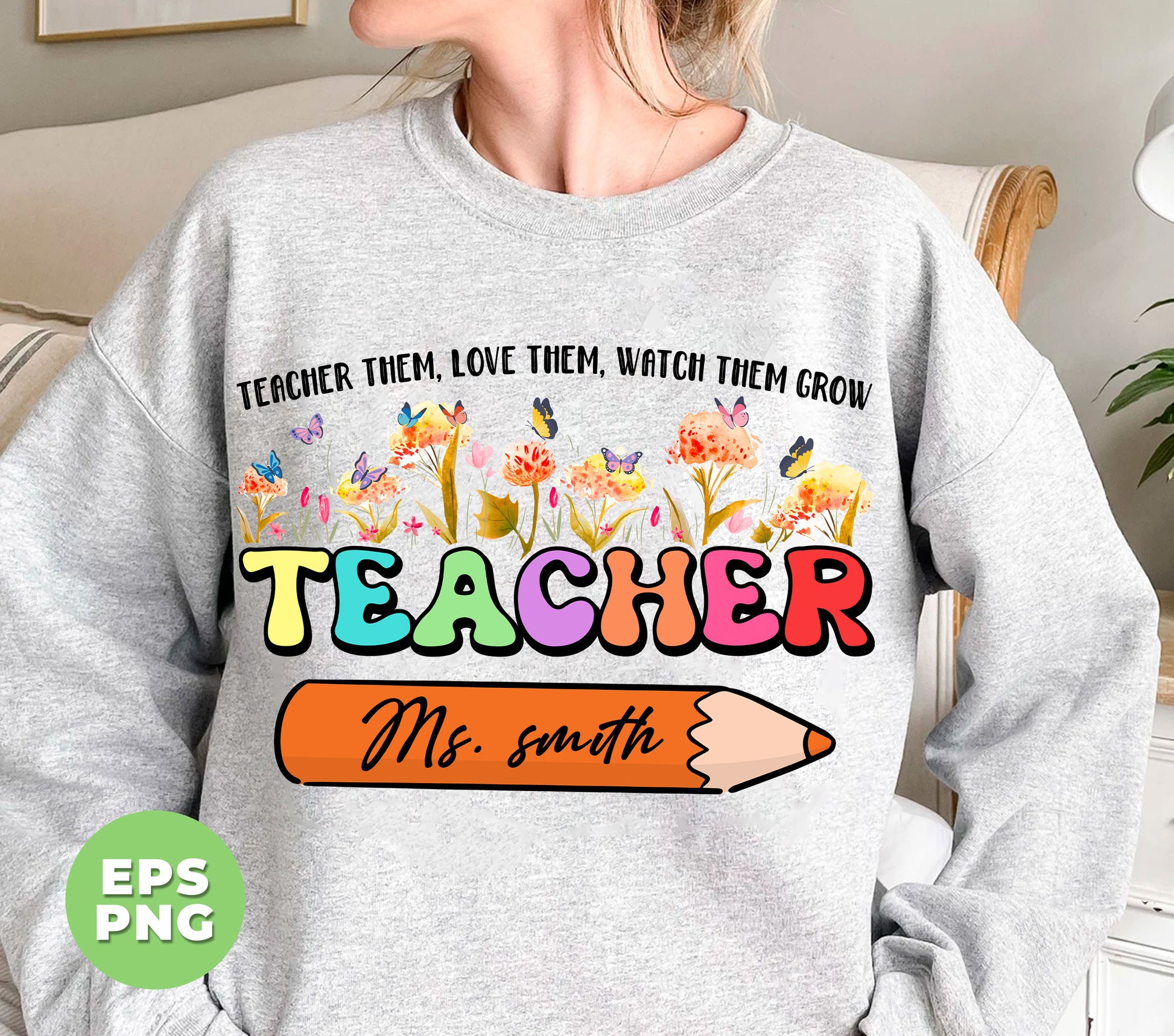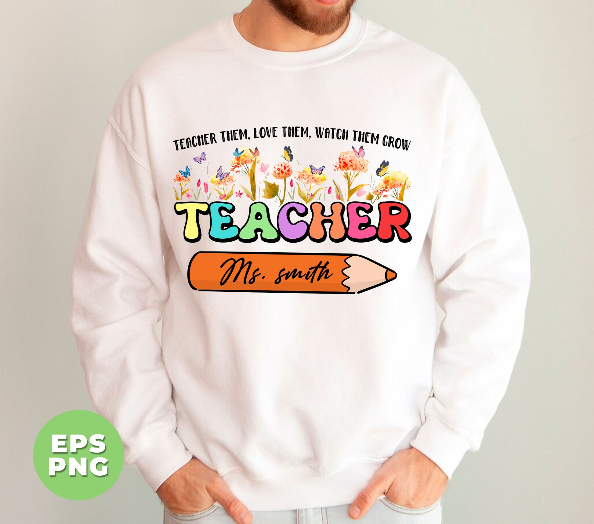 Teacher Them, Love Them, Watch Them Grow, Teacher Name, Custom Name, Digital Files, Png Sublimation
