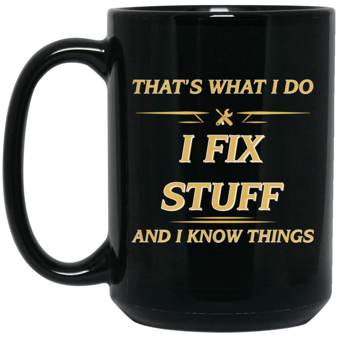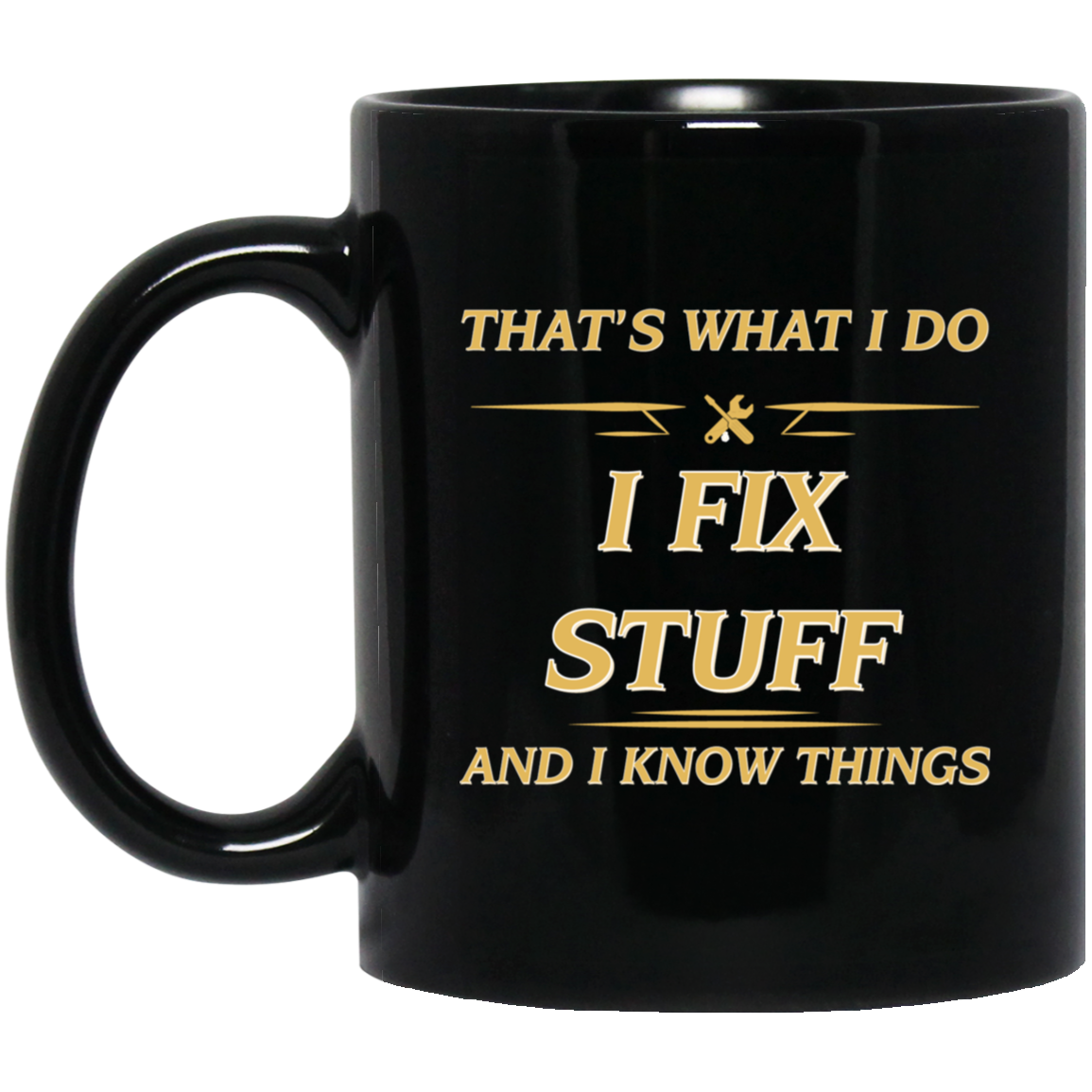 That's What I Do, I Fix Stuff And I Know Things, Fix Anything Black Mug