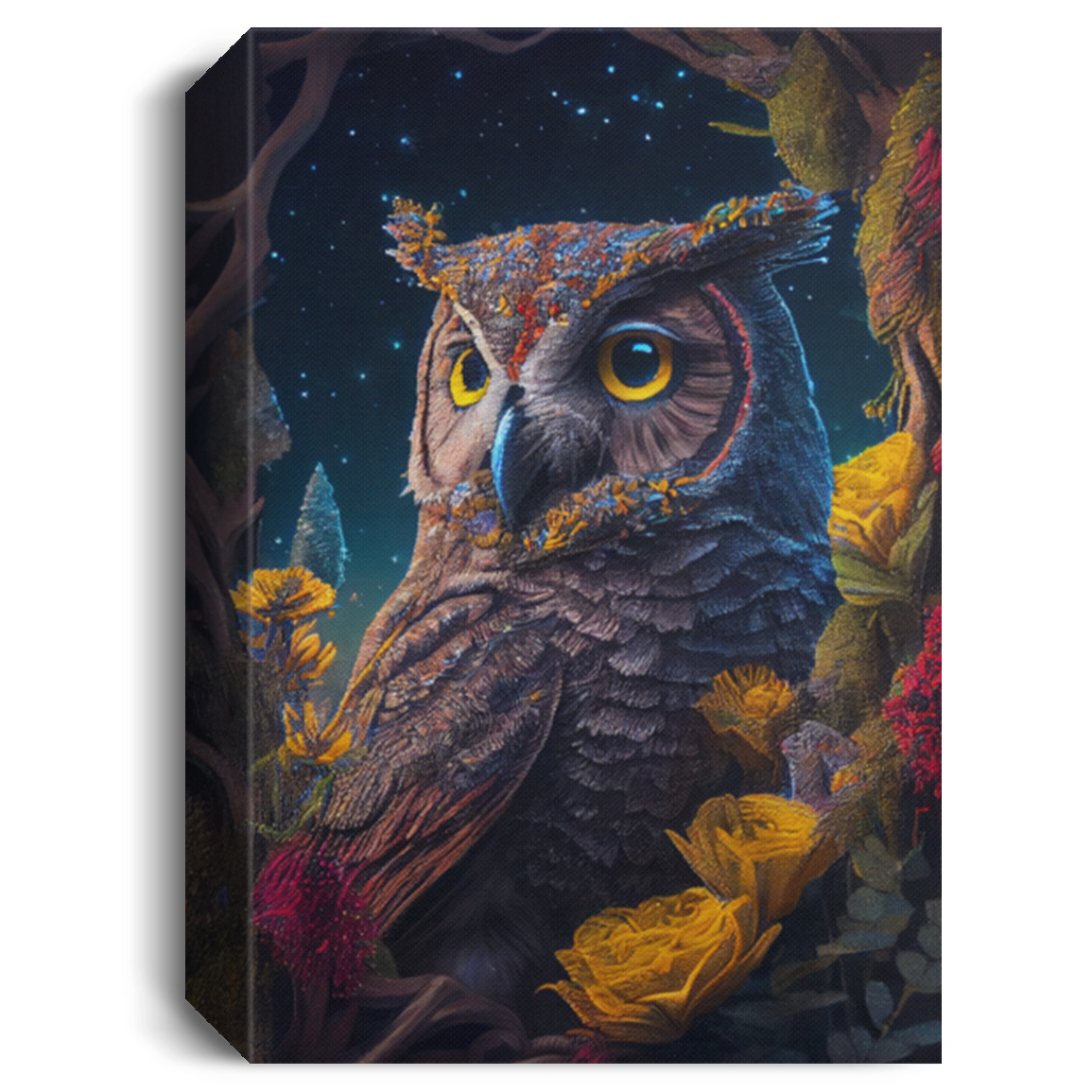 The Owl With Yellow Eyes In Magical Forest, Colorful Owl In The Forest Canvas