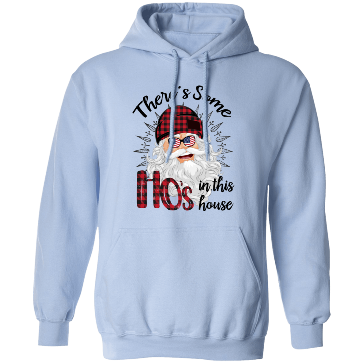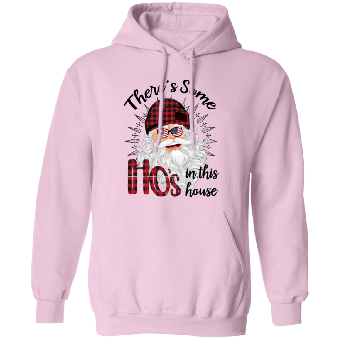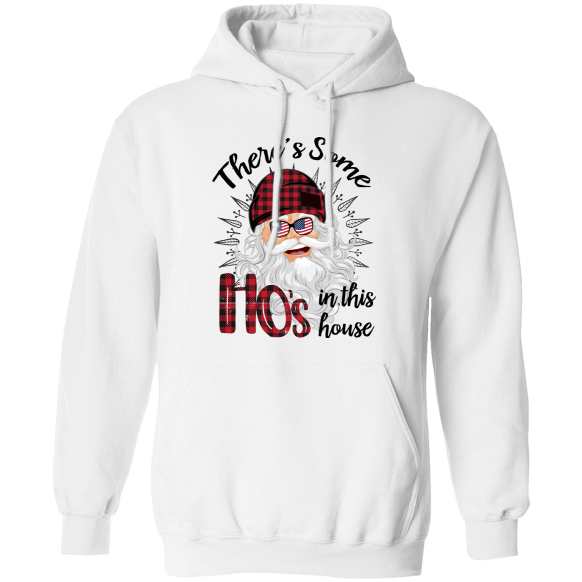 There's Some Ho's In This House, Cool Santa, Red Plaid Hat, Merry Christmas, Trendy Christmas Pullover Hoodie