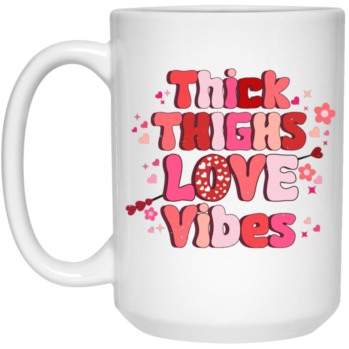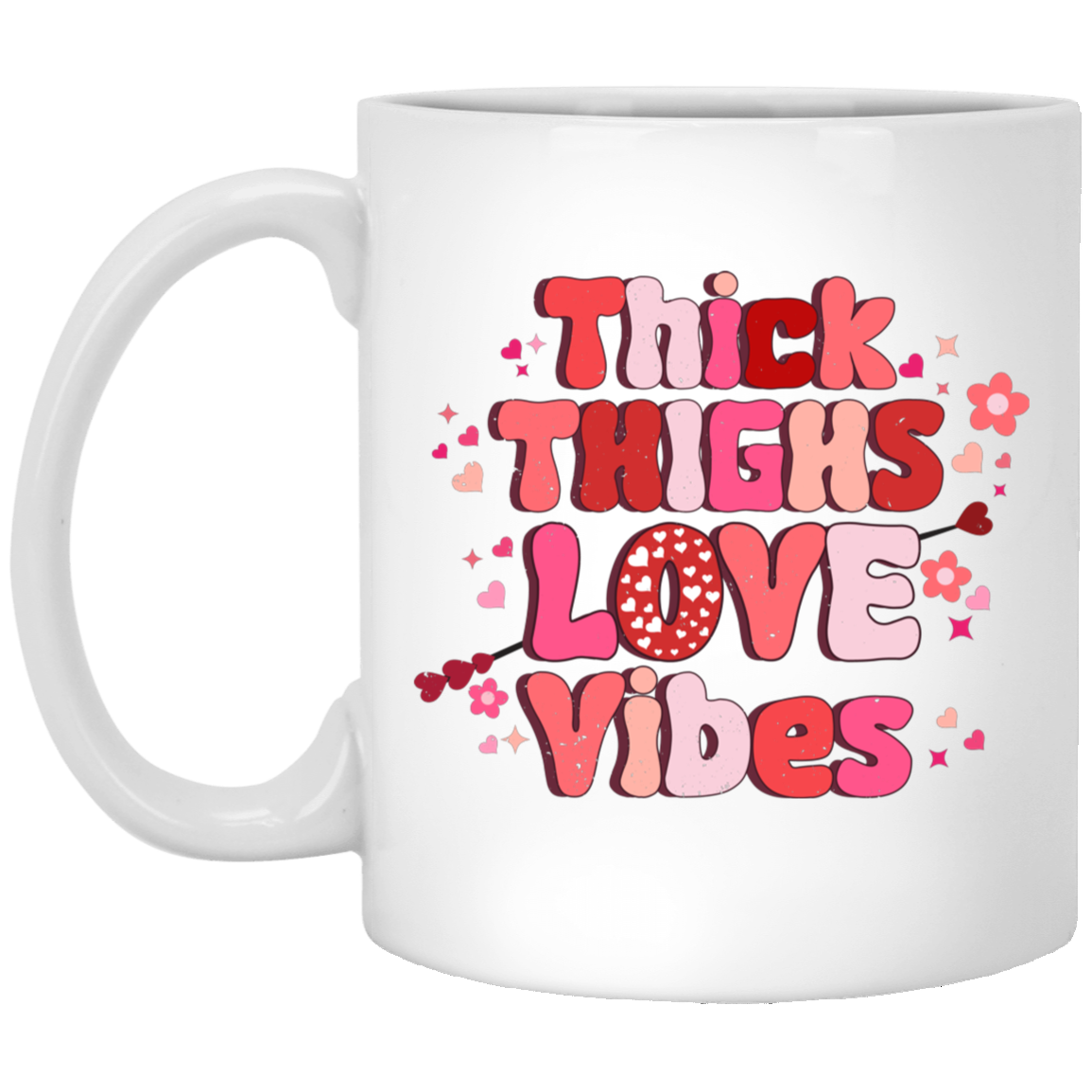 Thick Thighs Love Vibes, Retro Valentine, Love Valentine, Valentine's Day, Trendy Valentine White Mug