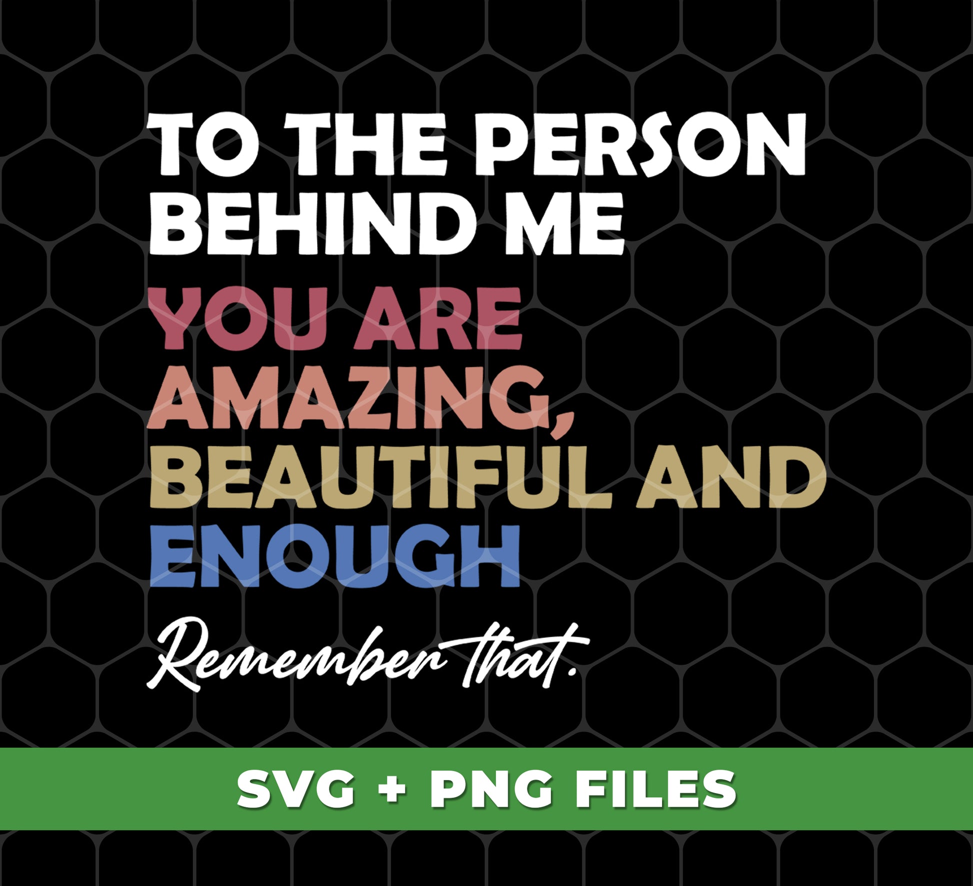 To The Person Behind Me, You Are Amazing, Beautiful And Enough, Remember That, Digital Files, Png Sublimation